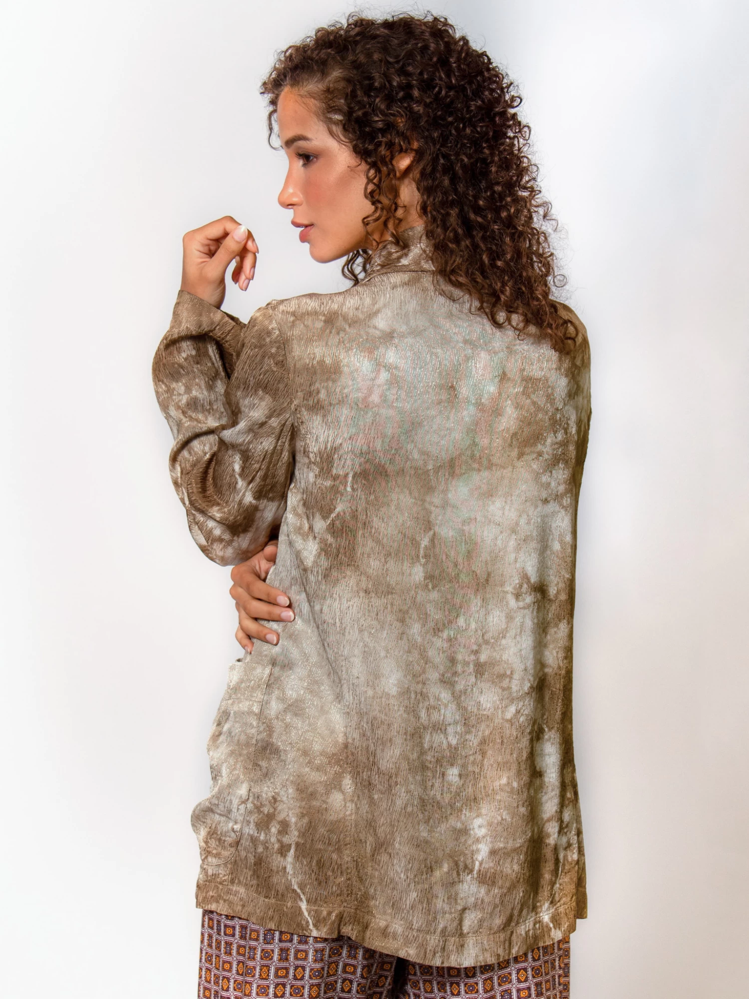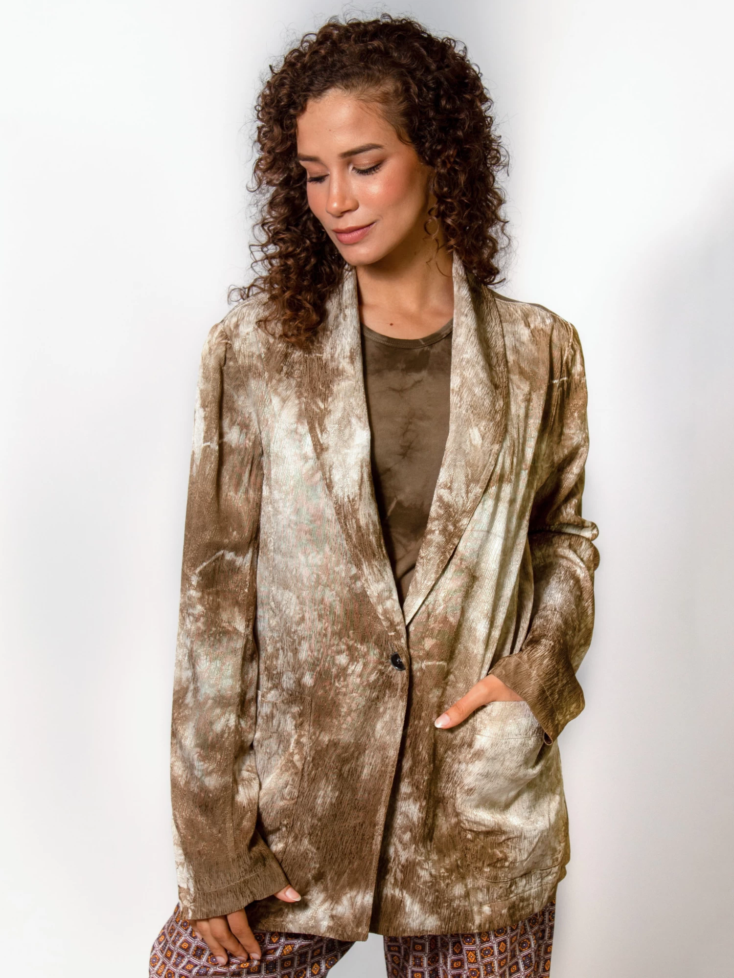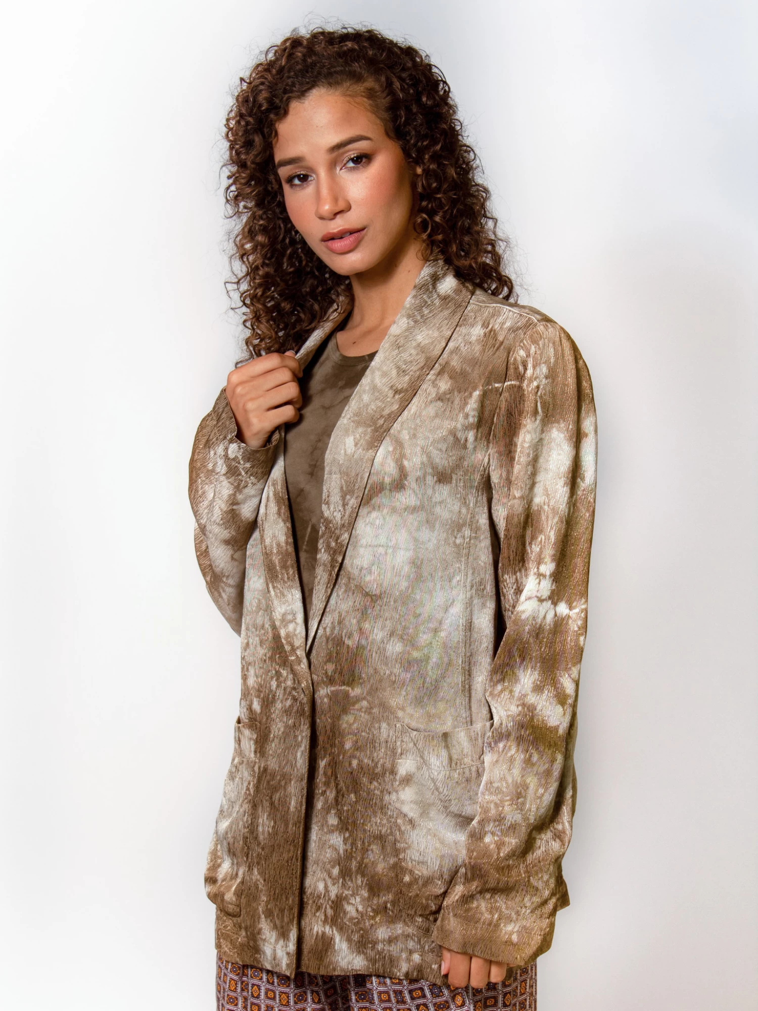 Hand dyed tie dye with a single button closure and two front pockets. Feel good in ripple satin.