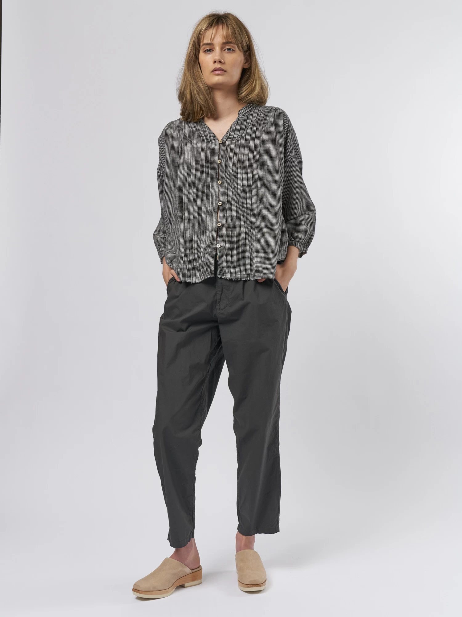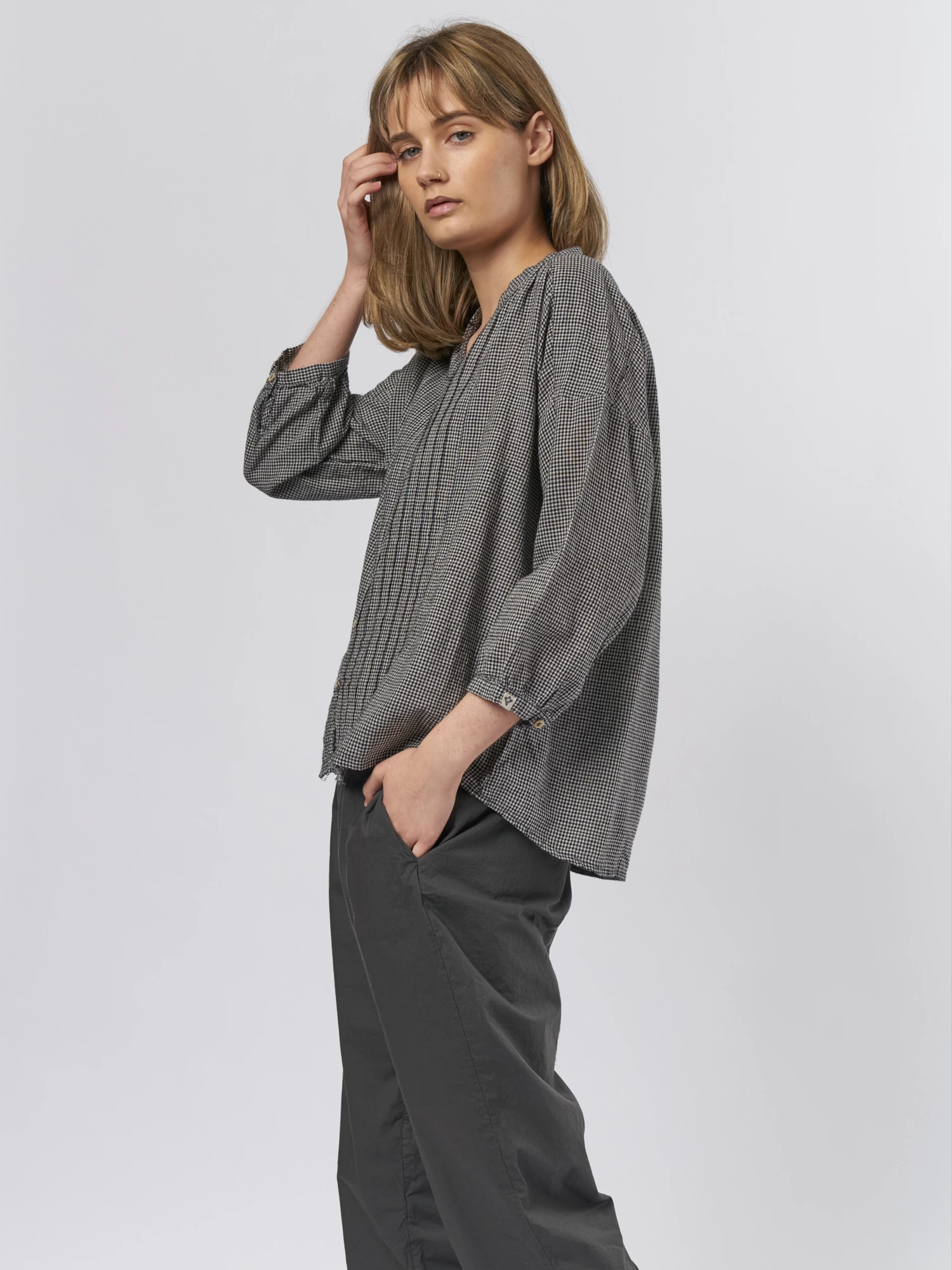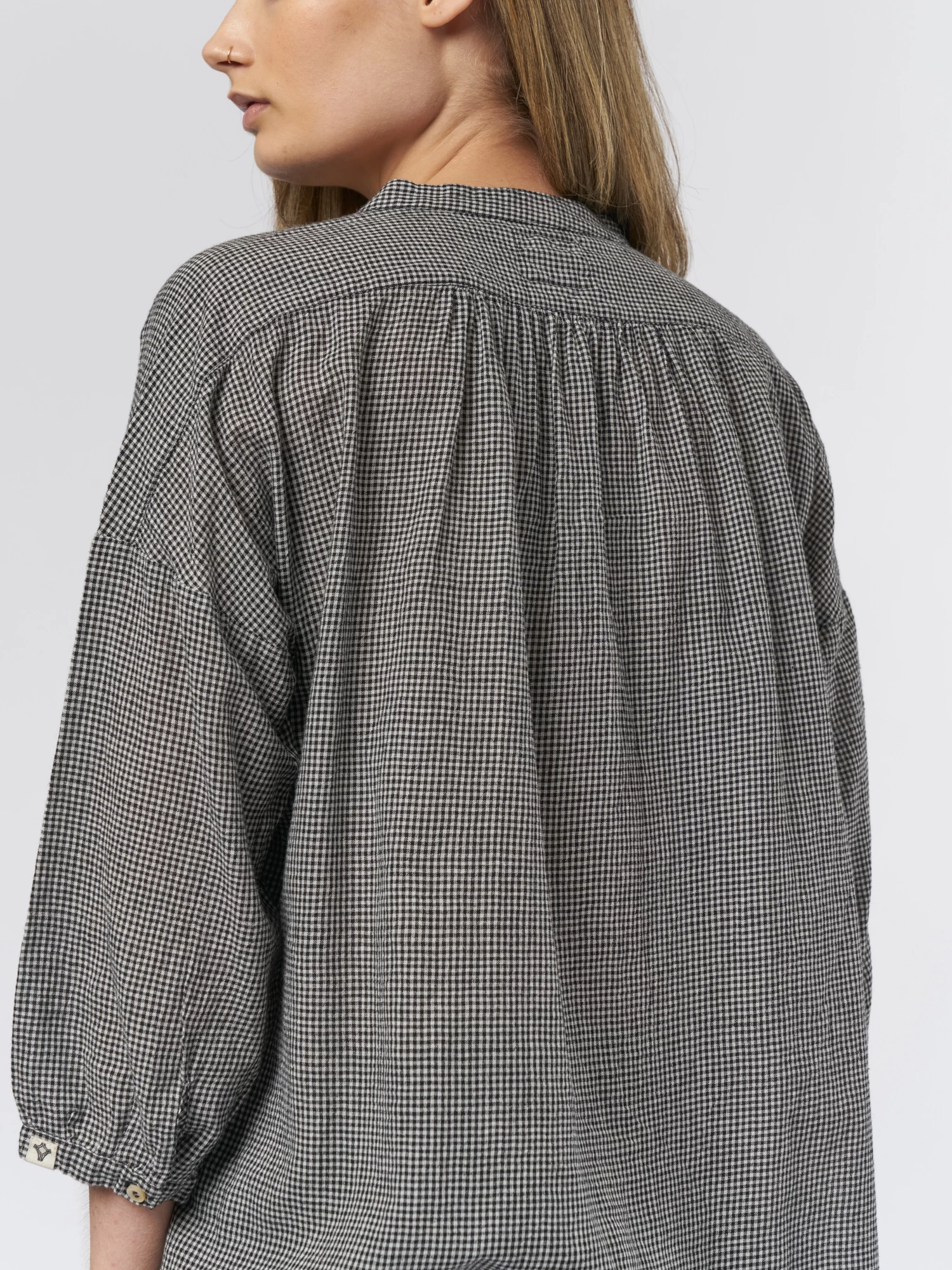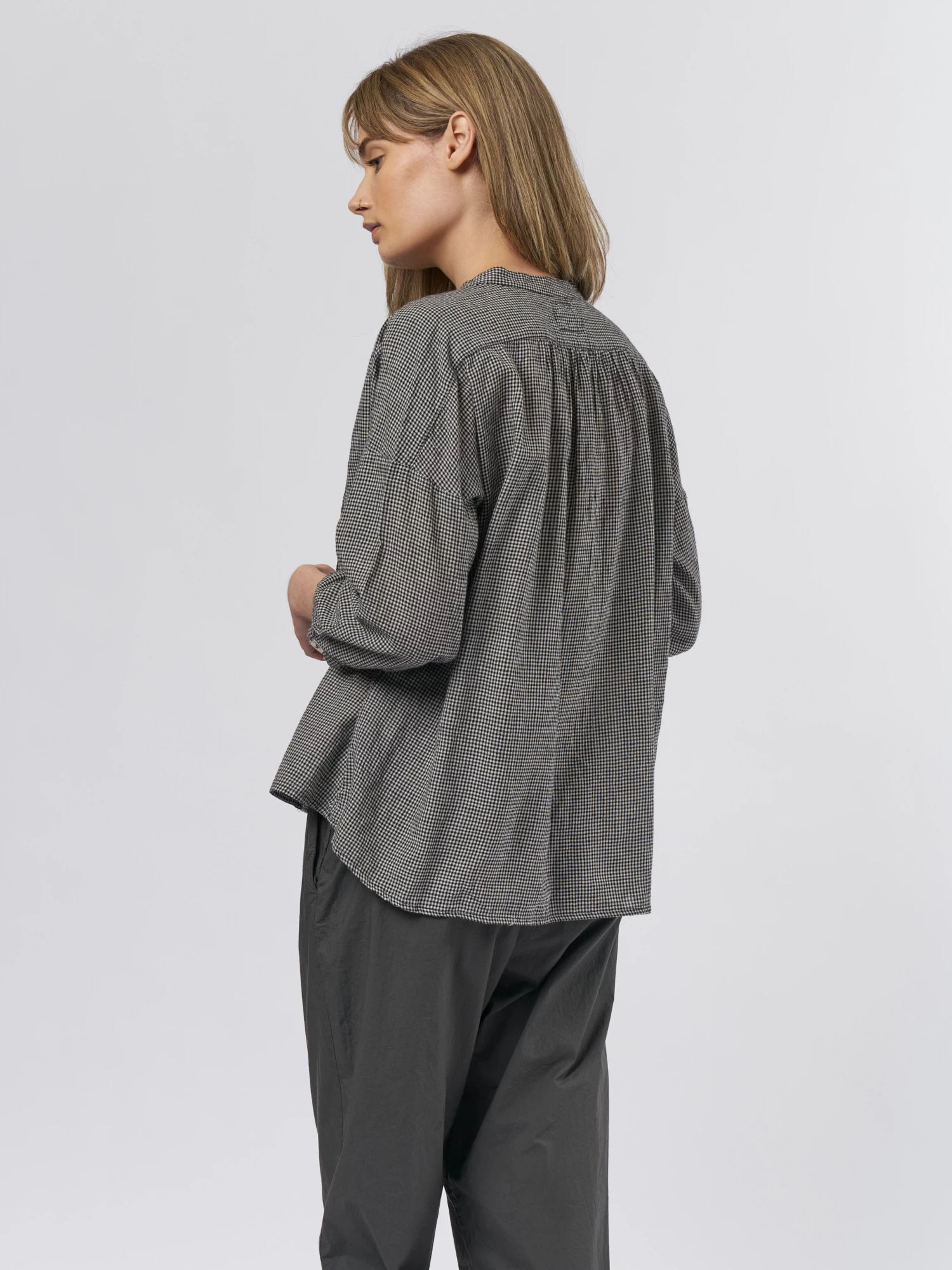 A flat collar cotton shirt with a button front in check.