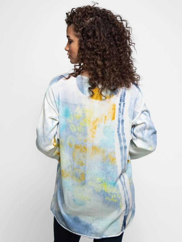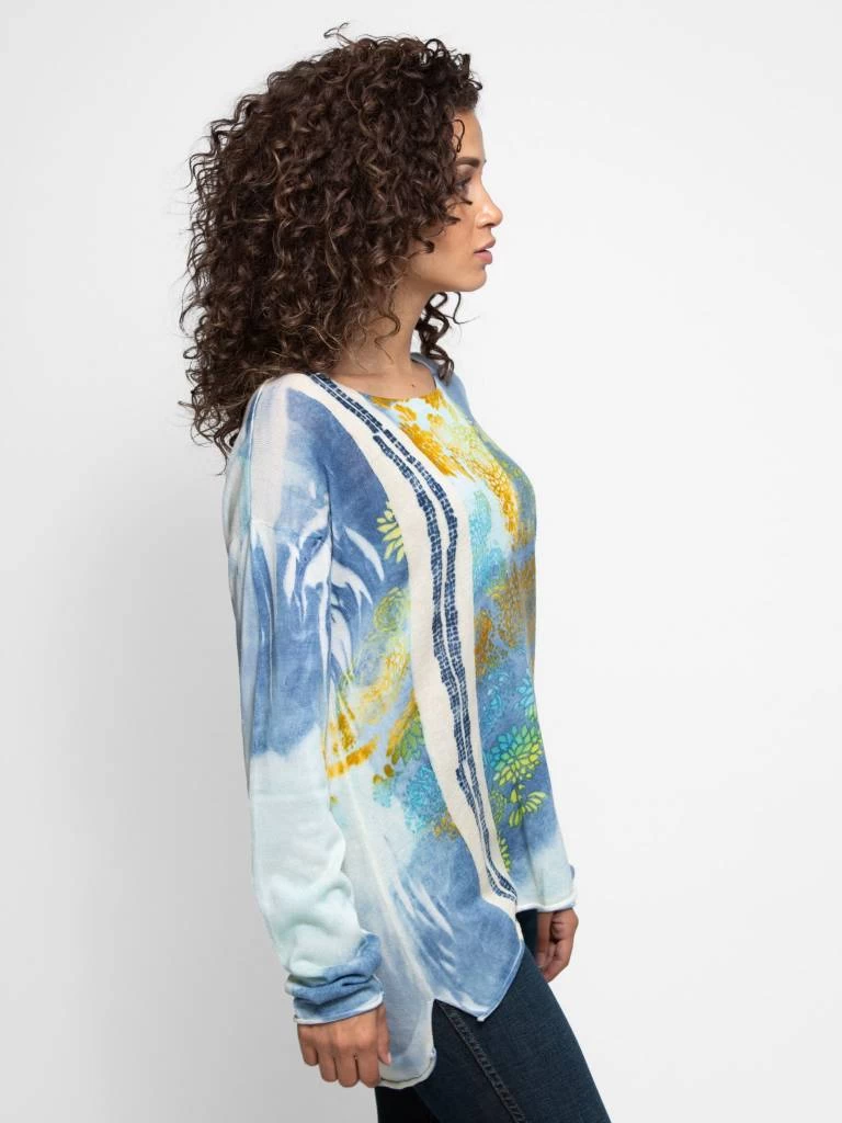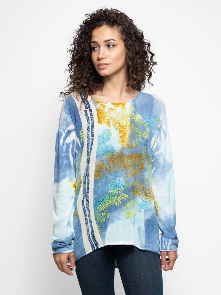 Cotton knit crew-neck pullover with hi-low hemline and flora print throughout.