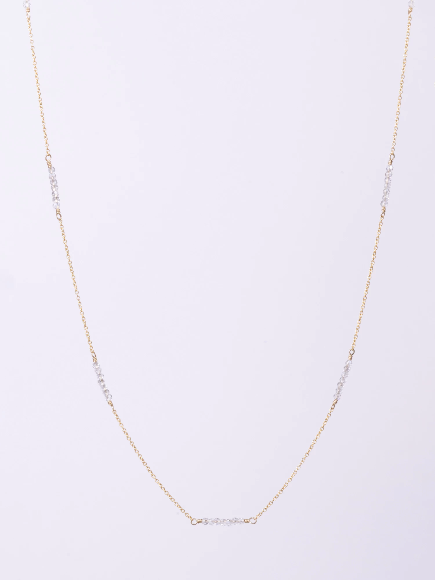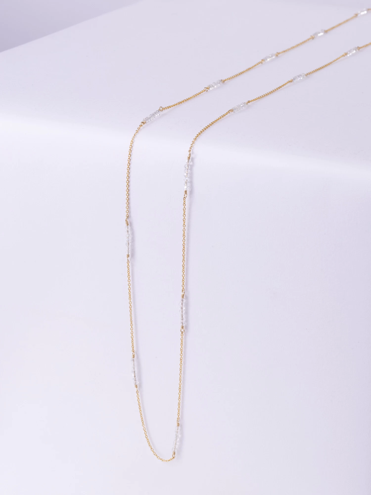 Very fine gold- filled thirty-six inches chain necklace combined with crystal beads