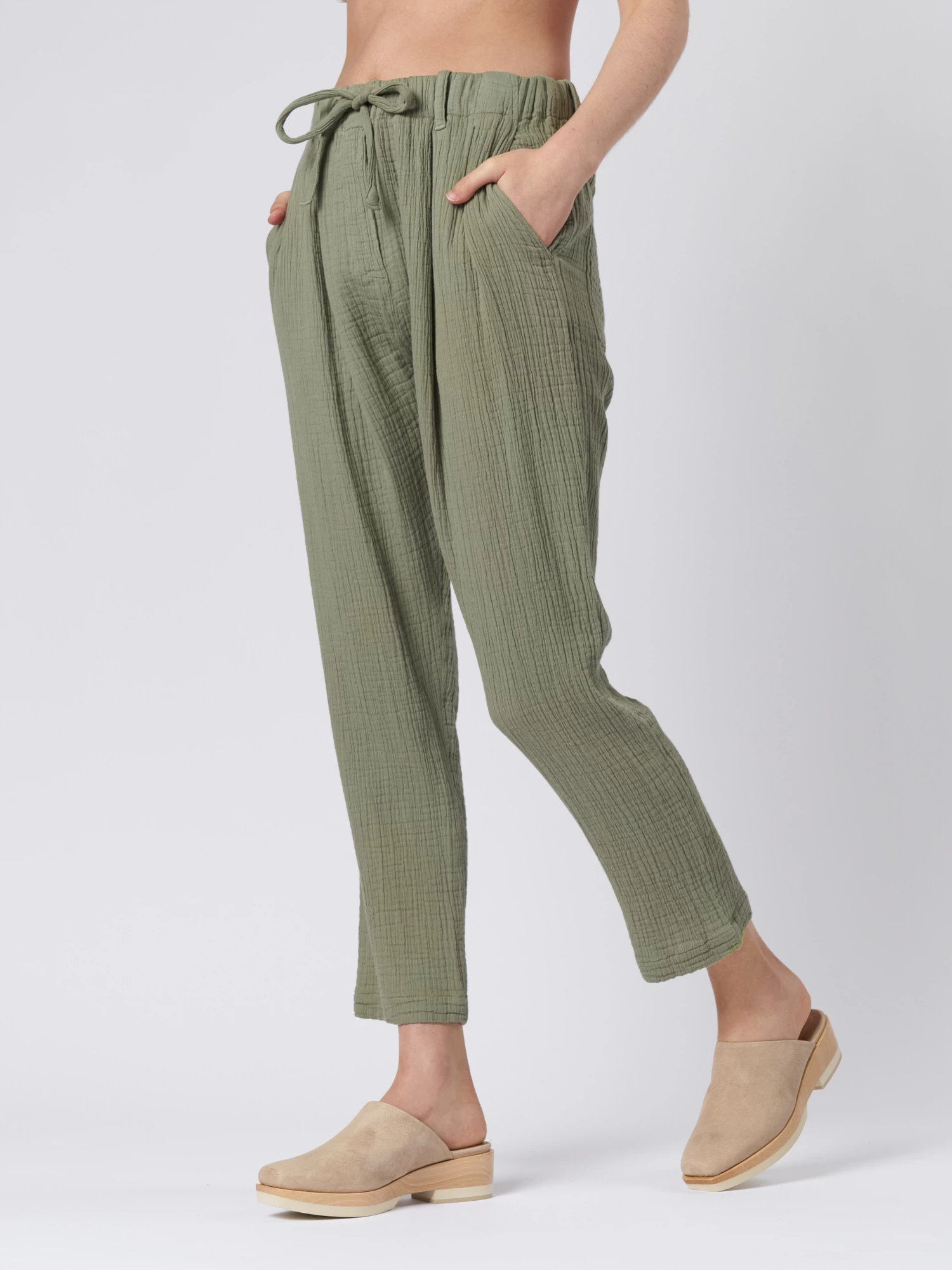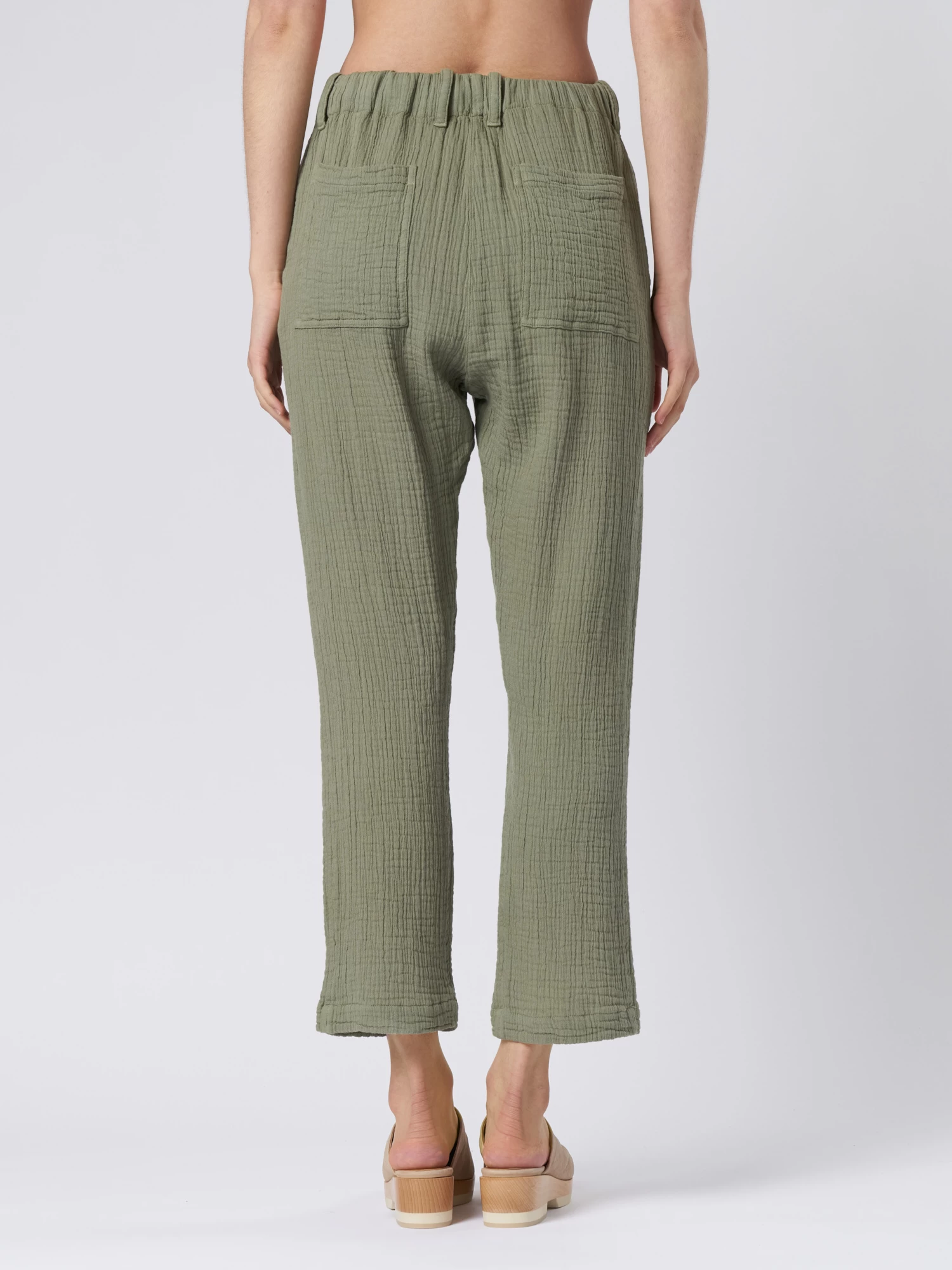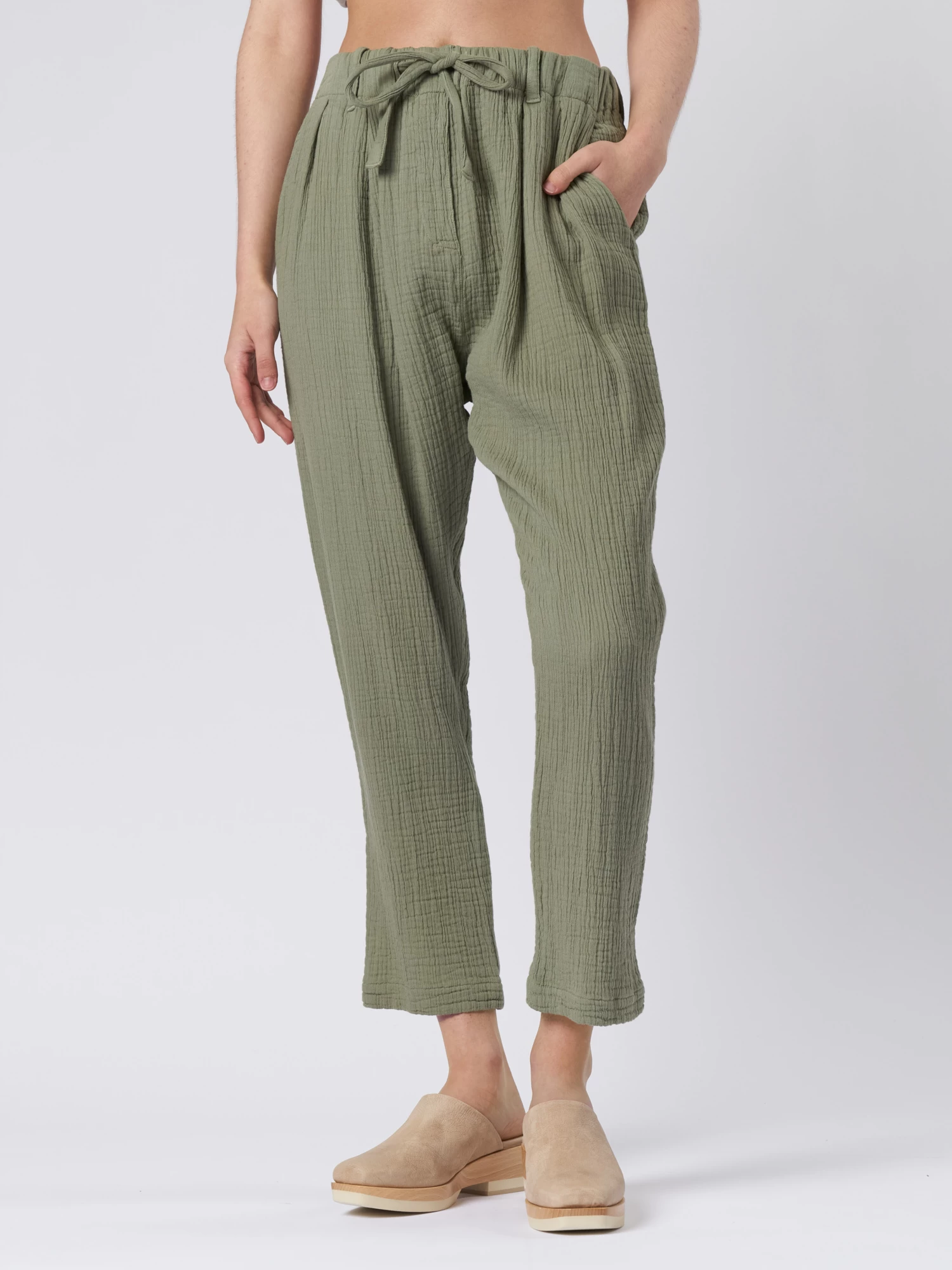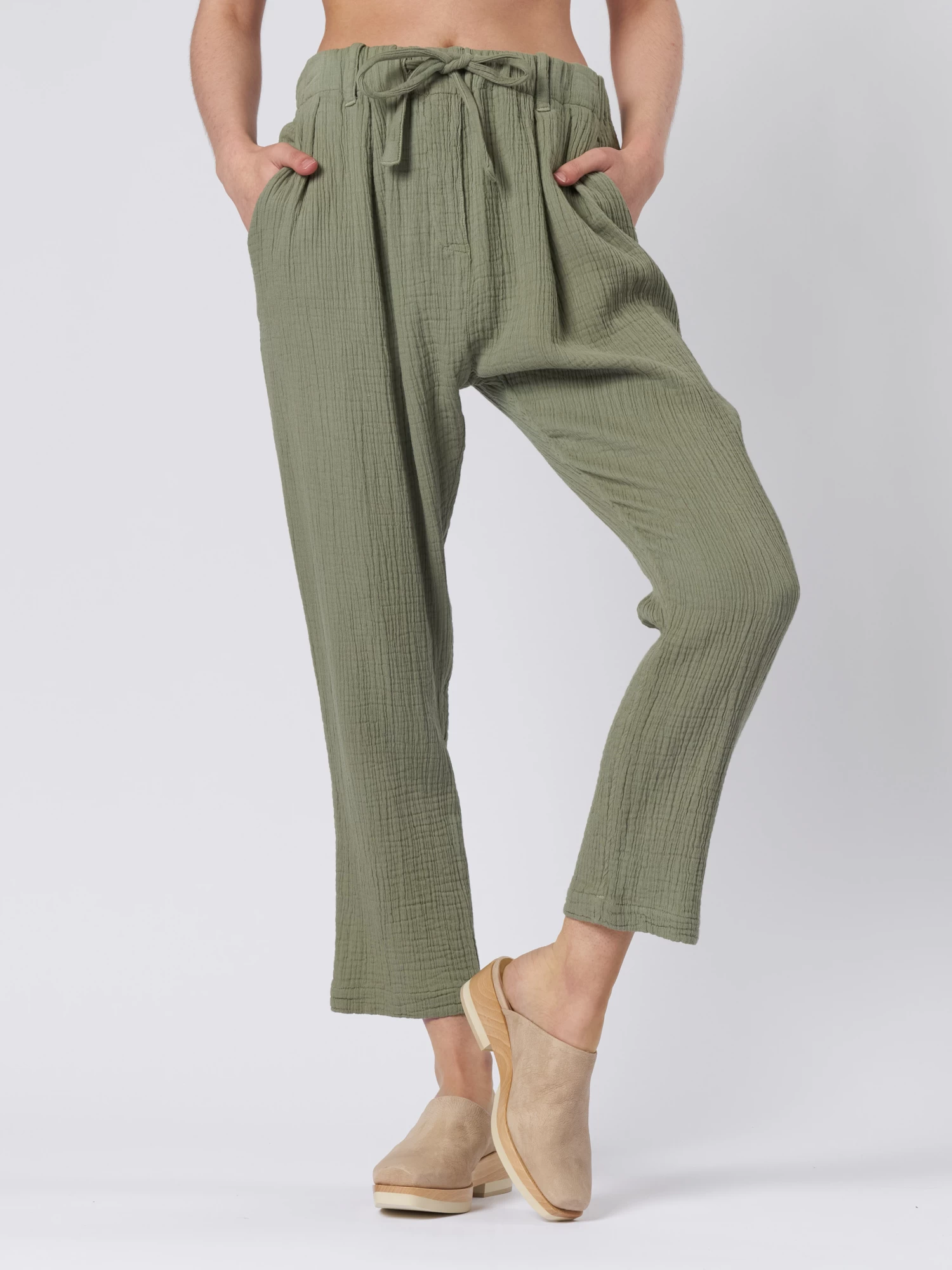 Cotton Gauze pant is designed to sit low on the waist with a relaxed fit and casual cropped length.