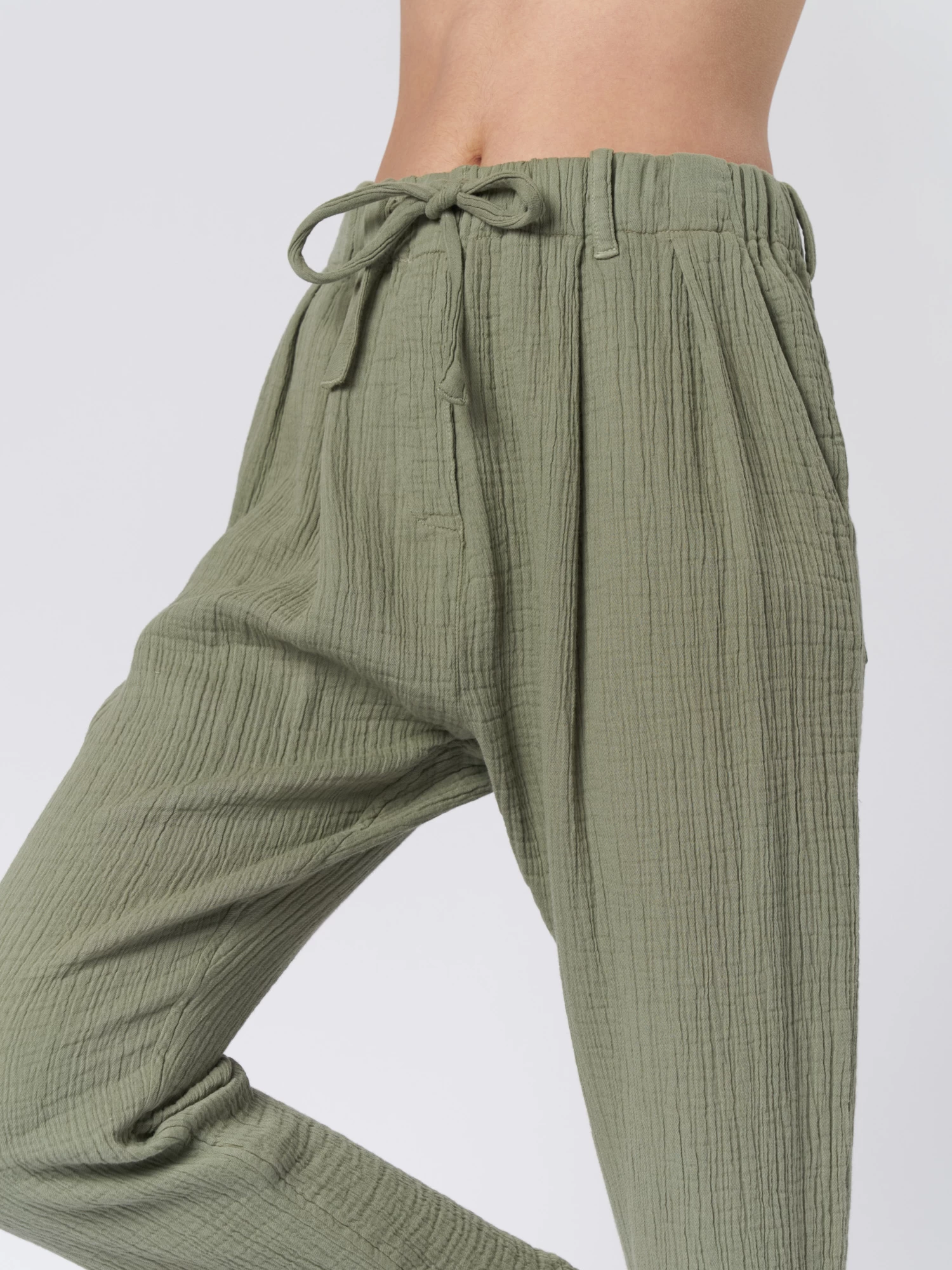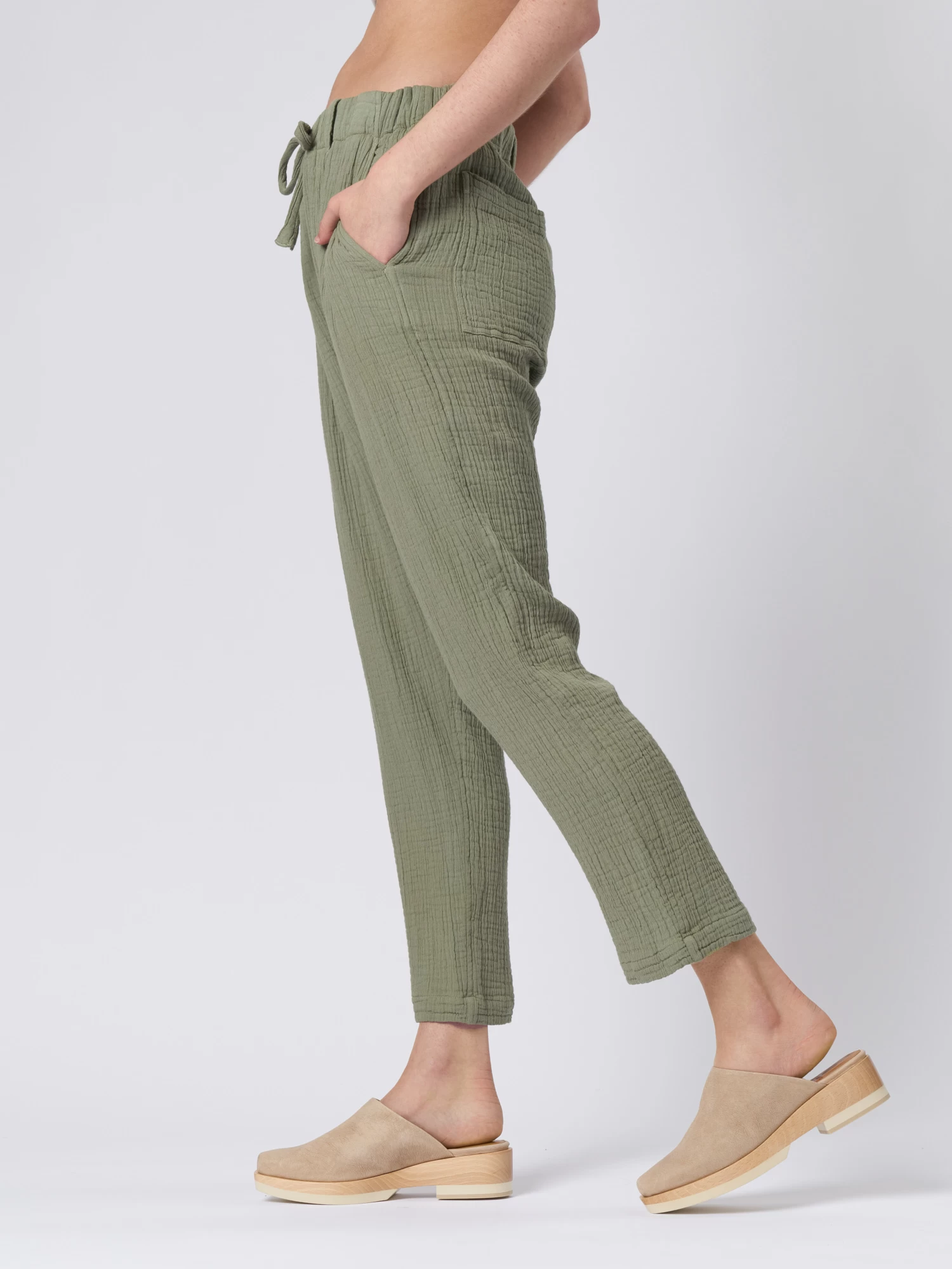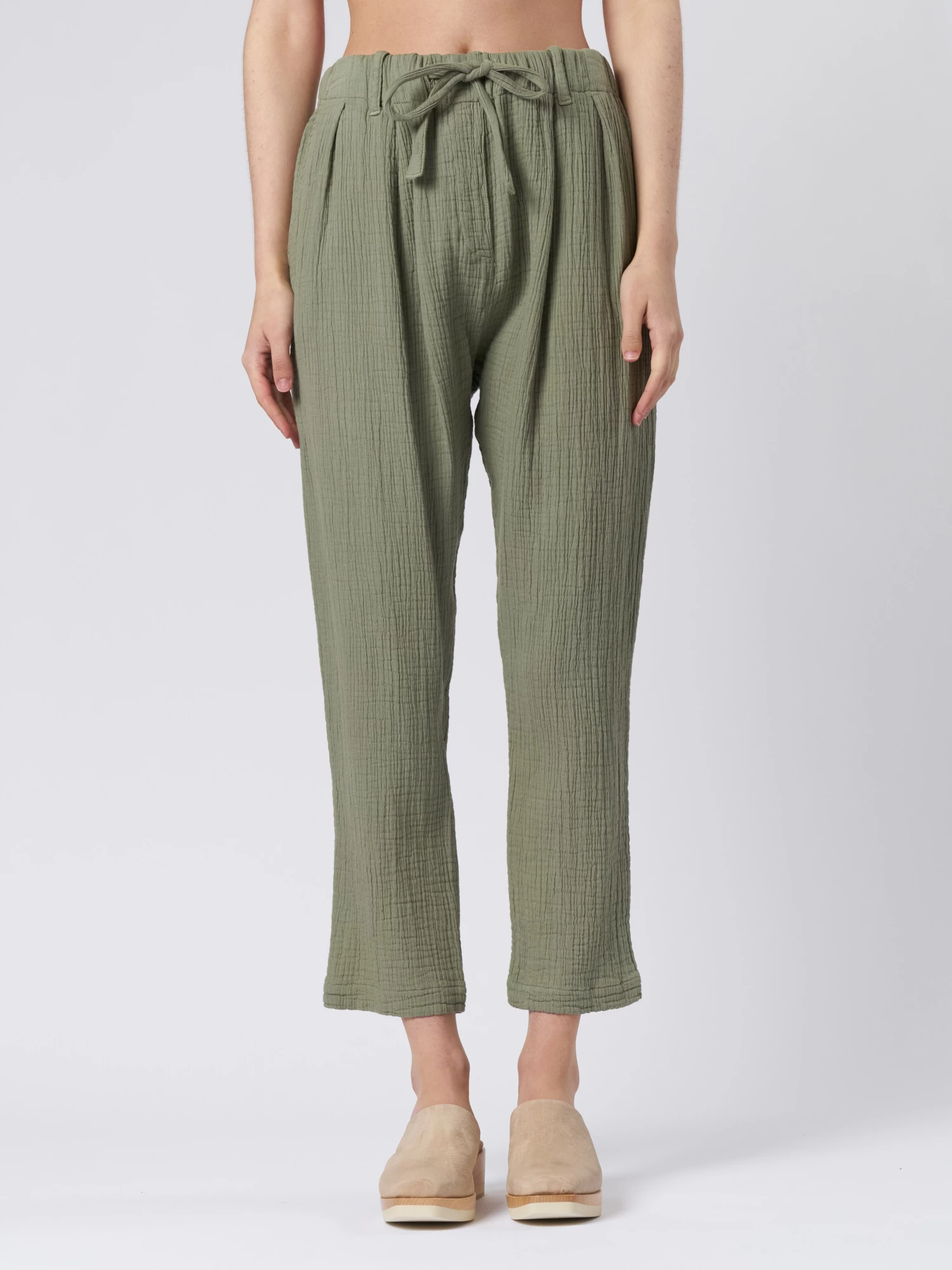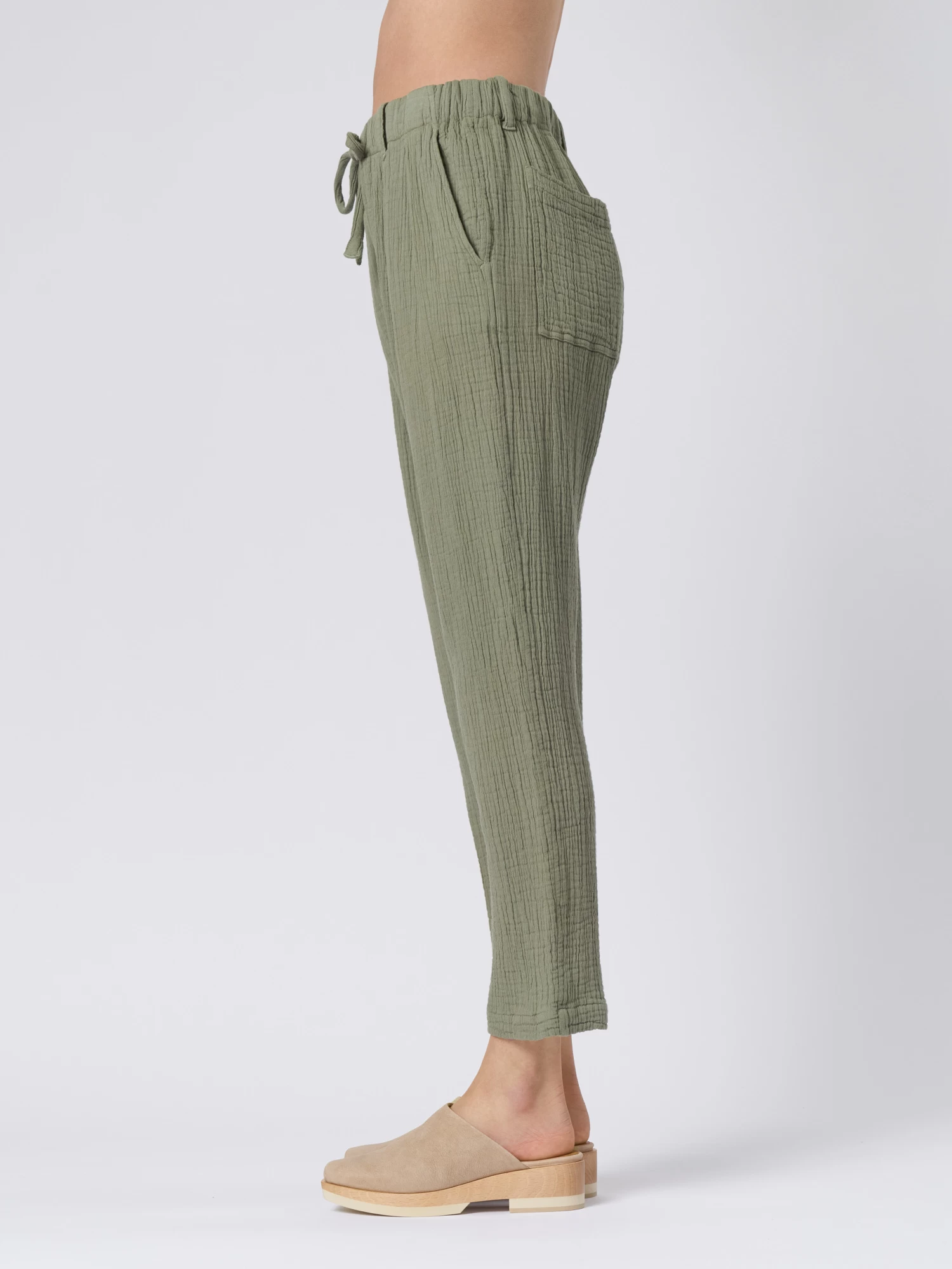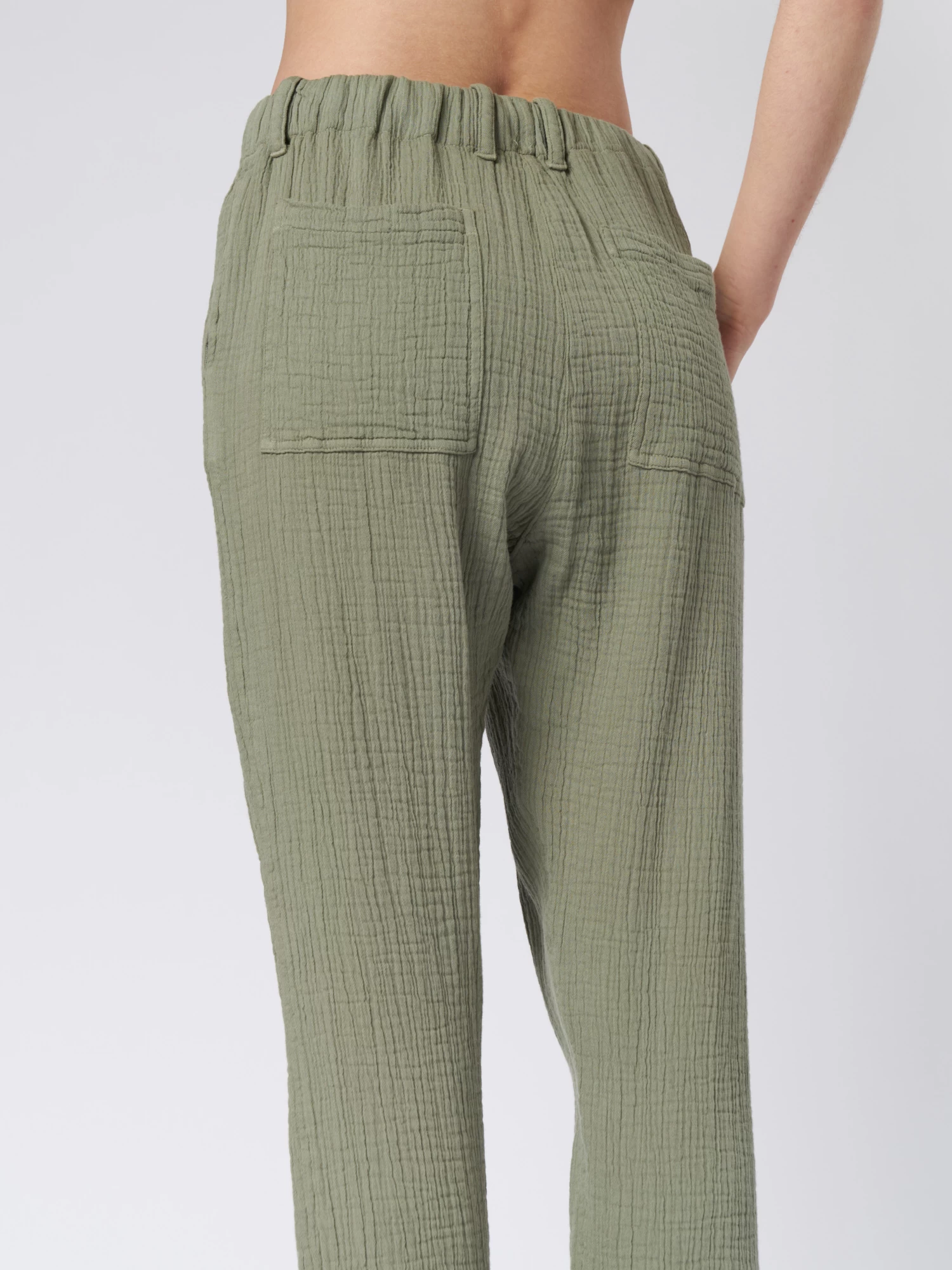Cotton Gauze pant is designed to sit low on the waist with a relaxed fit and casual cropped length.