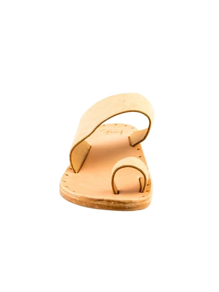 A toe-ring slide with an asymmetrical strap and molded arch.