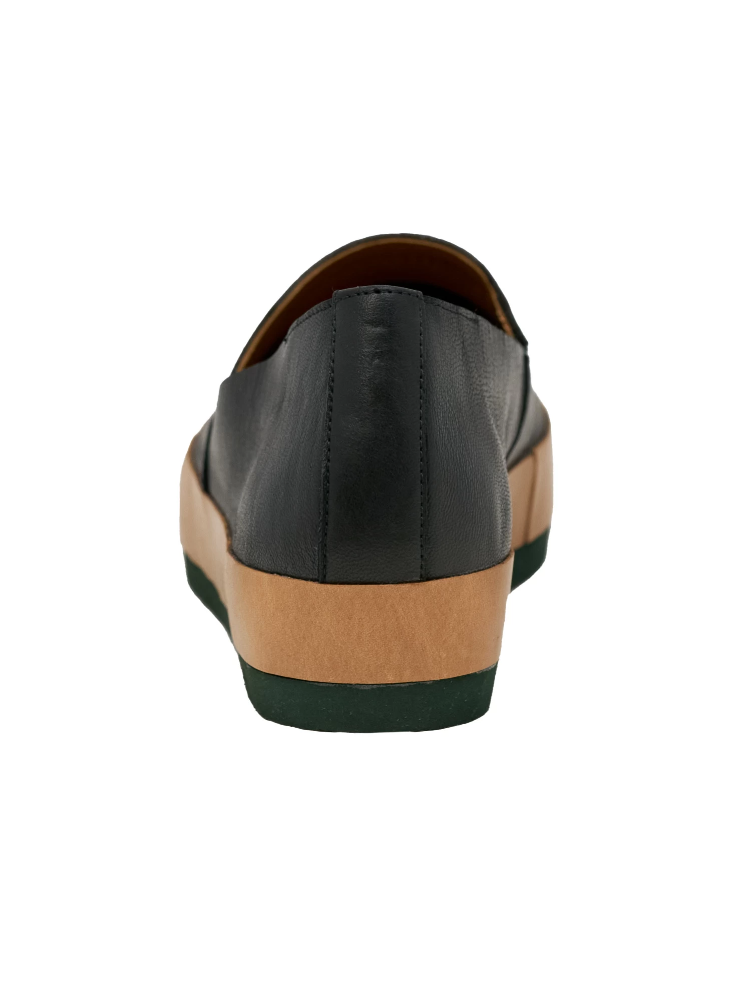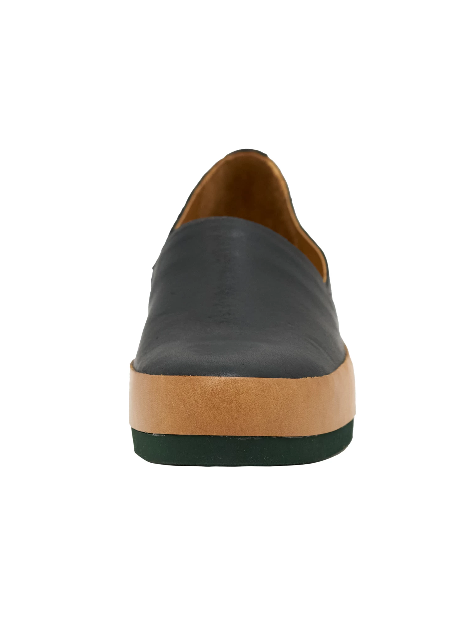 Light as a feather, the Gentian Flat is clean, casual slip-on flat with contrasting leather band and durable, dark green, rubber EVA sole.