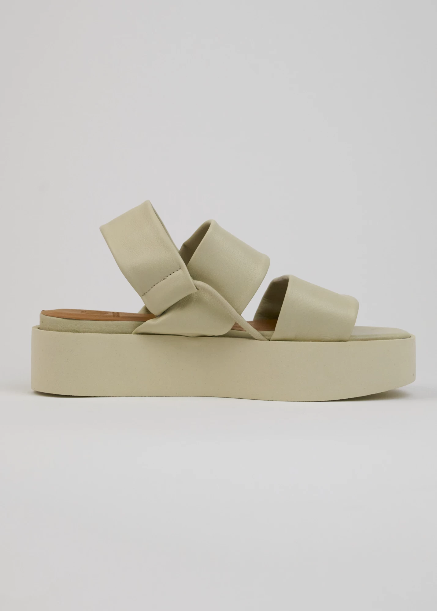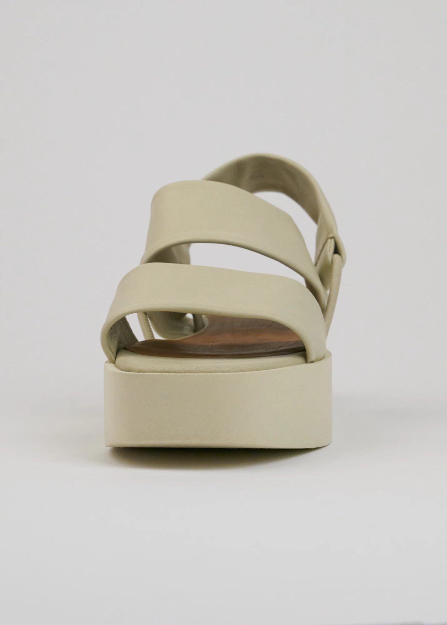 Two tubular, extra soft straps hug the foot and elasticated loops hold the back strap adding extra security to this lightweight flatform