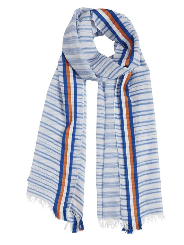 A cotton scarf featuring a mixed stripe pattern throughout.