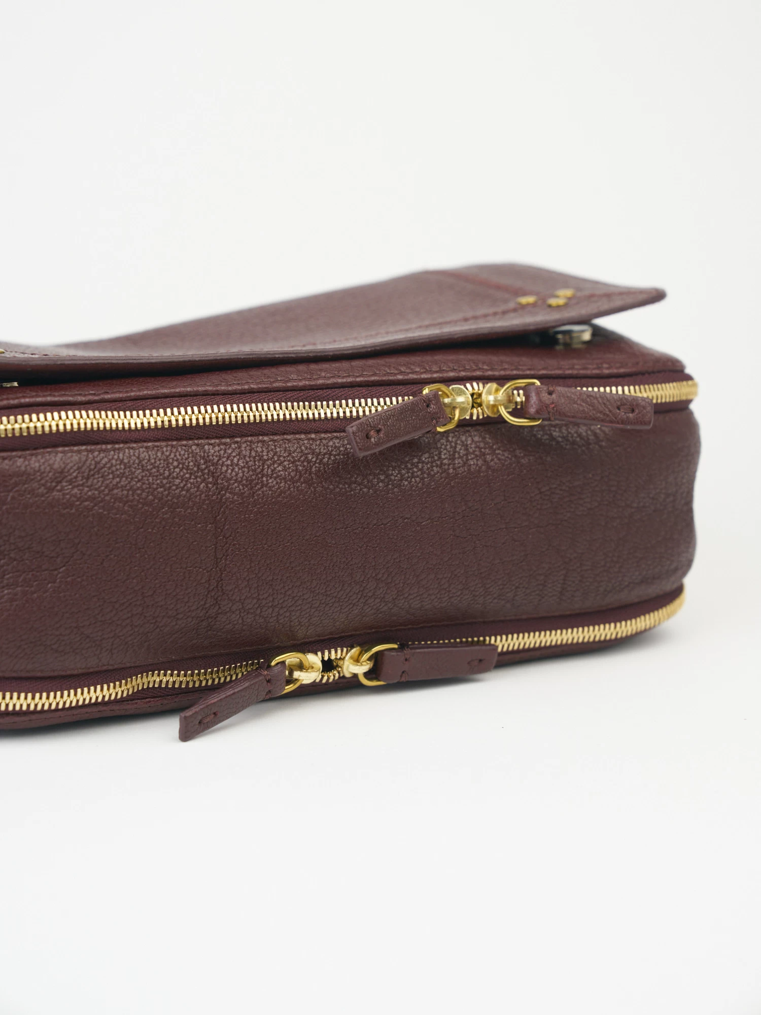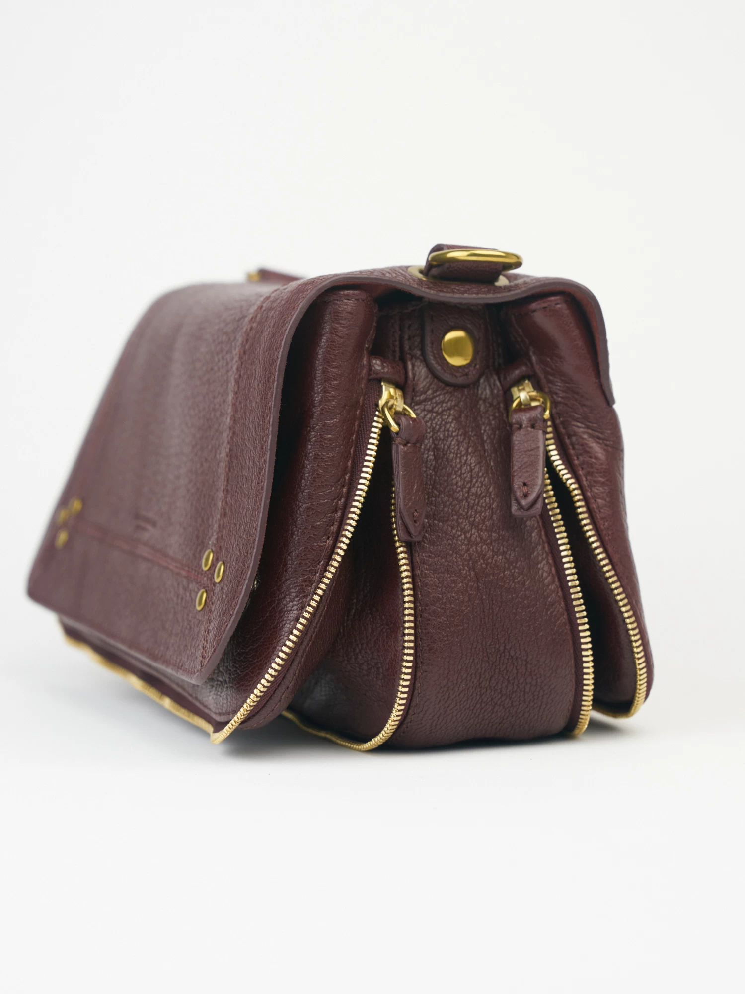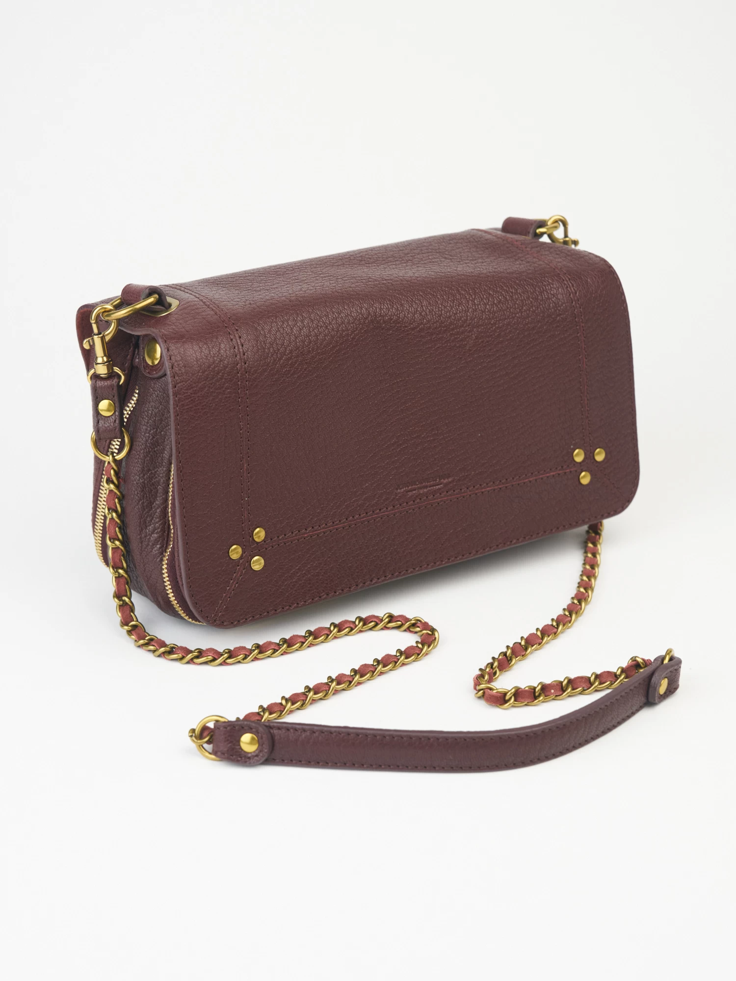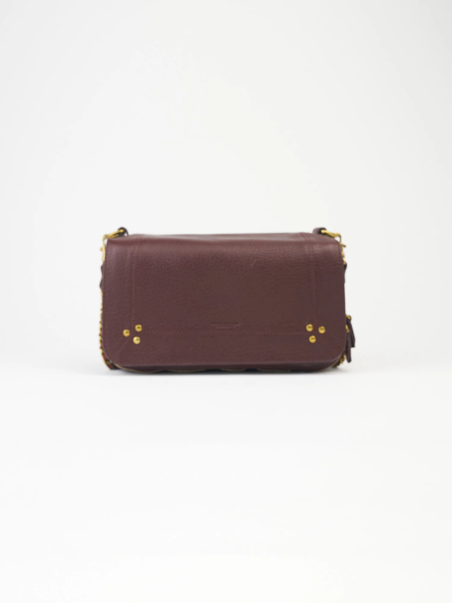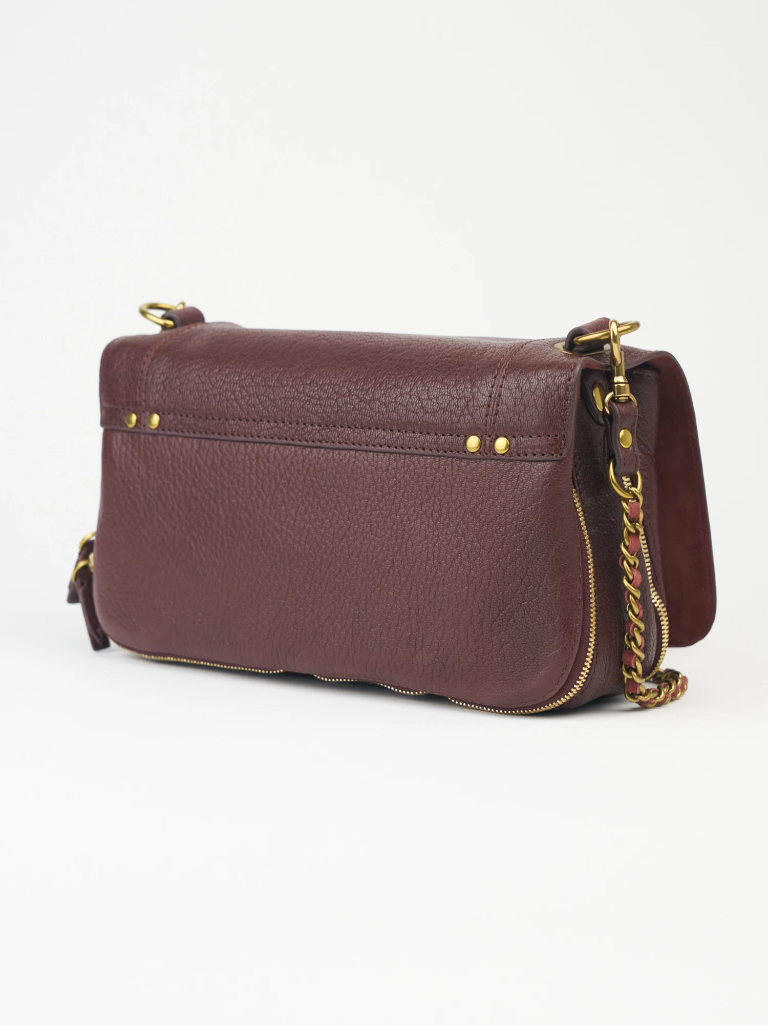 Shoulder bag to wear over the shoulder or cross-body with removable shoulder strap in the braided leather chain and closing by a flap in magnetized leather.