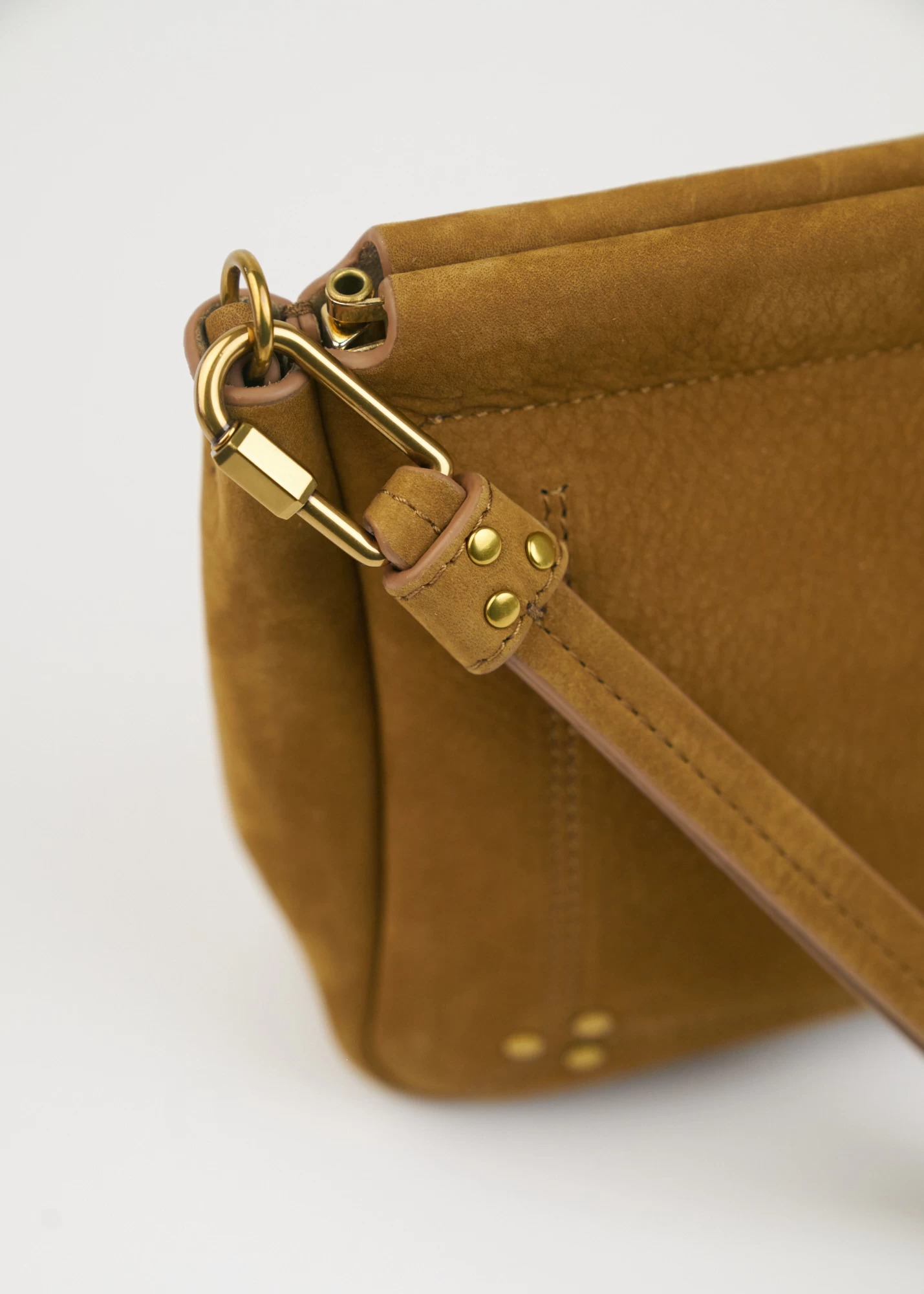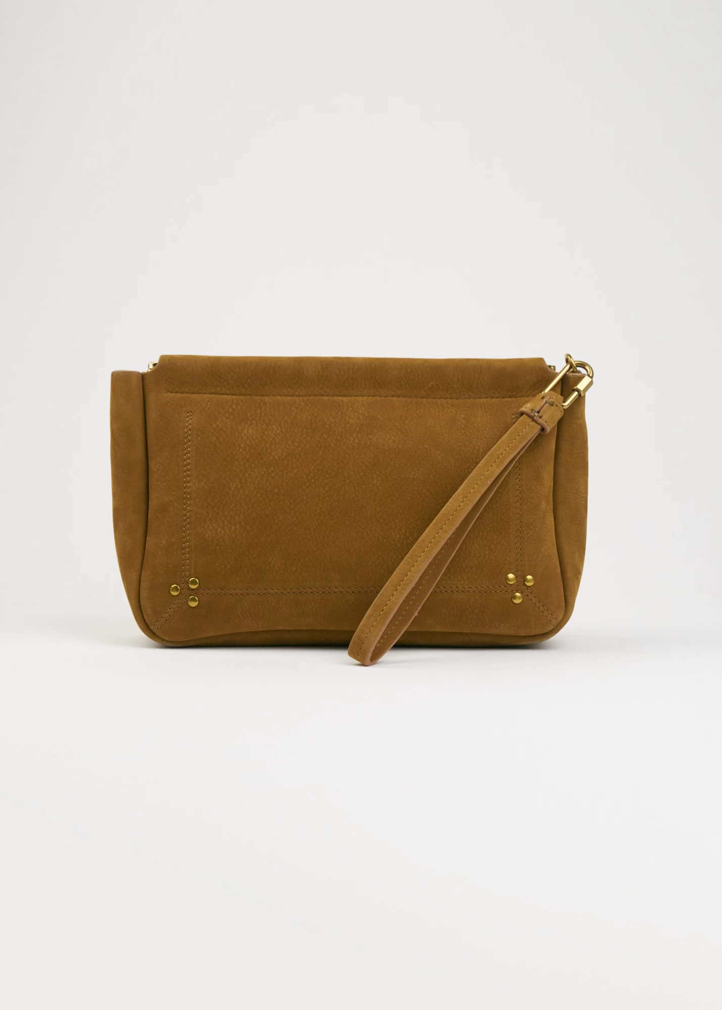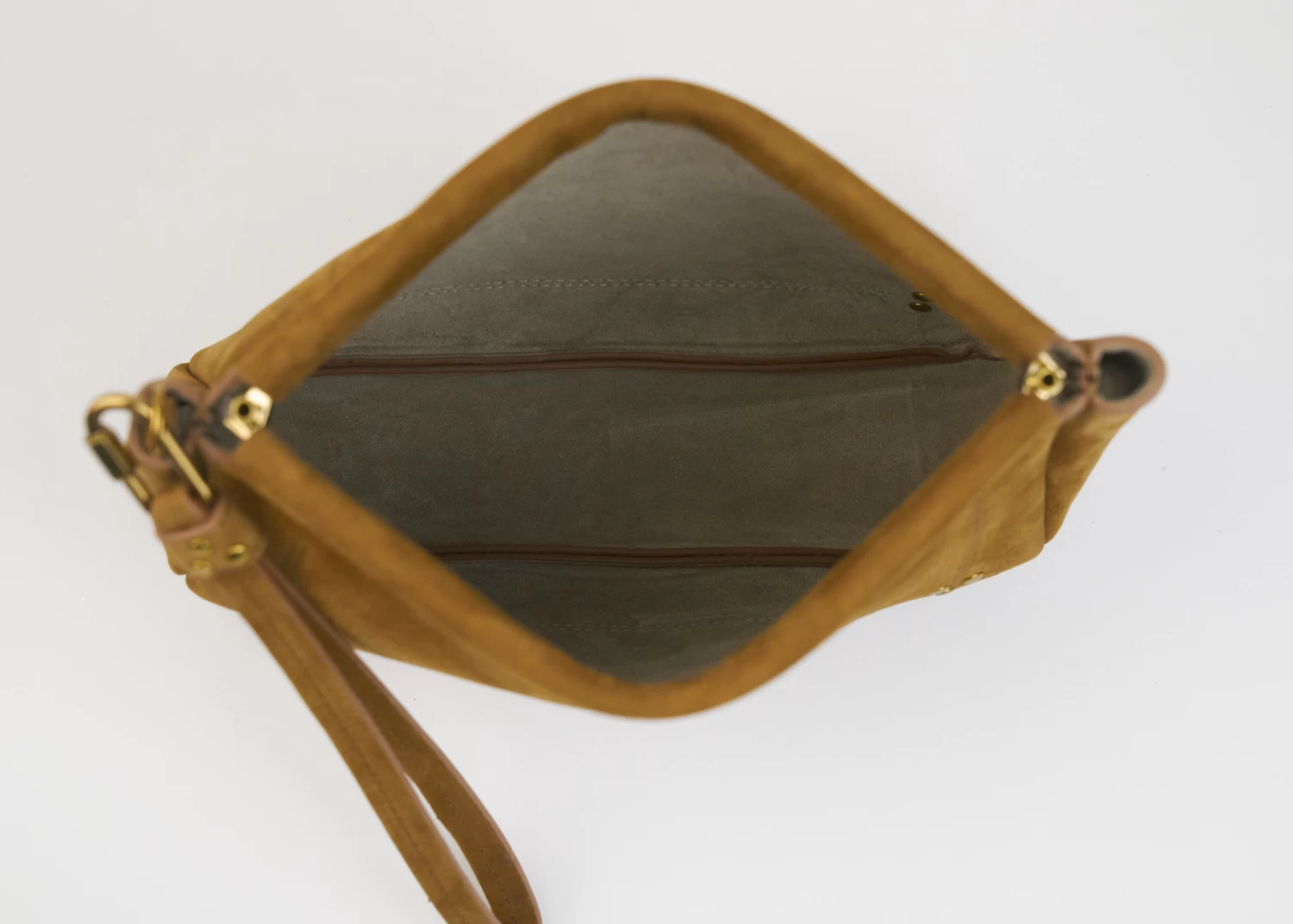Hand-held, or slip into a large tote bag with a removable strap, and snap closure.