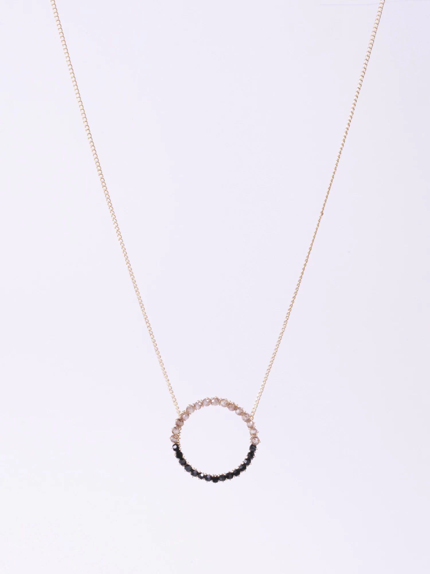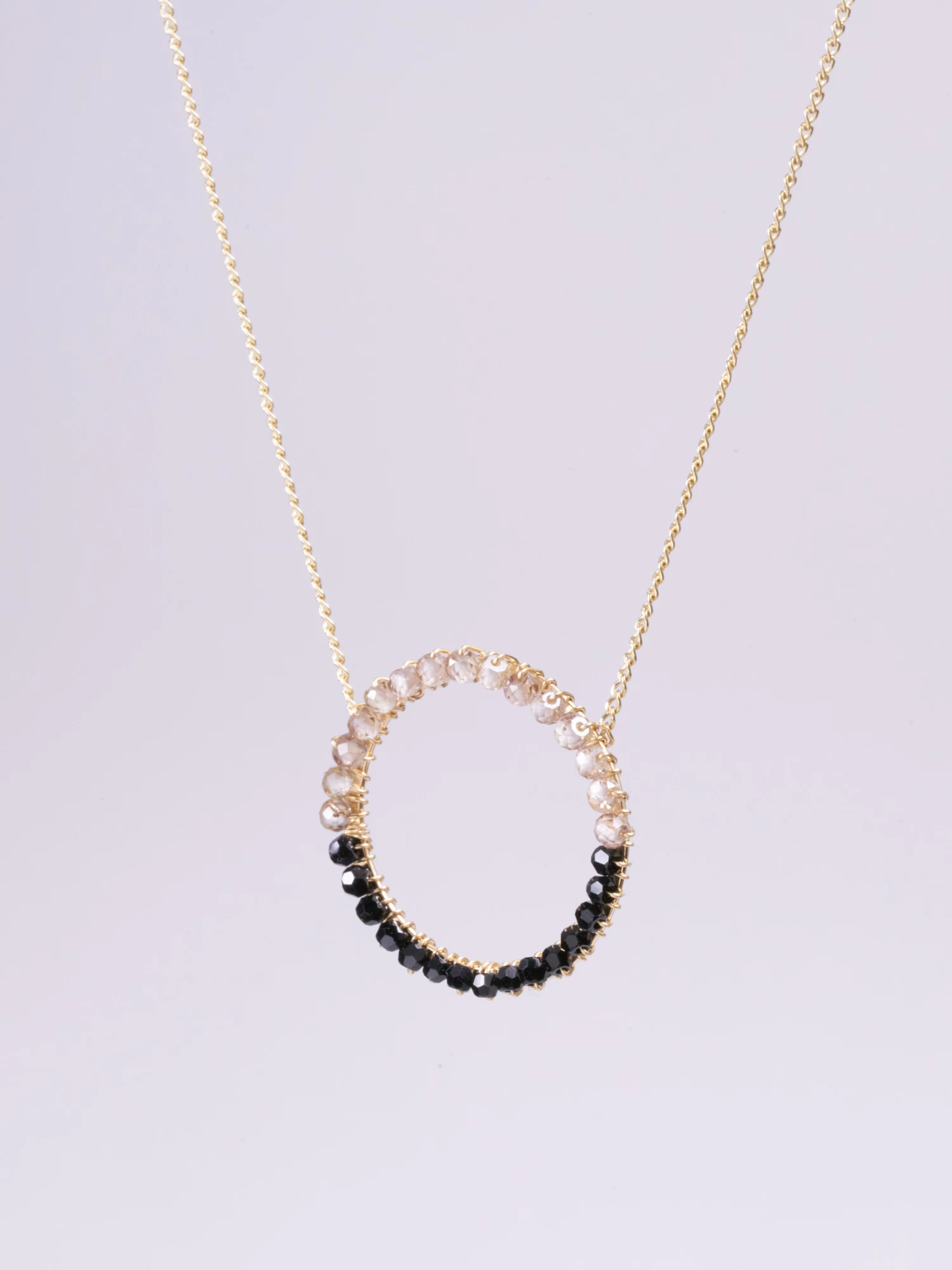 Drop hoop wrapped with gold wire with Jet and Clear Quartz beads.