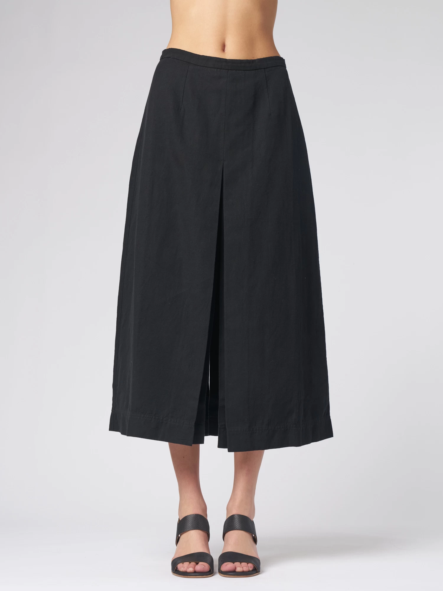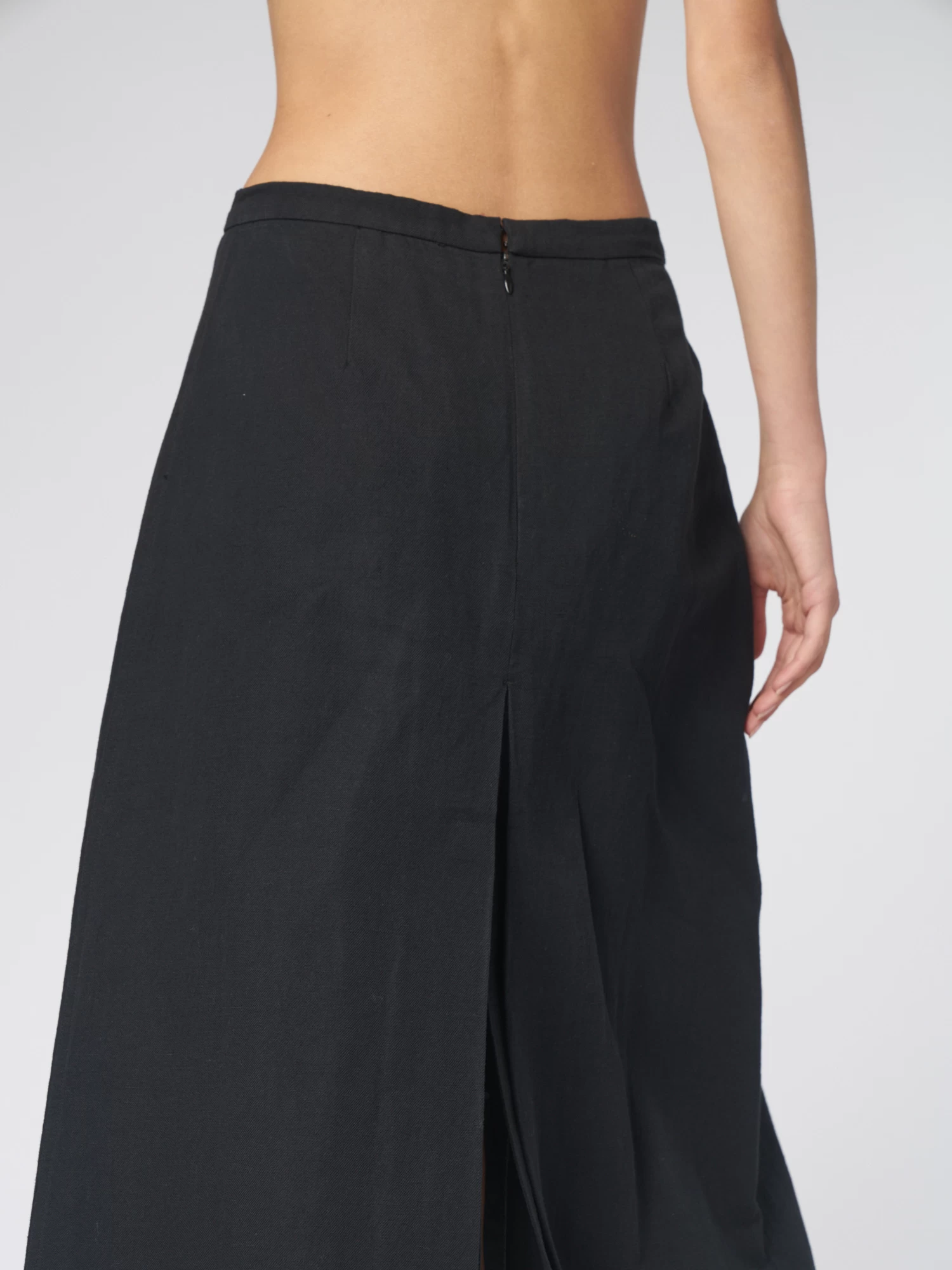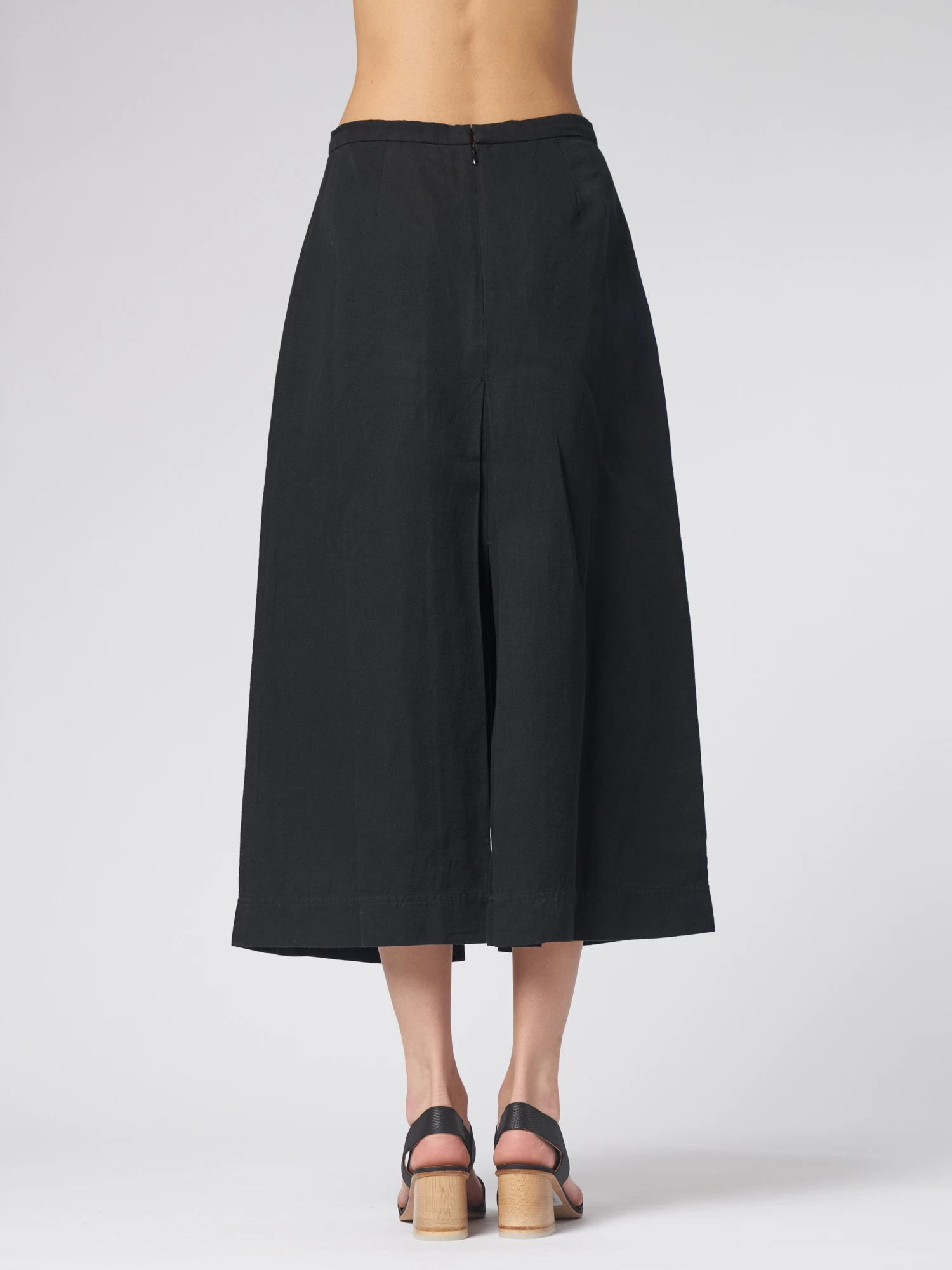 A-line silhouette midi length skirt detailed with pleated split hem at front and back
