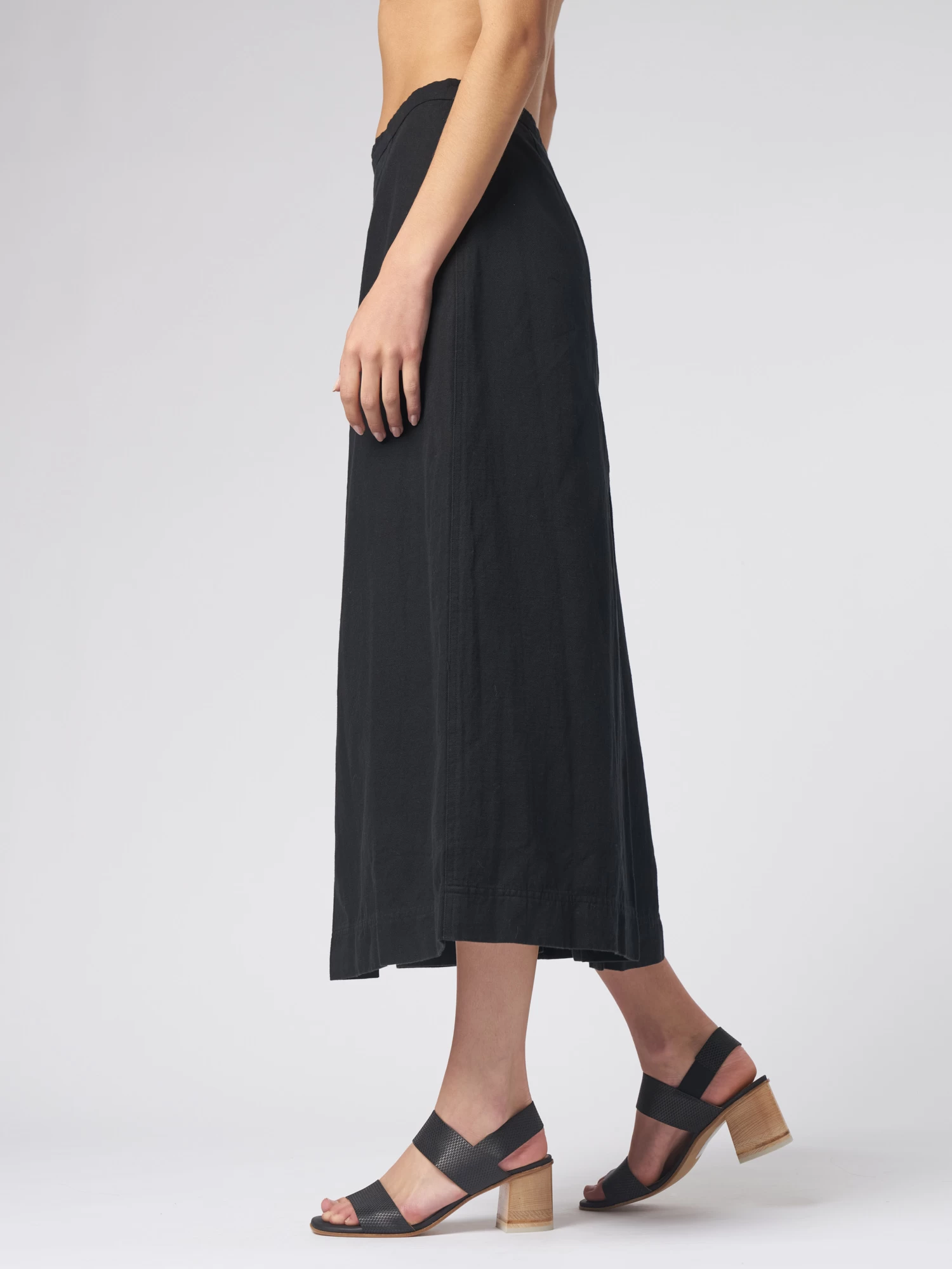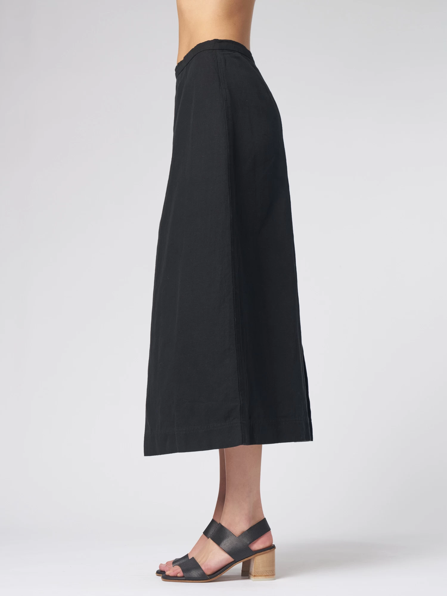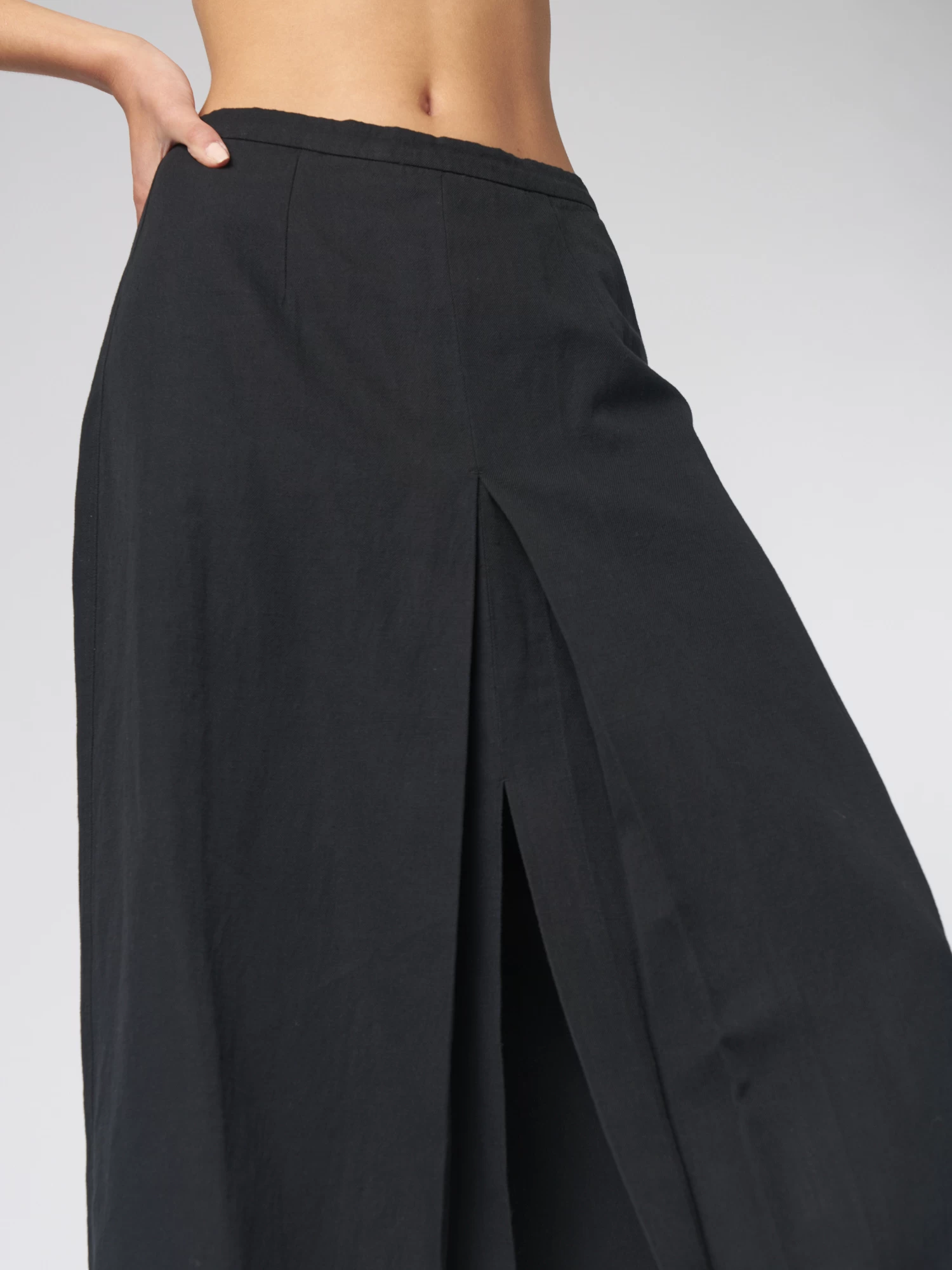 A-line silhouette midi length skirt detailed with pleated split hem at front and back