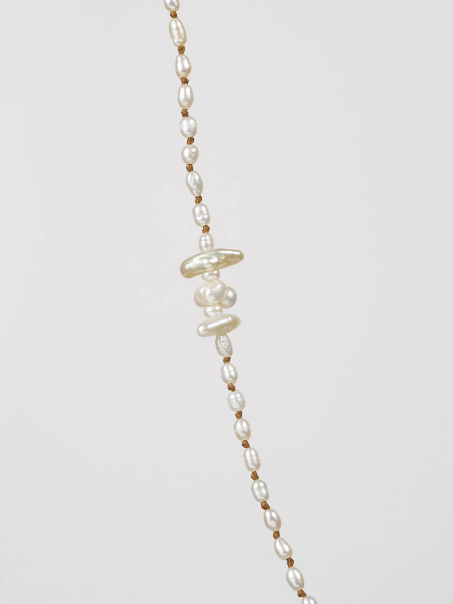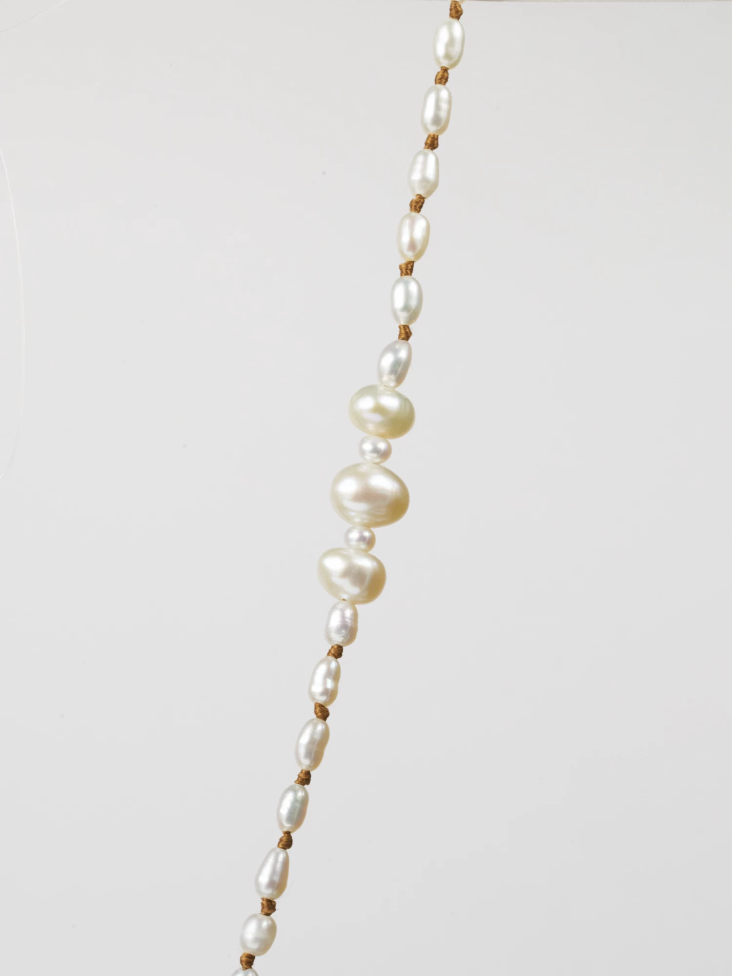 Mini Pearls knotted with light brown silk thread and pearl button closure