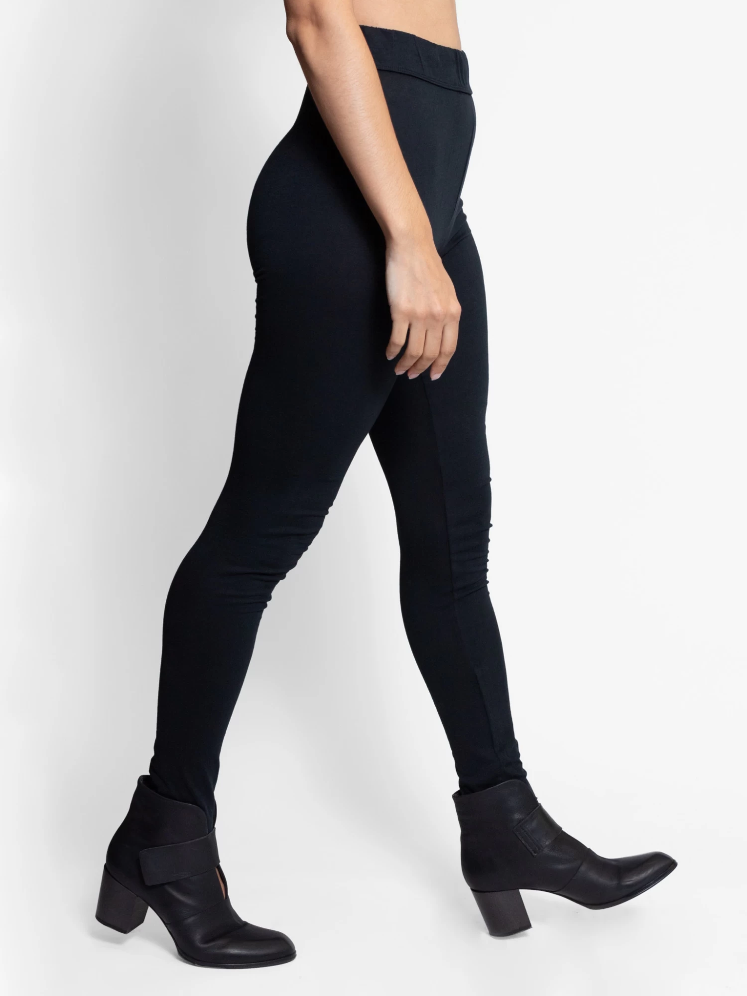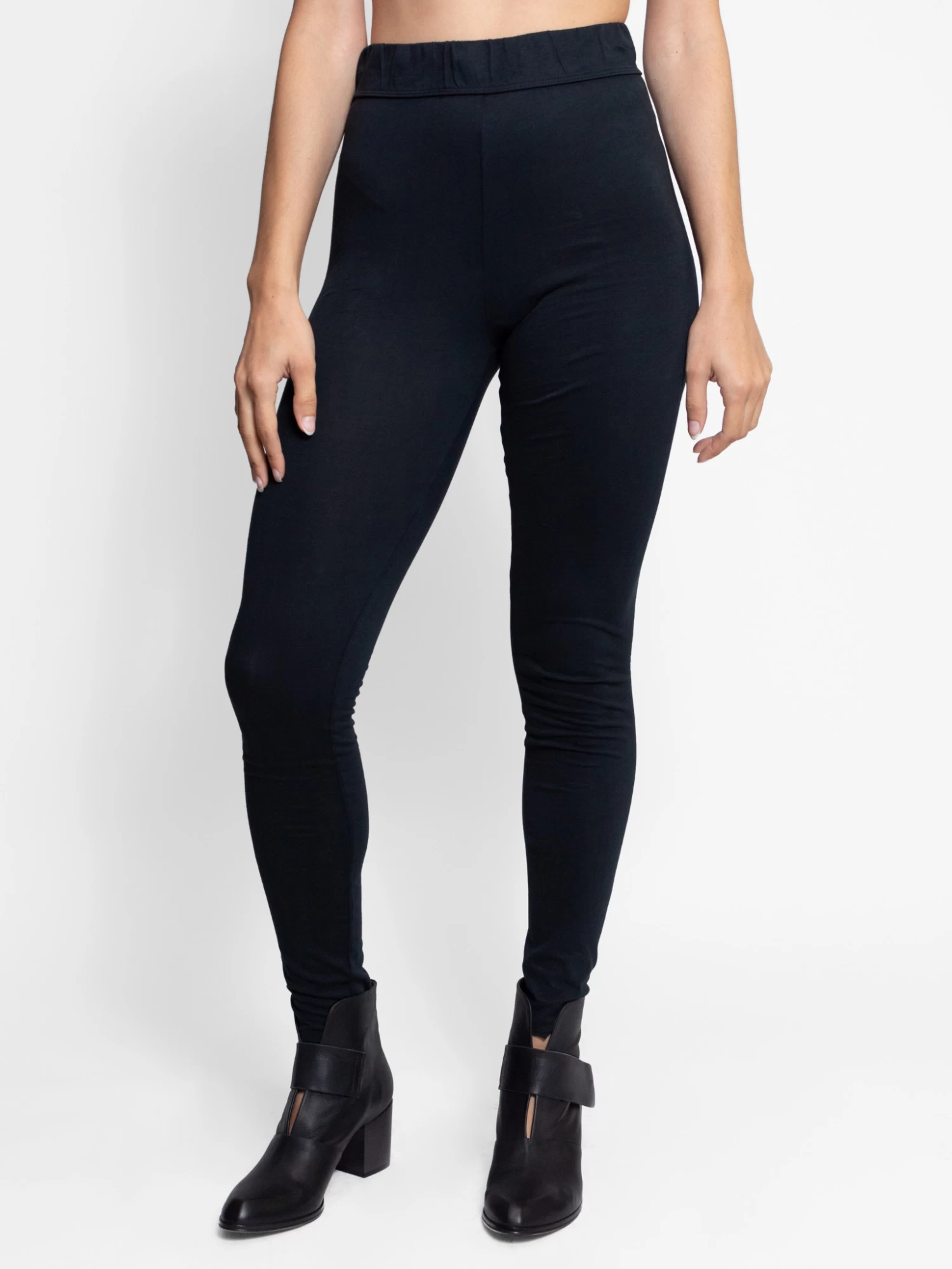 A fitted legging with a raw hem in black, sueded baby jersey.