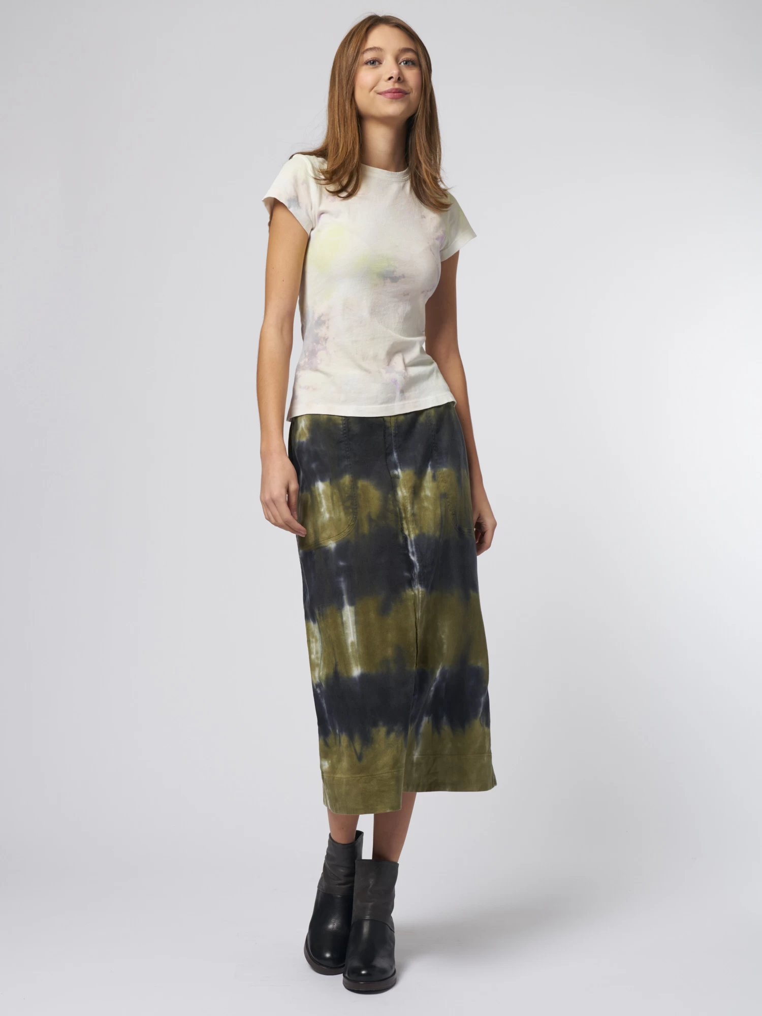 Classic jersey tee with a cap sleeve in army green tie dye.