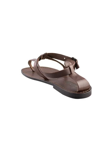 A leather thong-strap sandal, with an adjustable ankle closure.