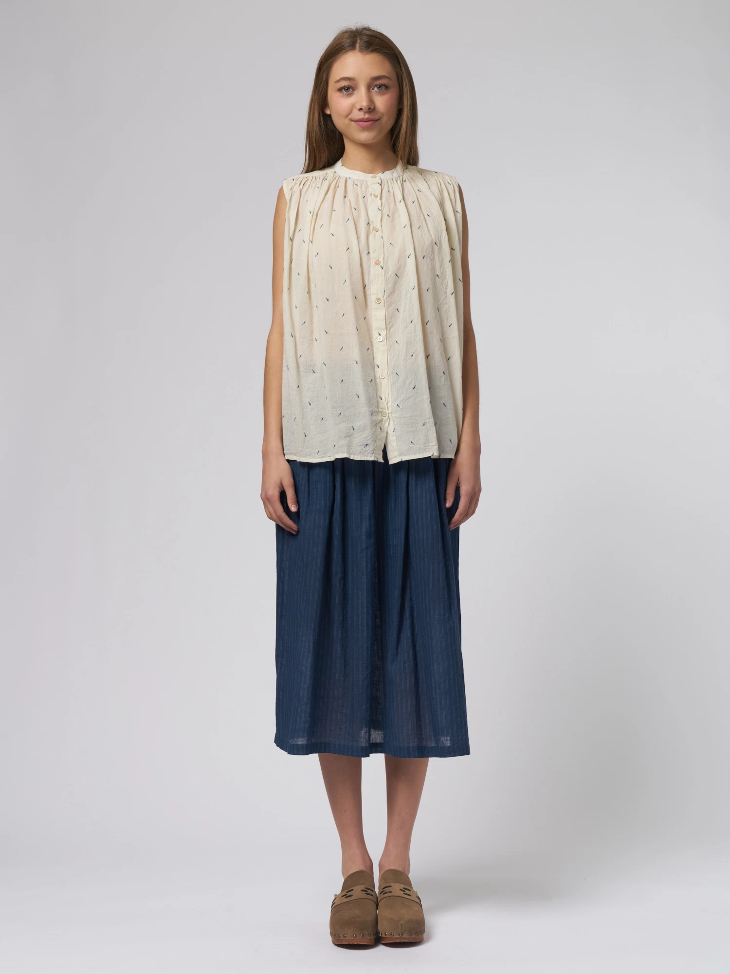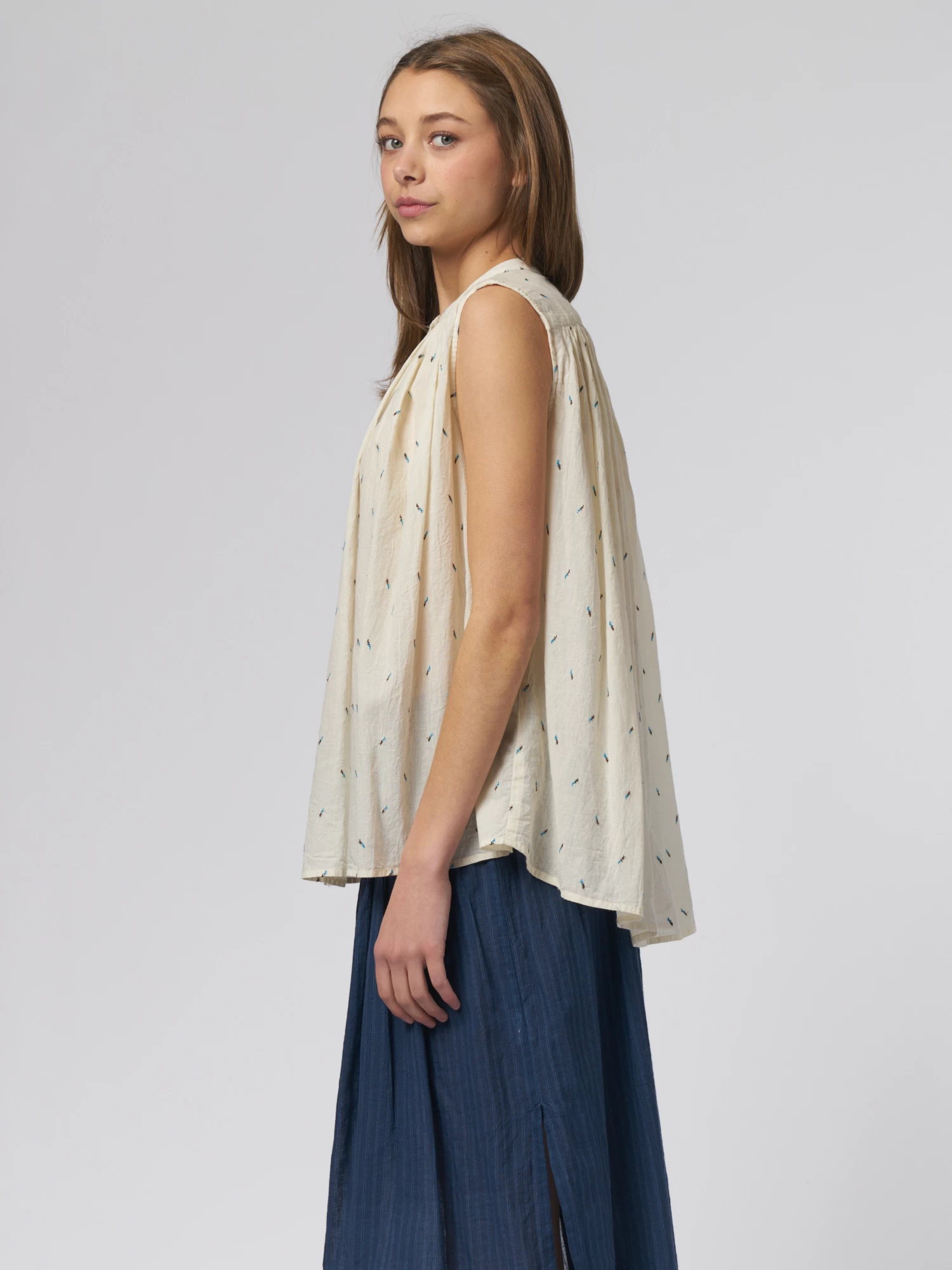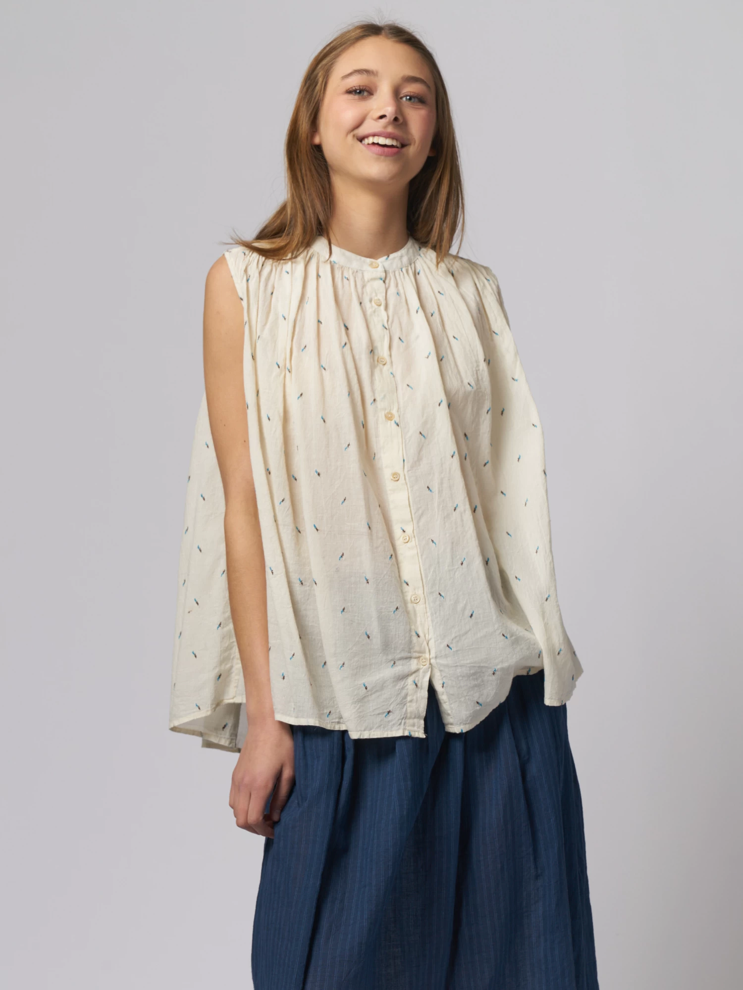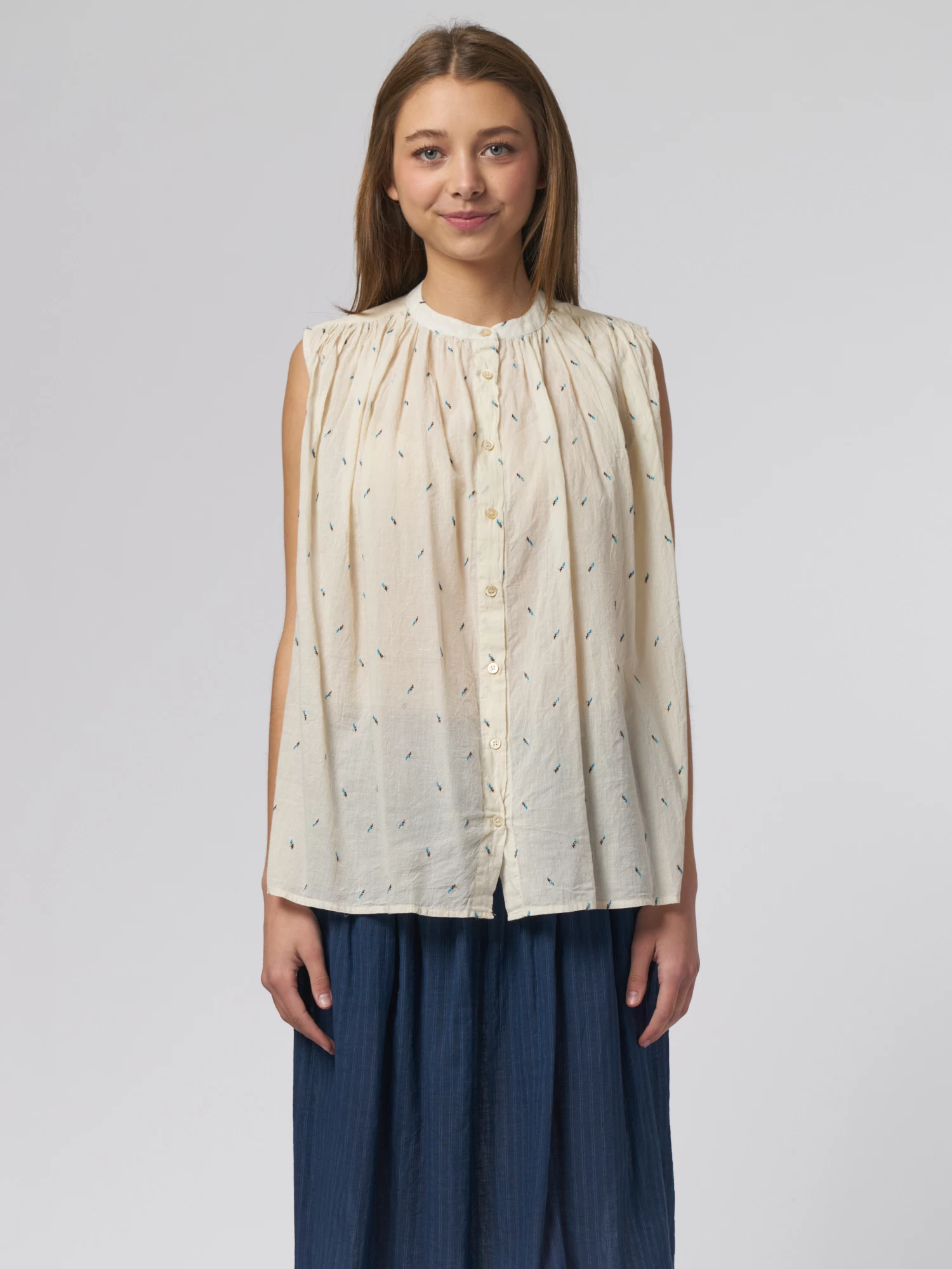 Sleeveless Ray’s Embroidered cotton shirt with a button front in a loose bodice