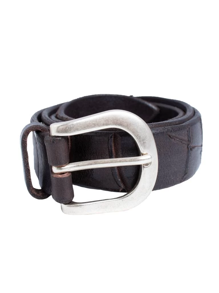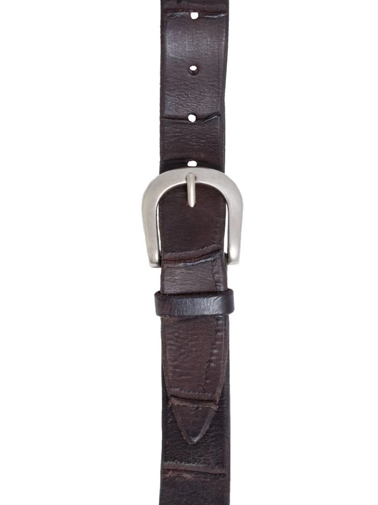 A textured leather belt with silver buckle in T. Moro chocolate brown.