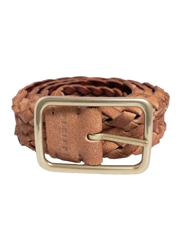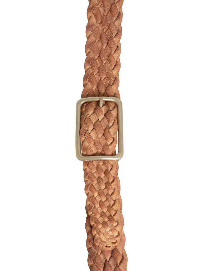 A woven leather belt with brass buckle in Cuoio suede leather.