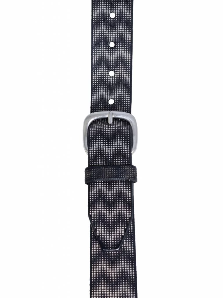 A textured leather belt with silver buckle and a chevron dot pattern in Nero black.