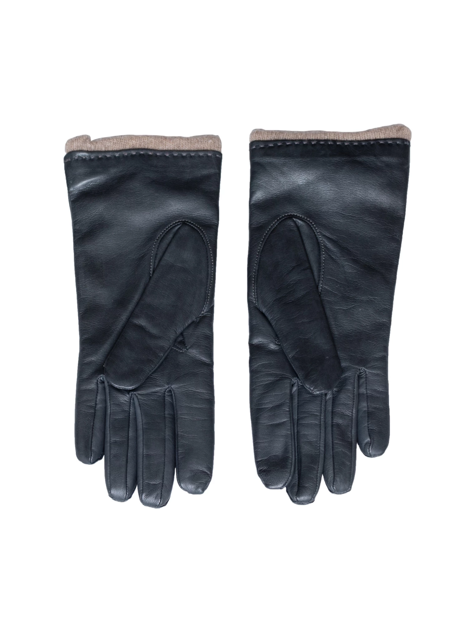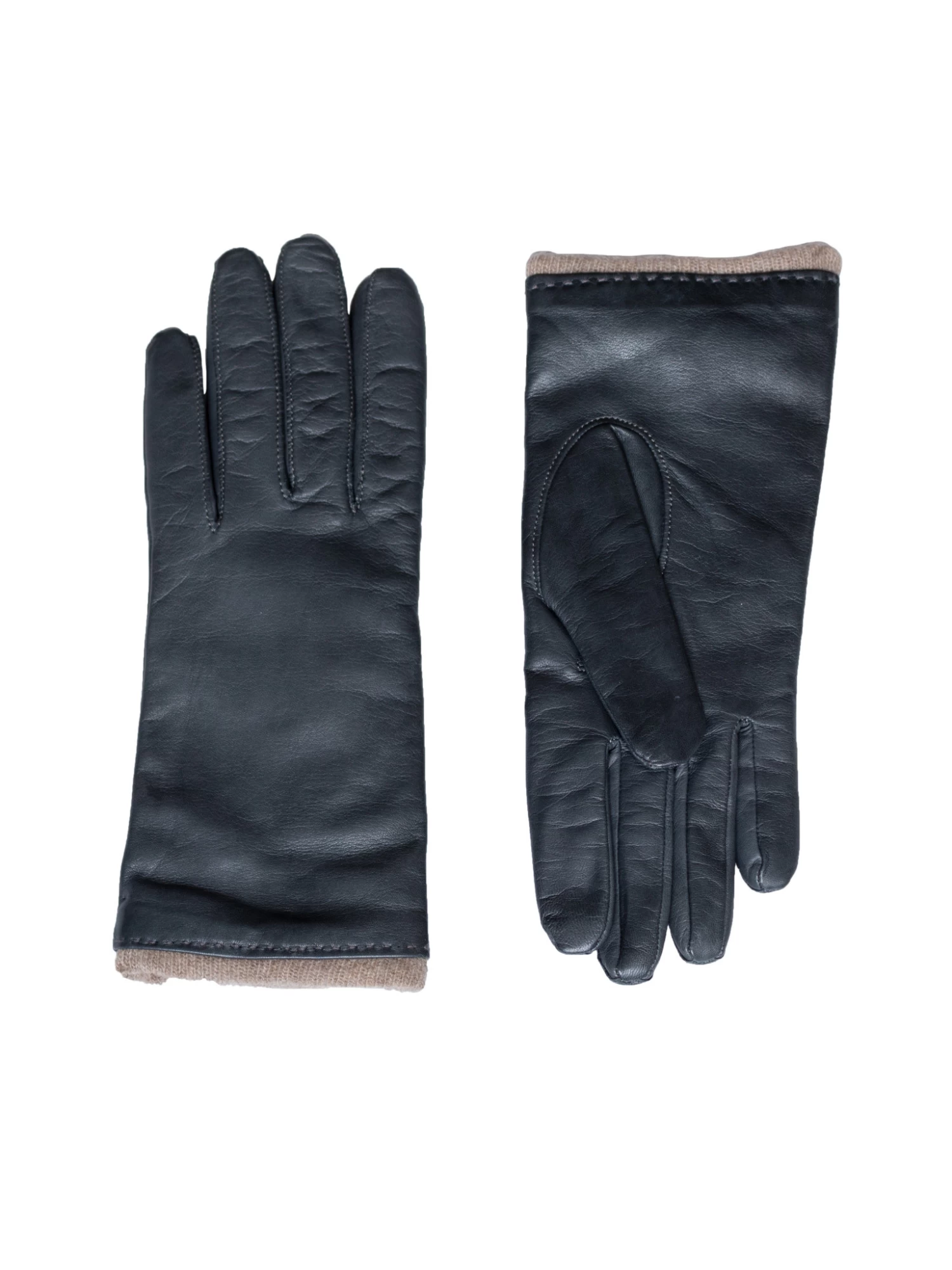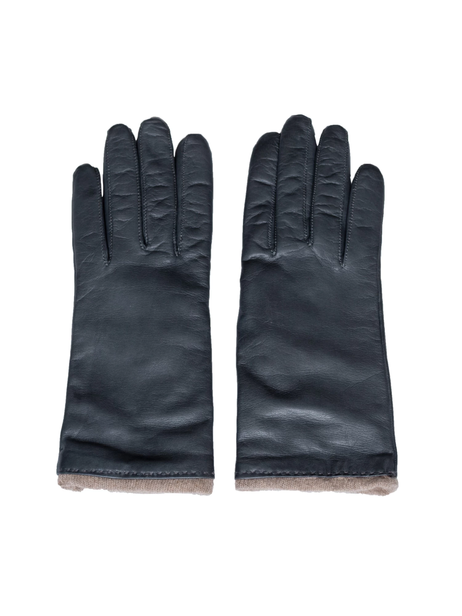 A pair of leather gloves in grey blue with a cashmere lining.