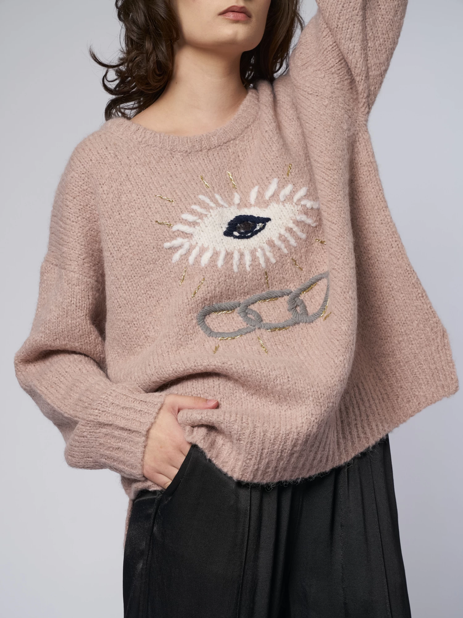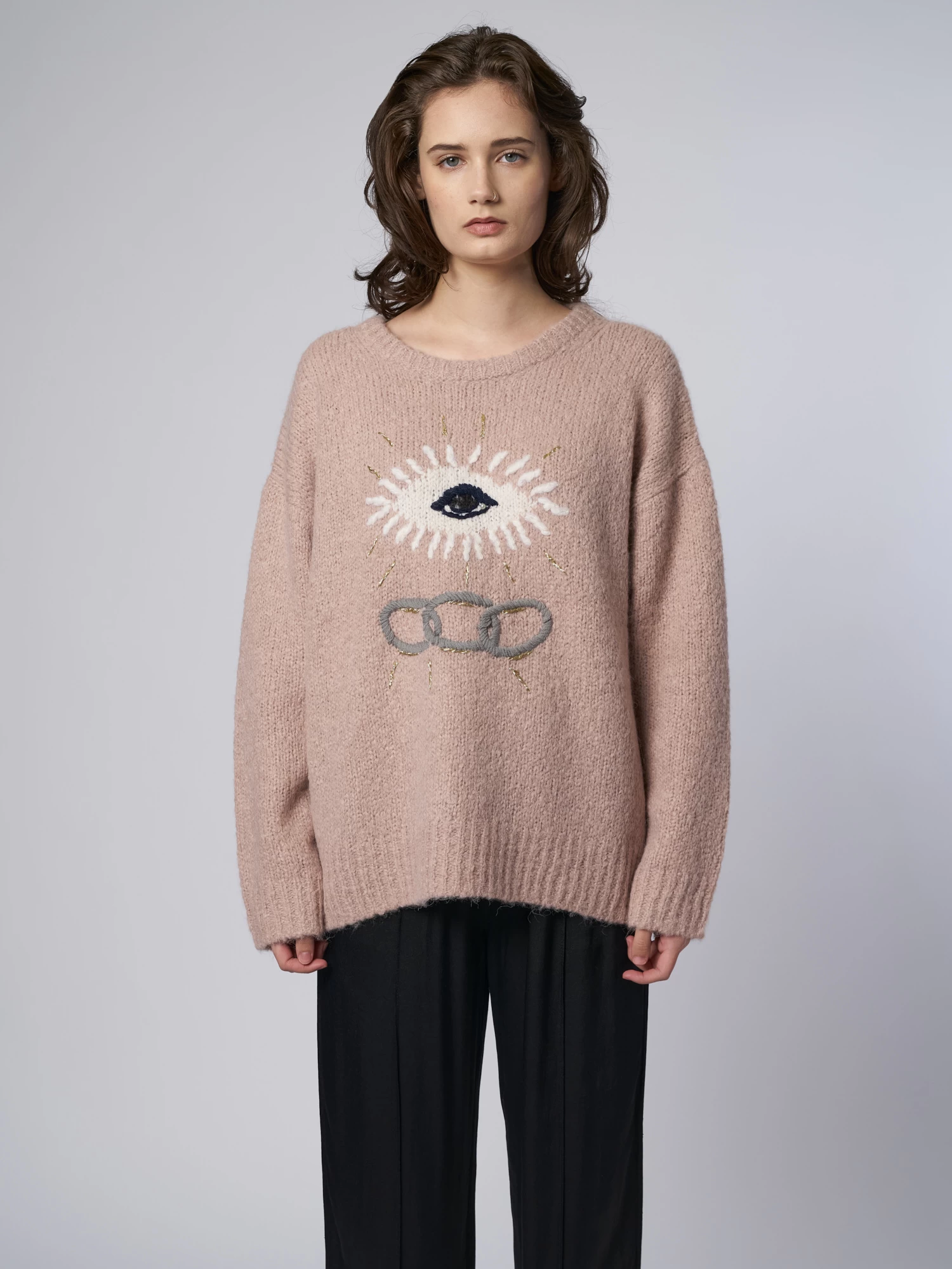 Alpaca blend sweater with bold graphic design references the Independent Order of Odd Fellows, whose chain-link insignia represents the core elements of the order’s motto: Friendship, love, and truth.