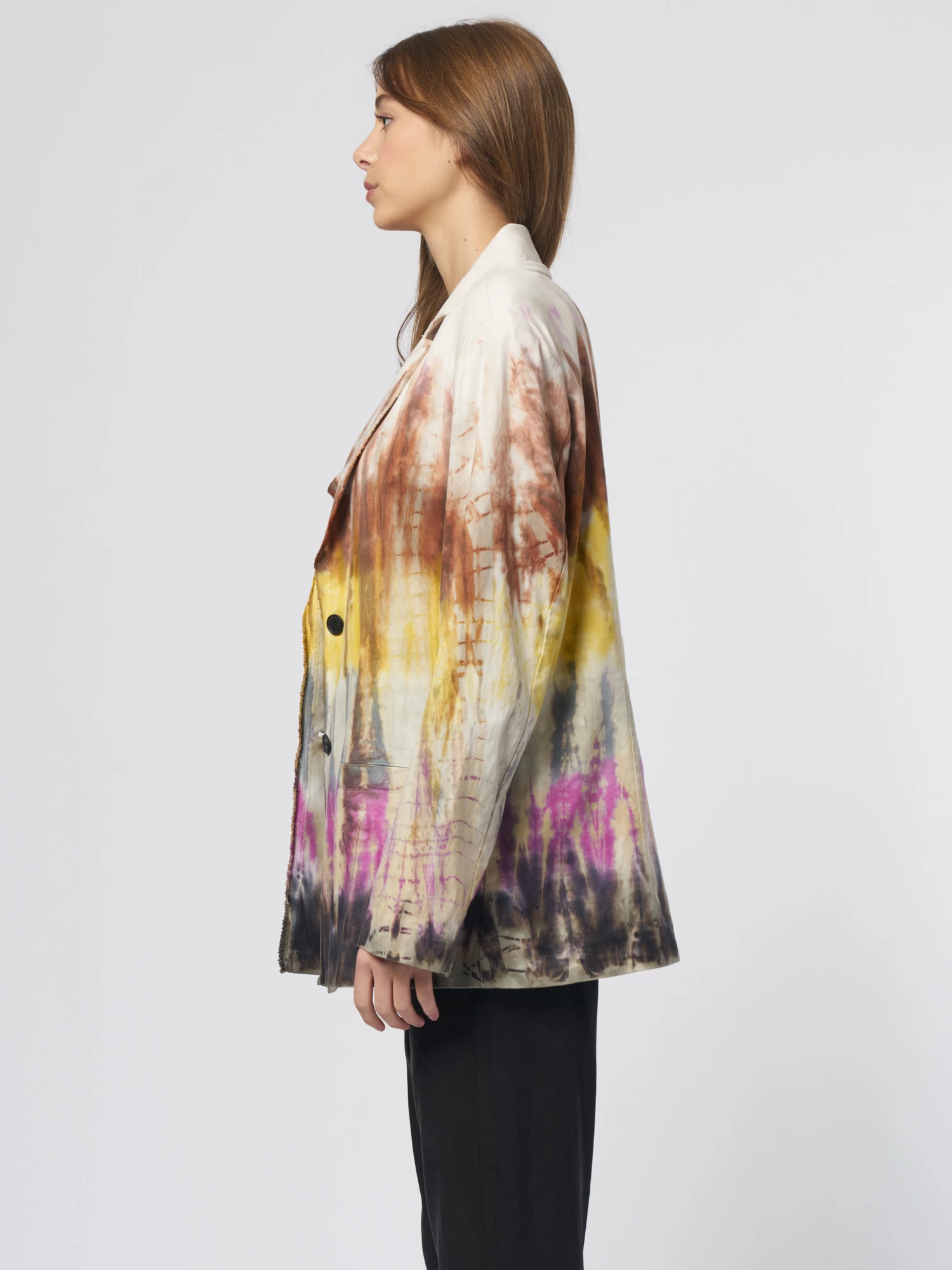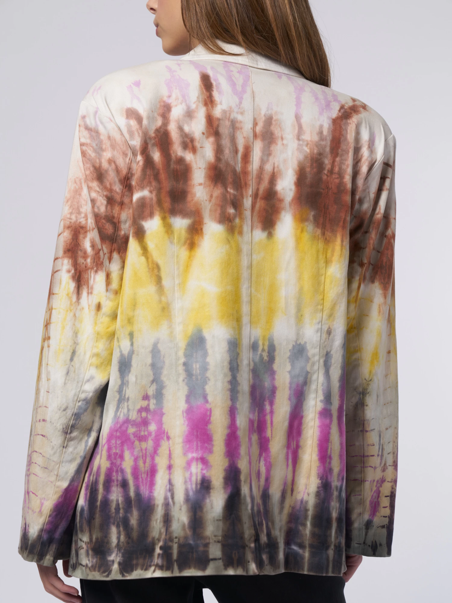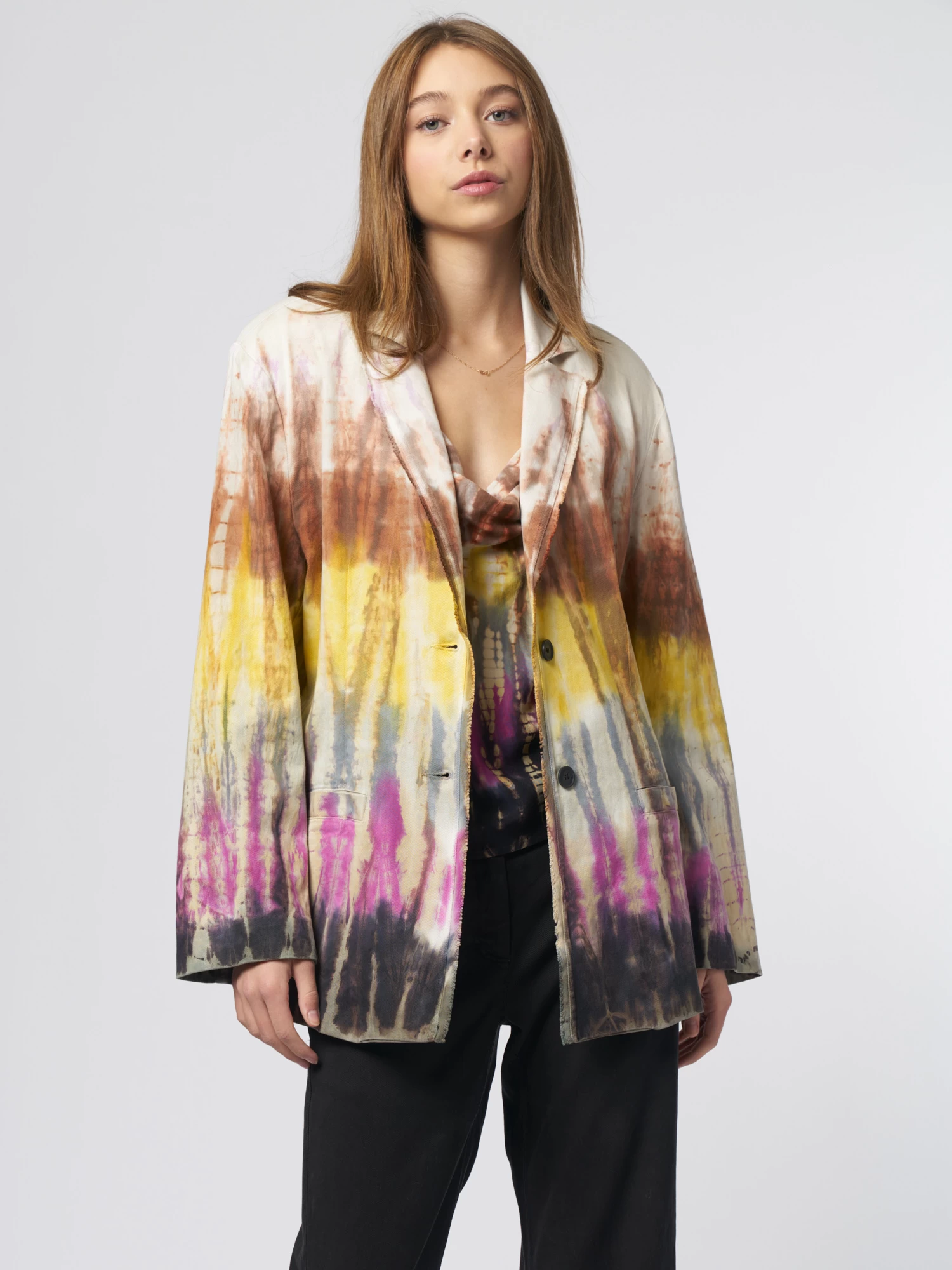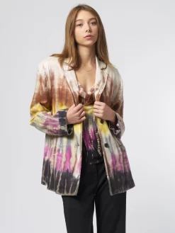 The twill-blend blazer in bright tie dye with two button closures