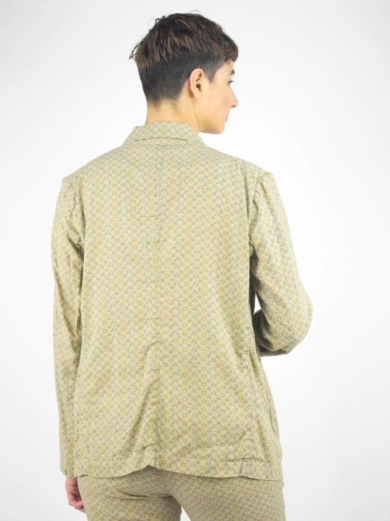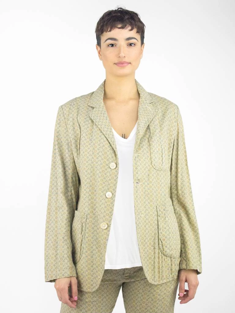 Long sleeve tailored-fit mid-weight cotton blazer with front breast pocket, two front patch pockets, button front closure, and mosaic print throughout.