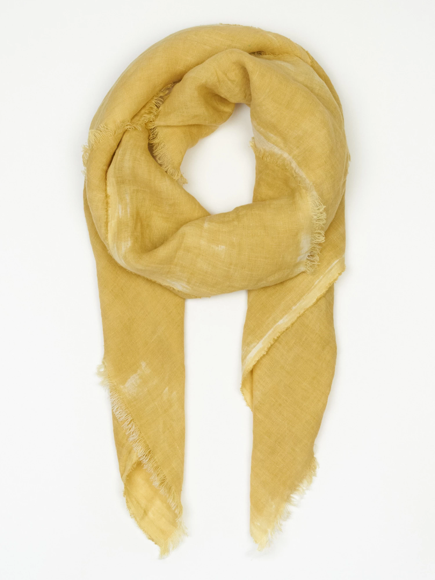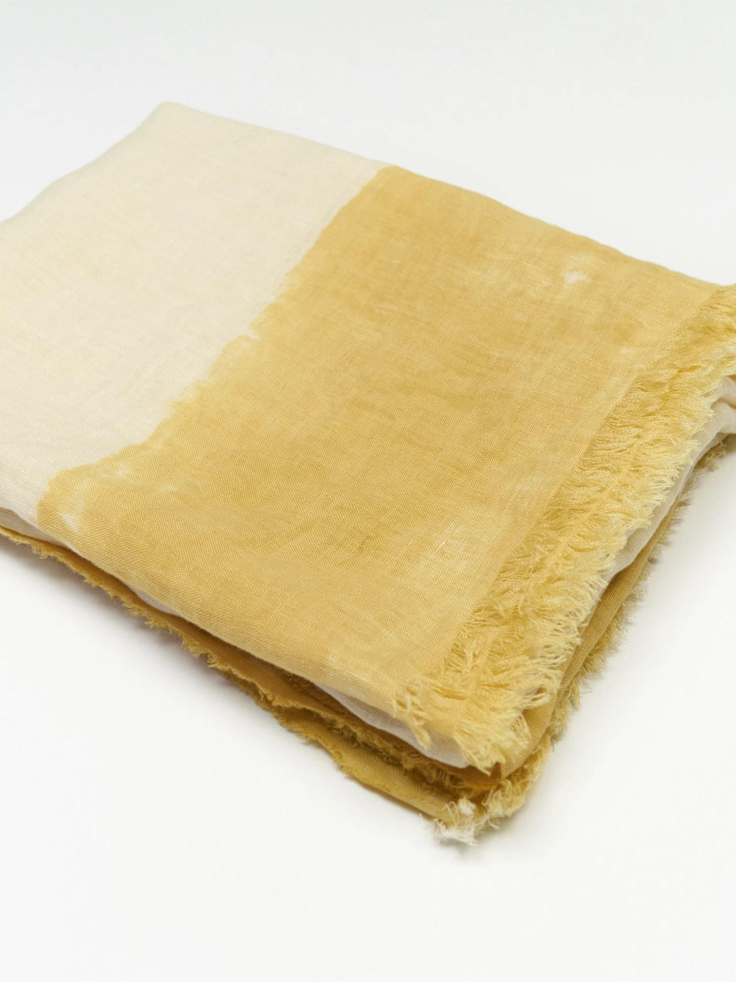 Very light linen scarf with hand-painted design with fringe edges.
