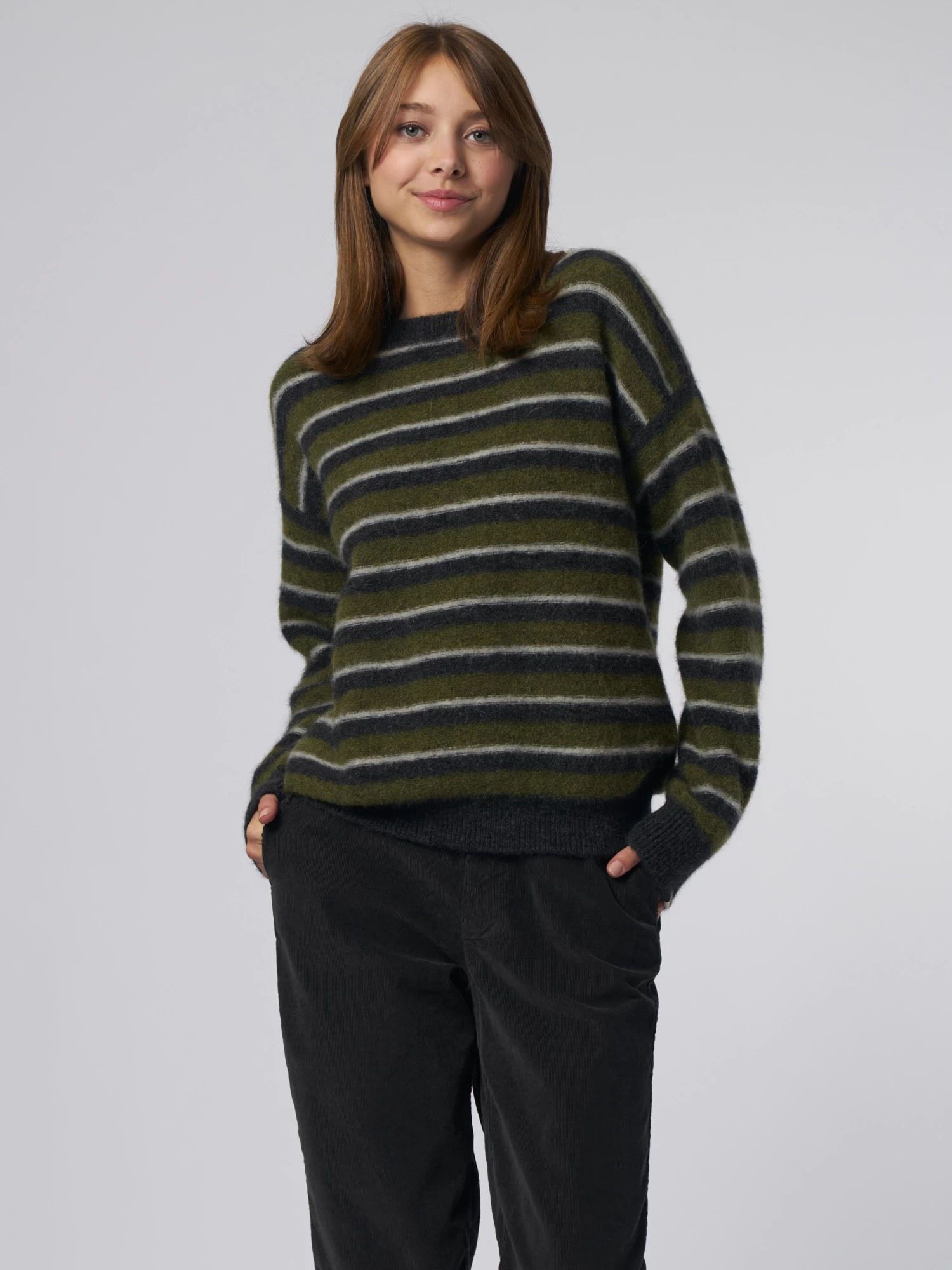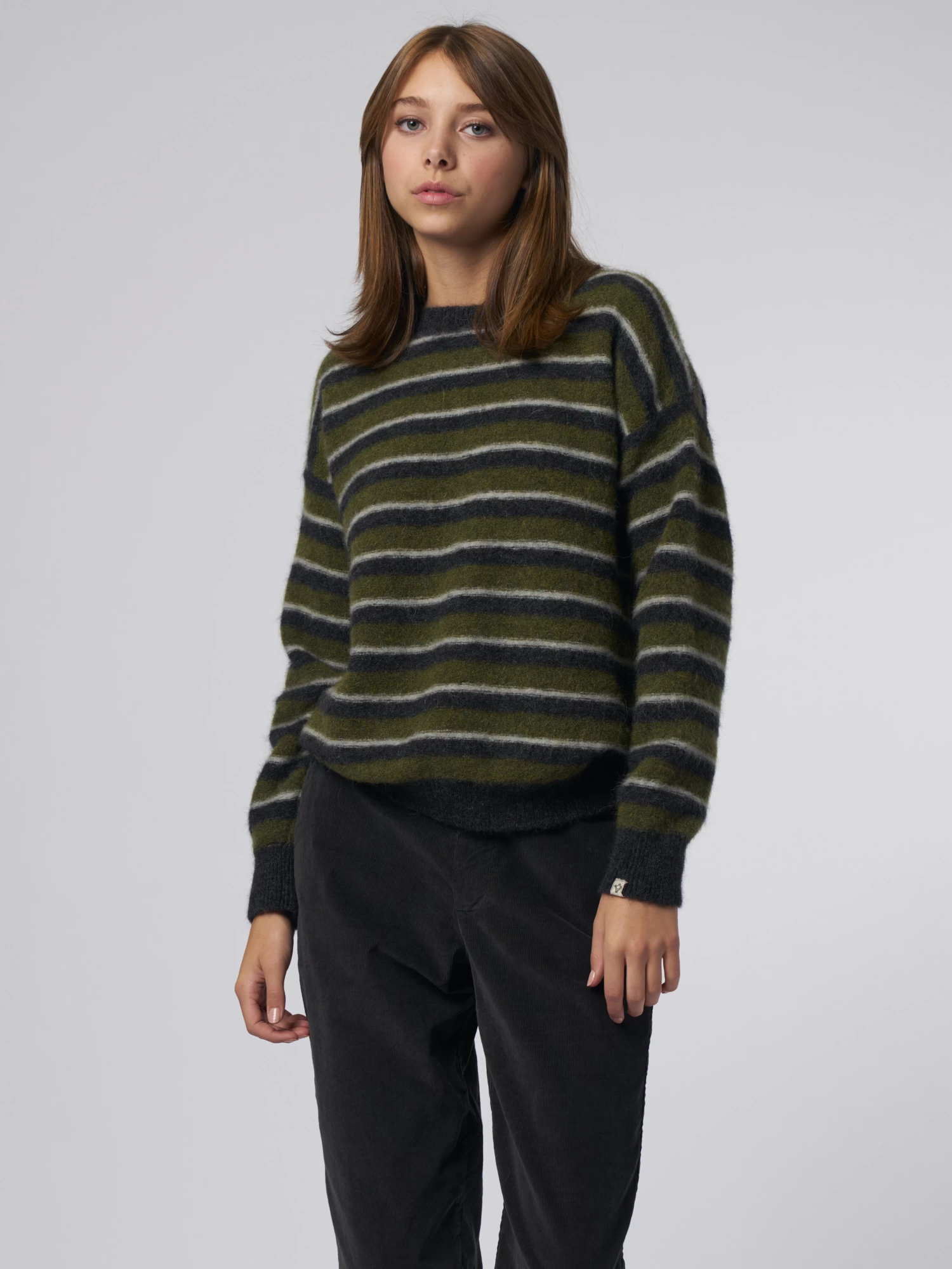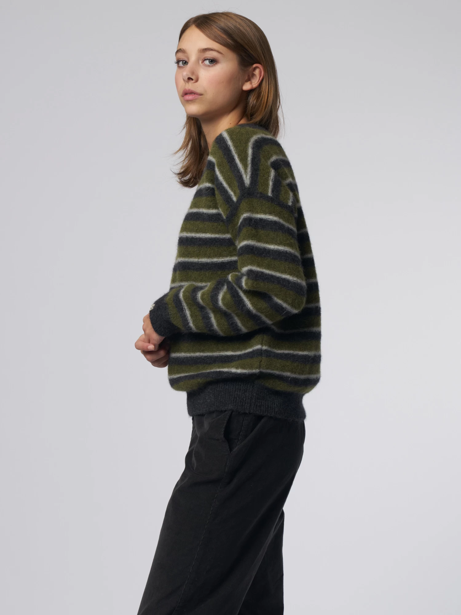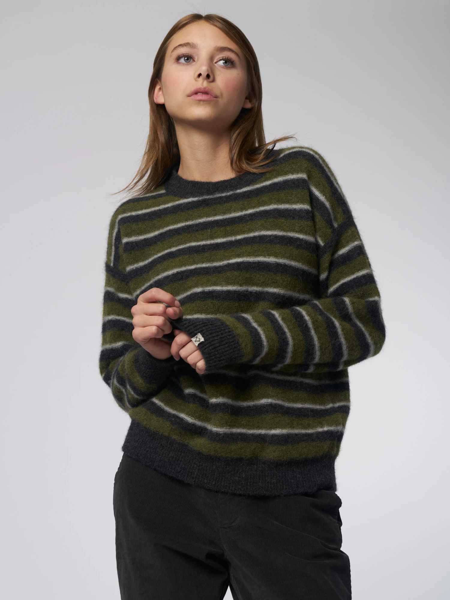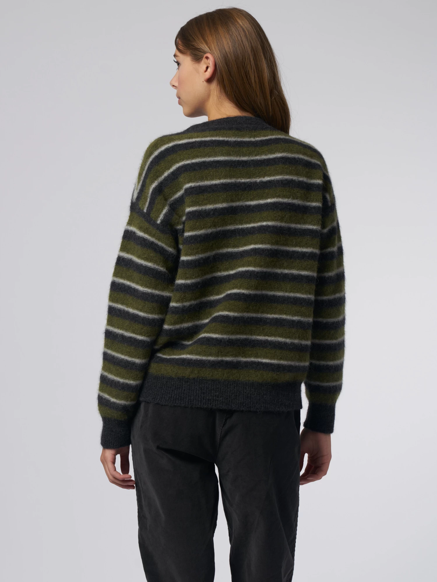 Very soft wool sweater in multi colors stipe with drop shoulder sleeves