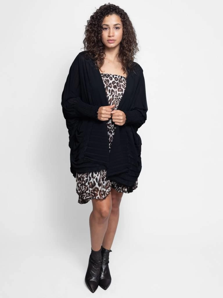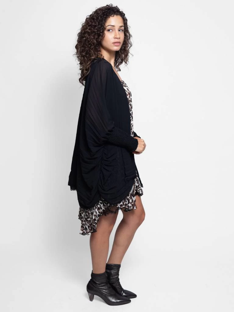 A romantically draped wrap with pleated details and light metallic flecks throughout.