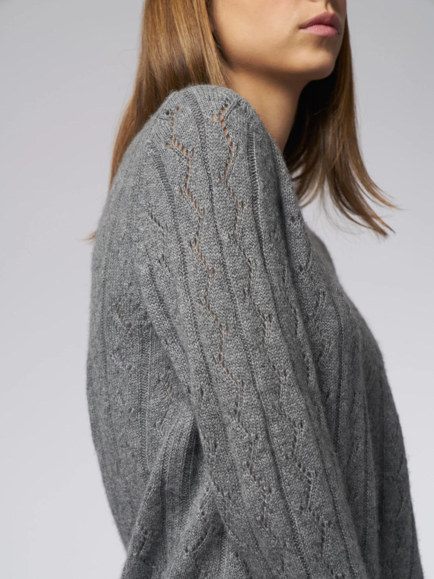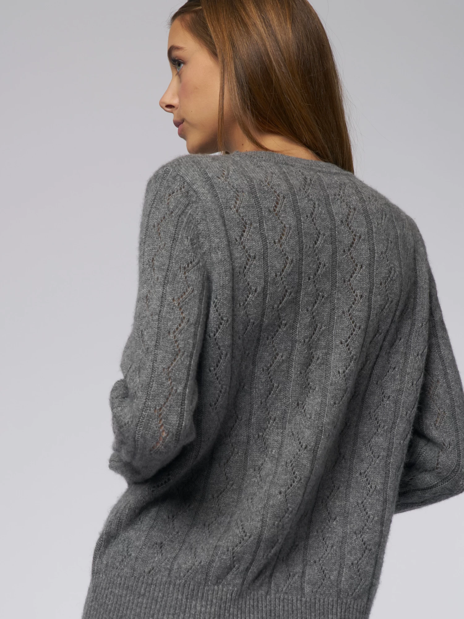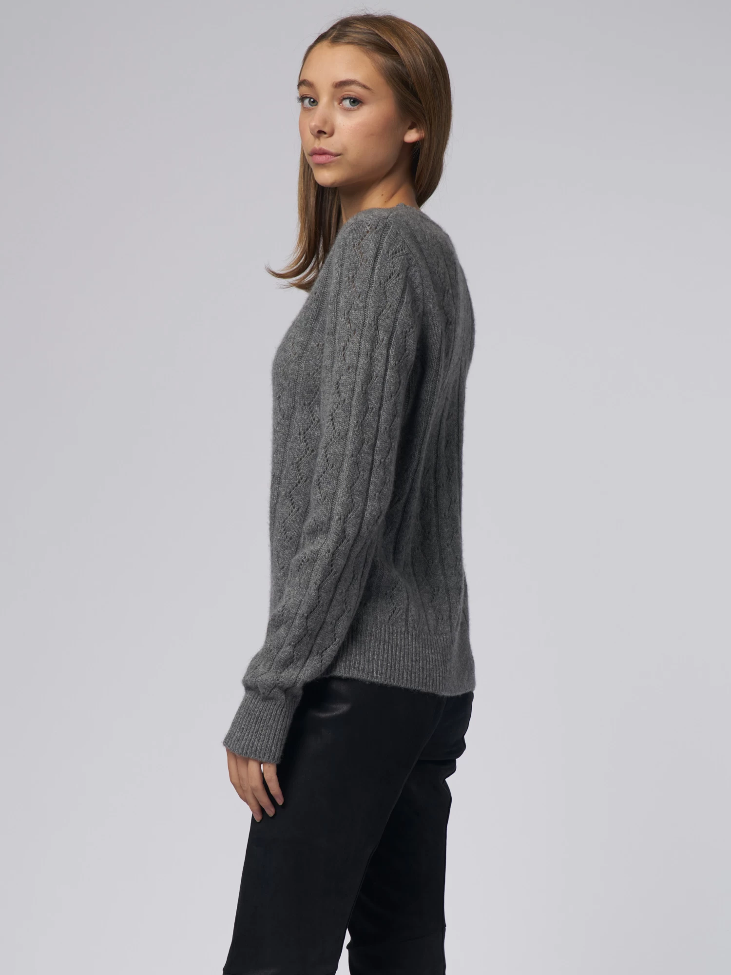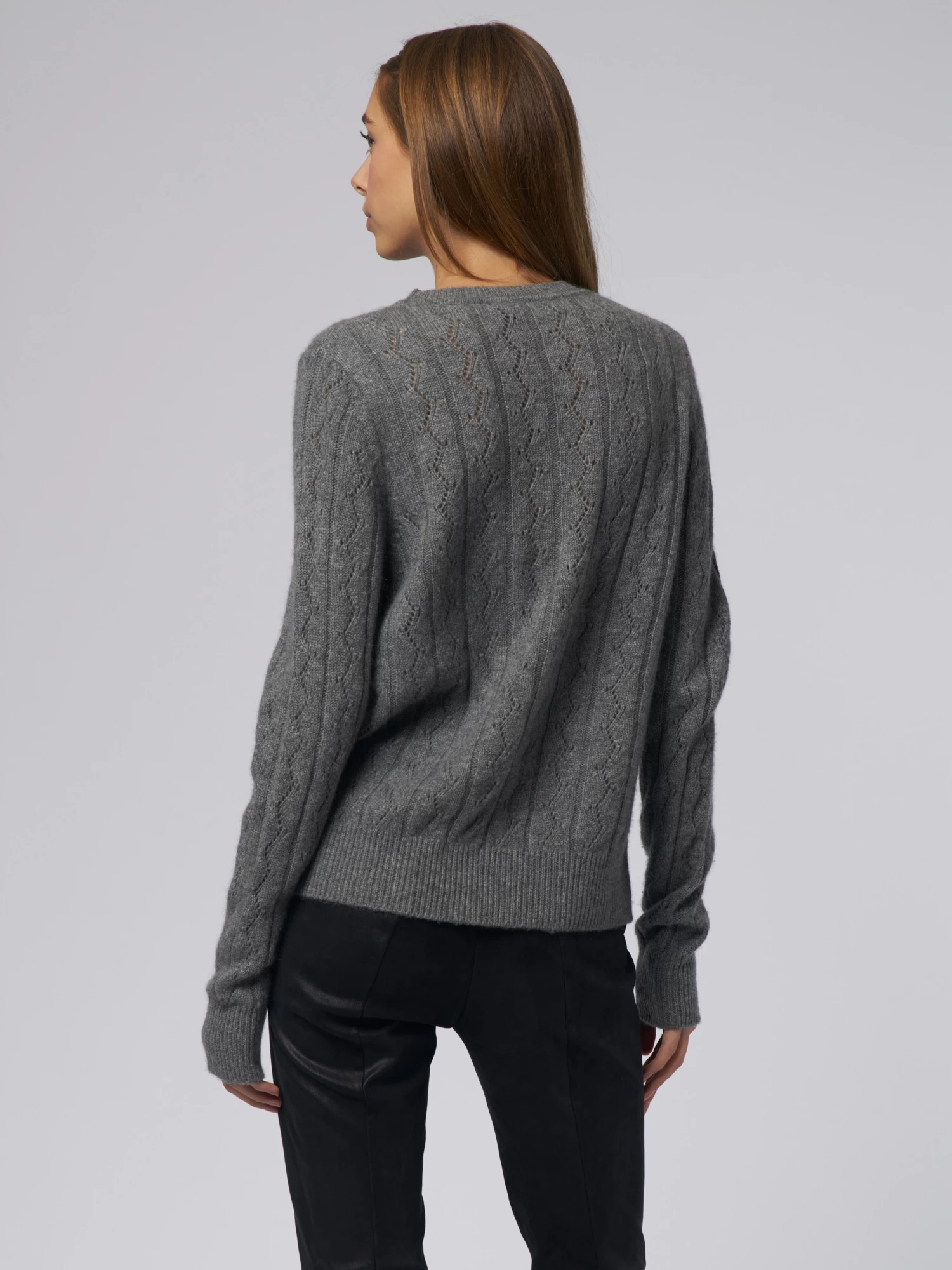 Pointelle Stitch Crew Med Grey