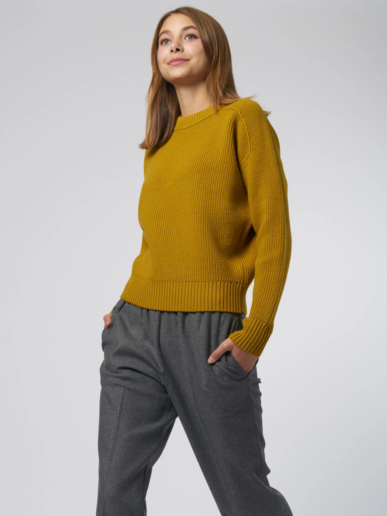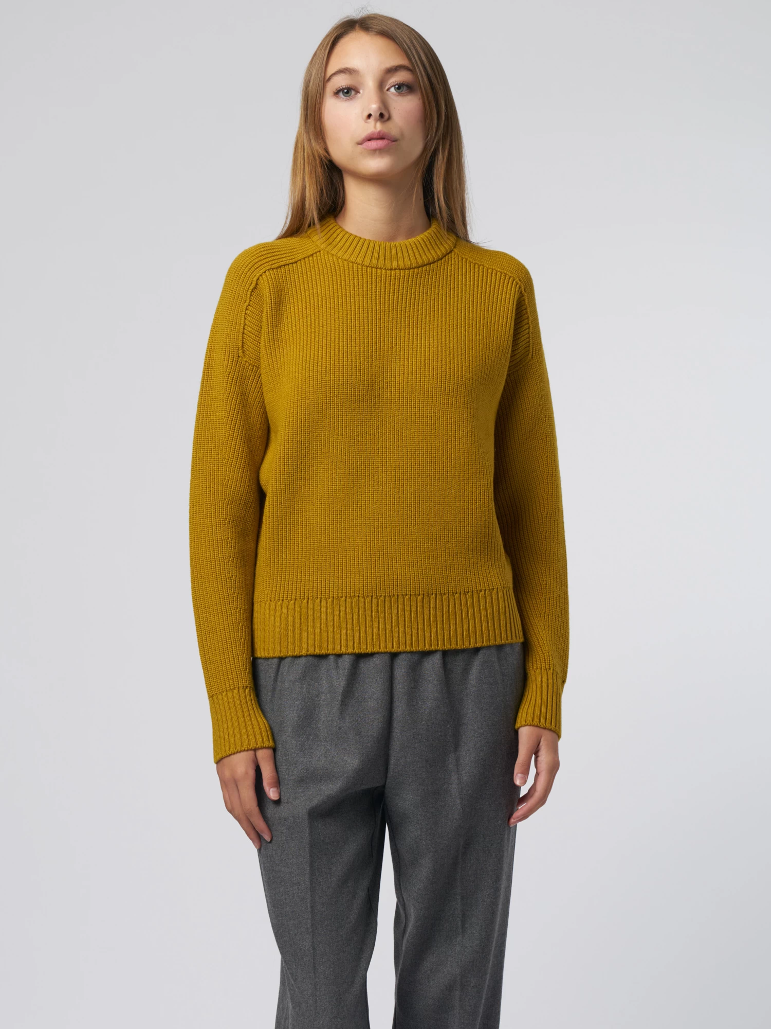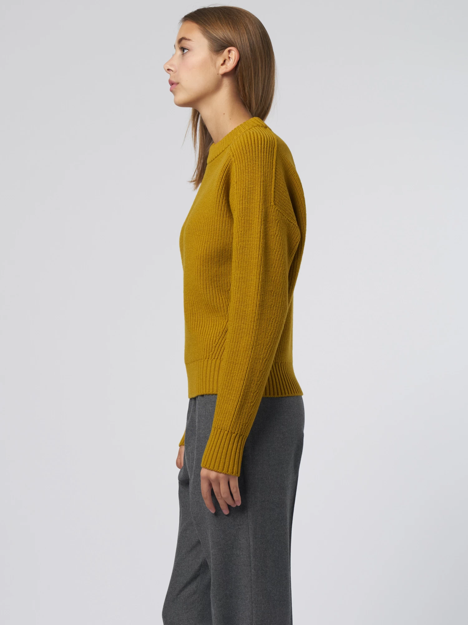 English rib crewneck in wool has raglan sleeves with a regular fit.