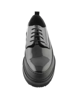 A thick criss-cross strap with a solid wood platform and covered heel.