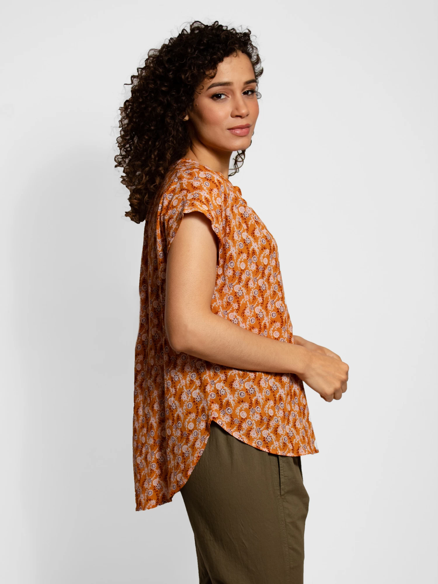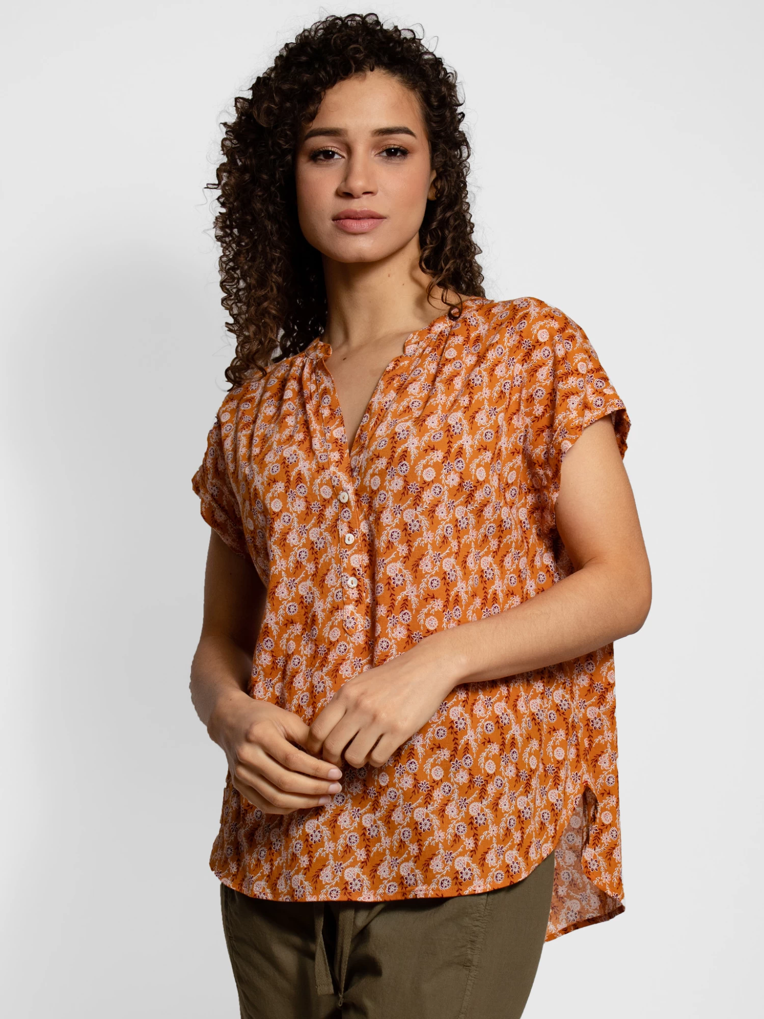 An easy fit and short sleeve Henley in Laurel printed gauze.