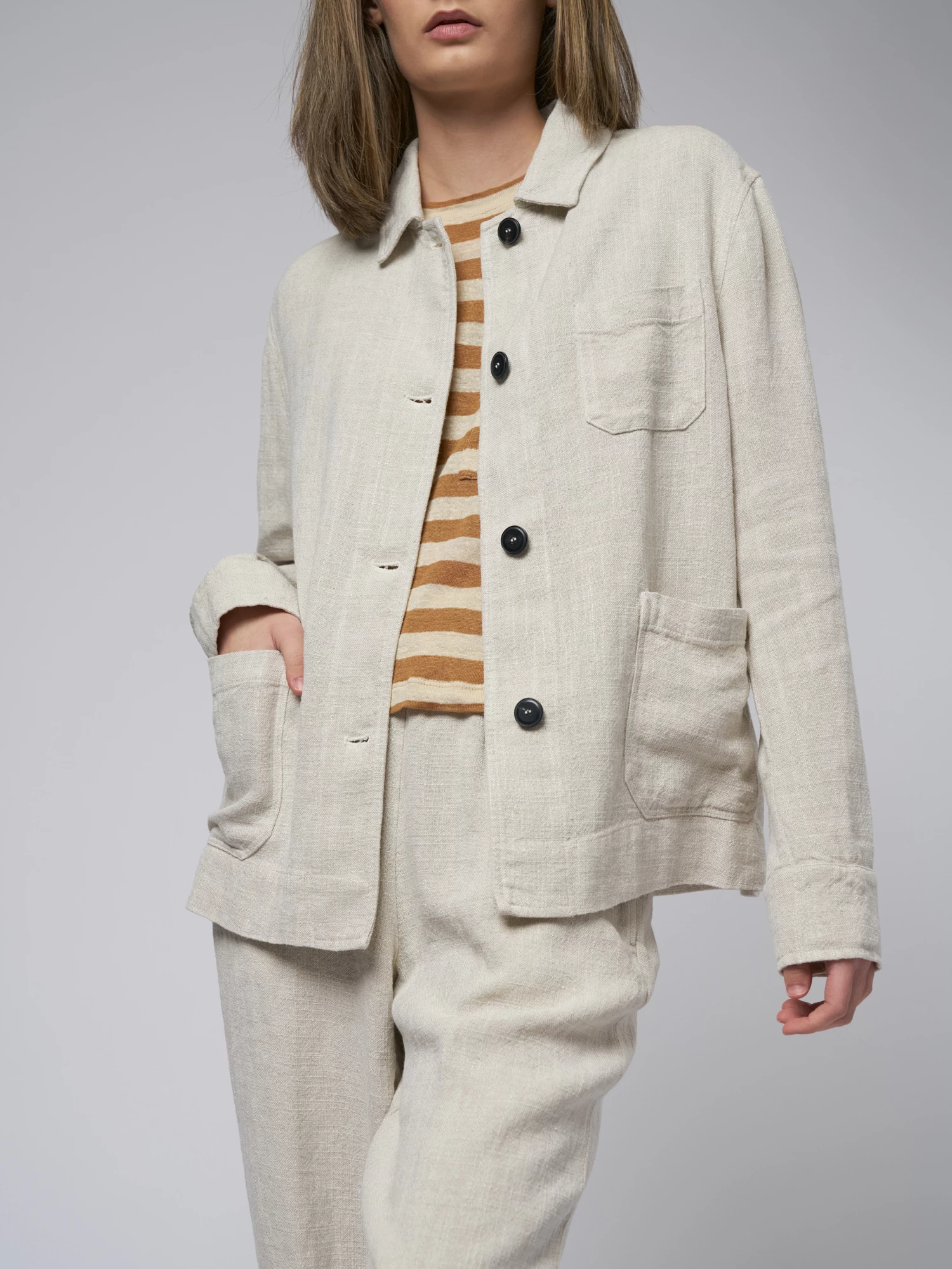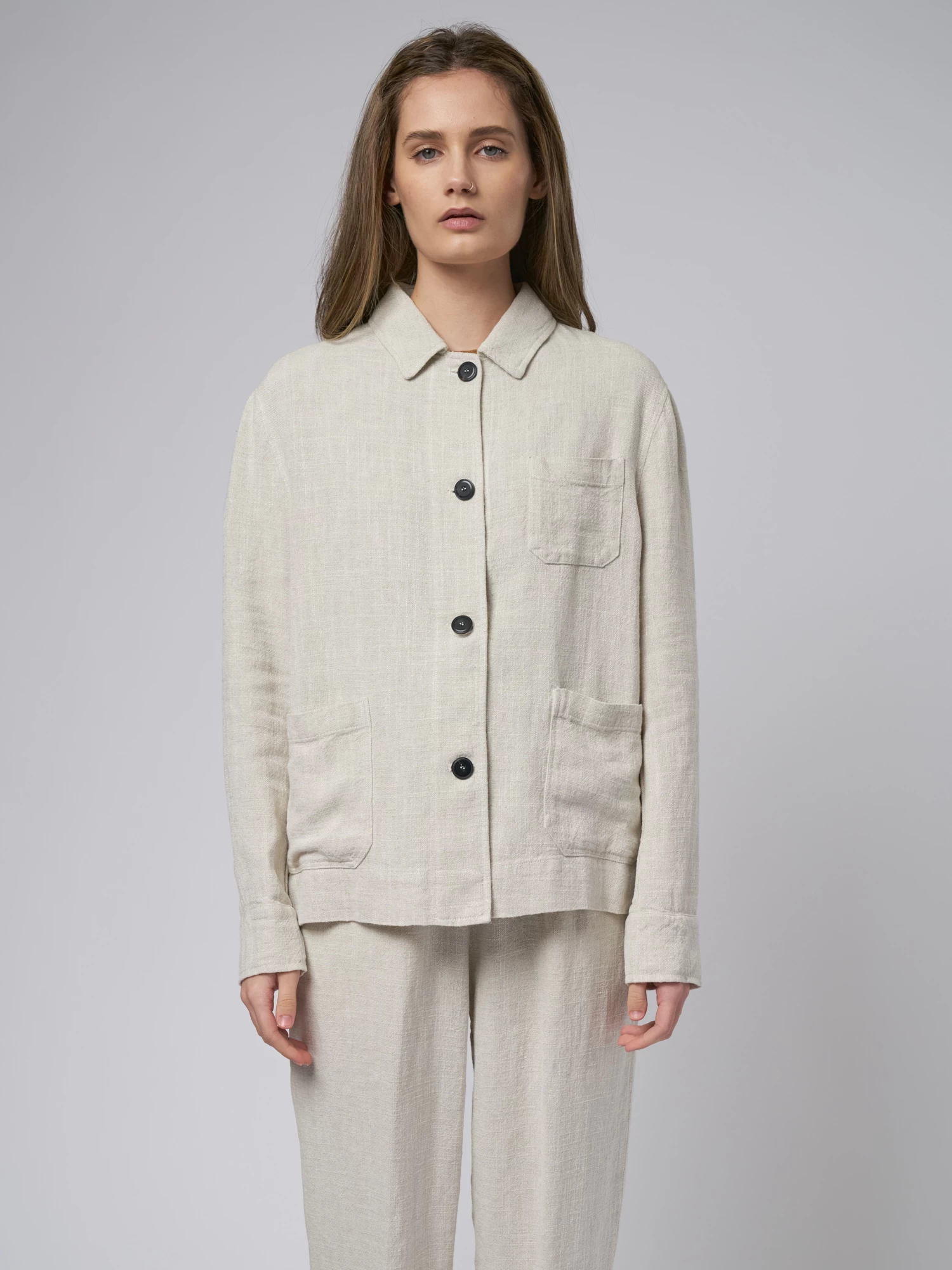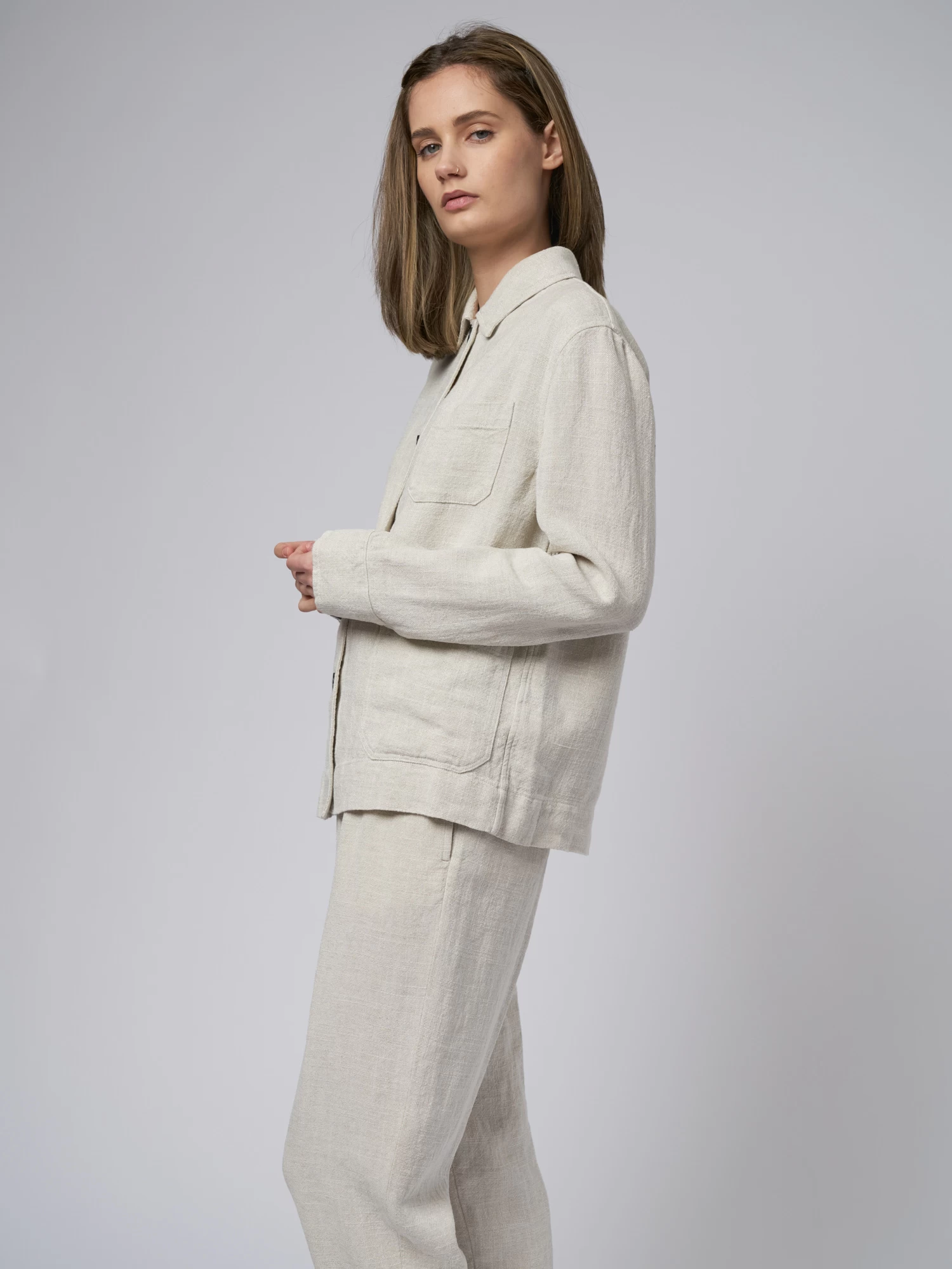 A slightly boxy shirt jacket with three pockets wears its own layer.