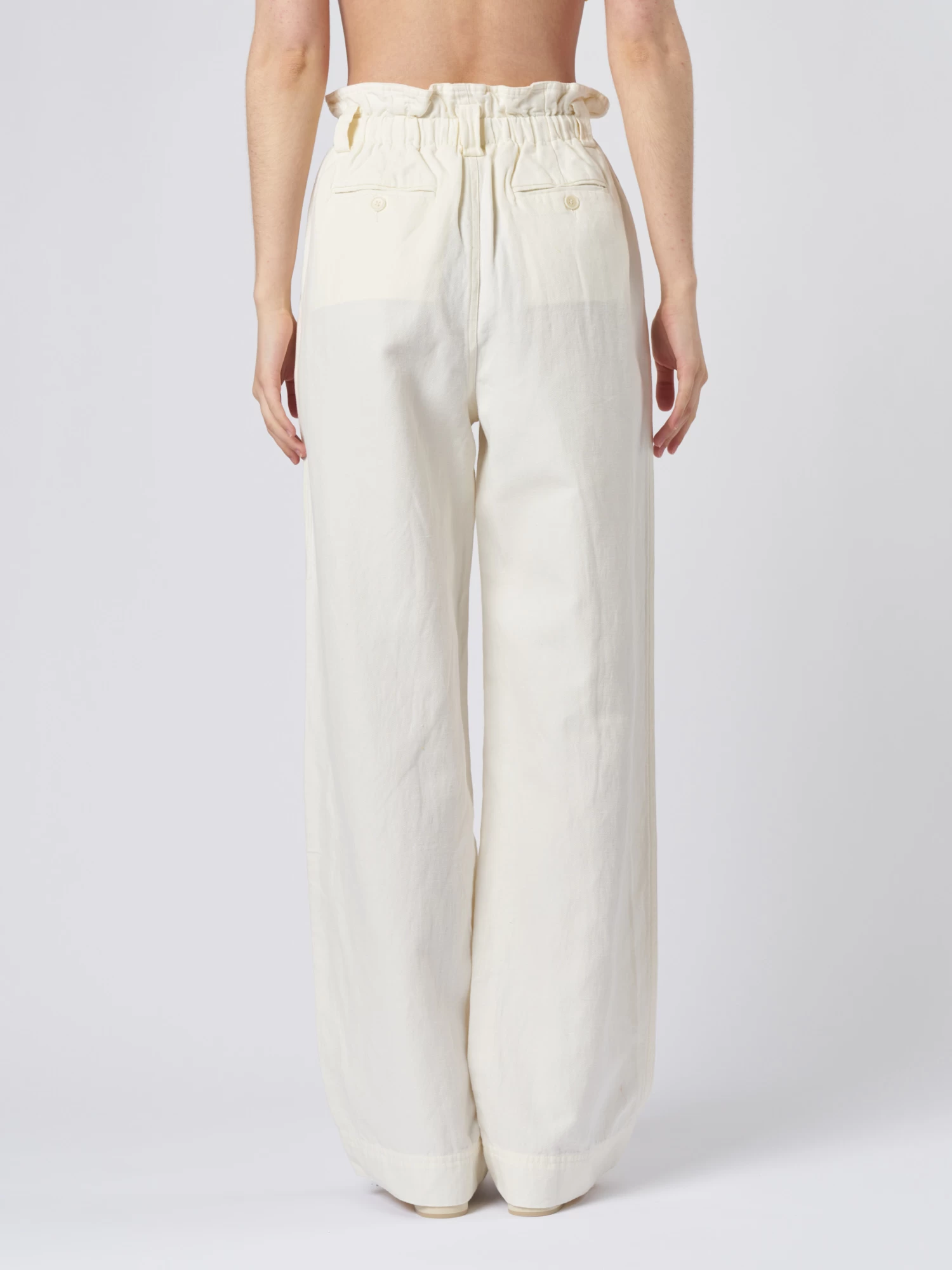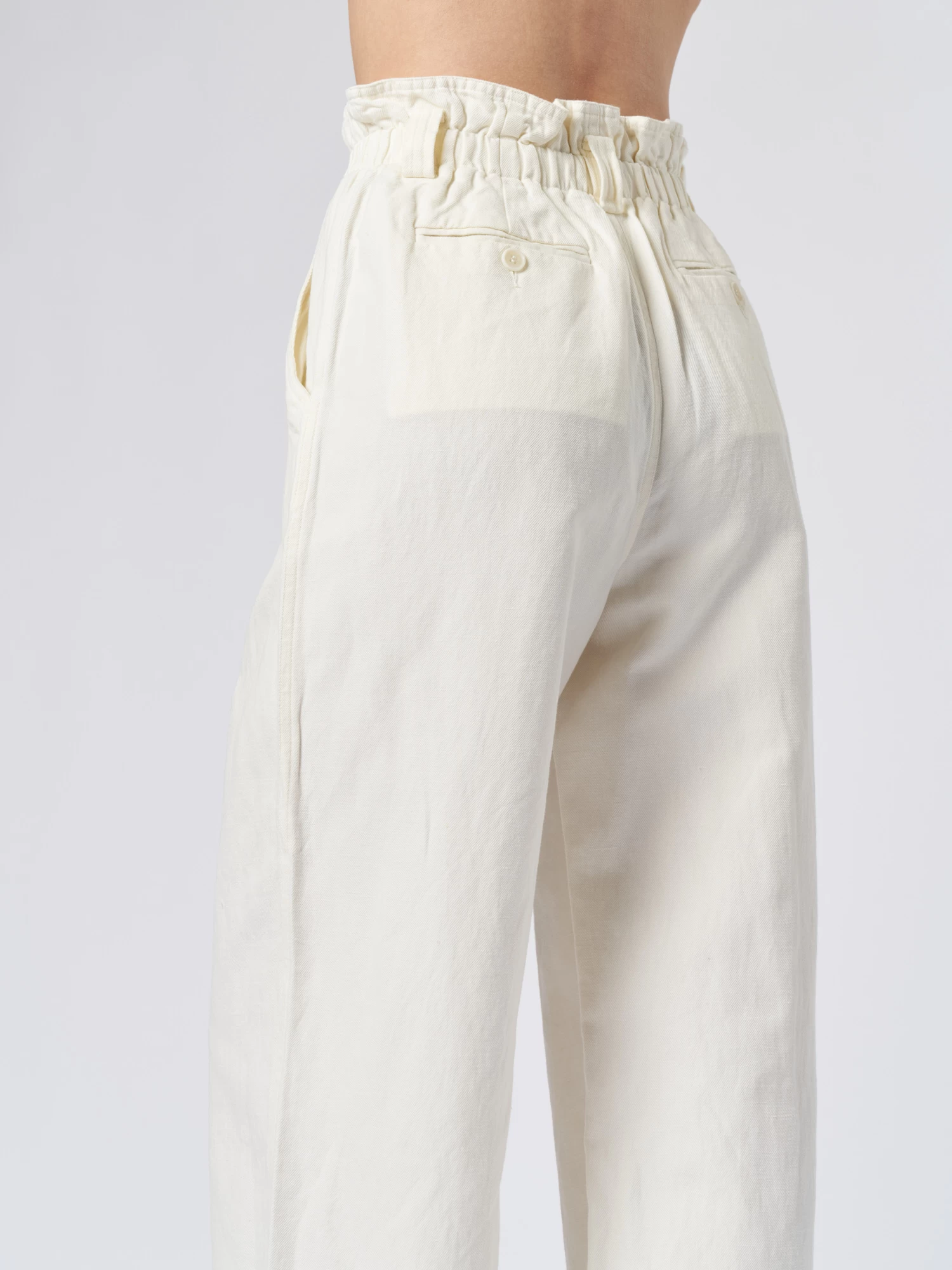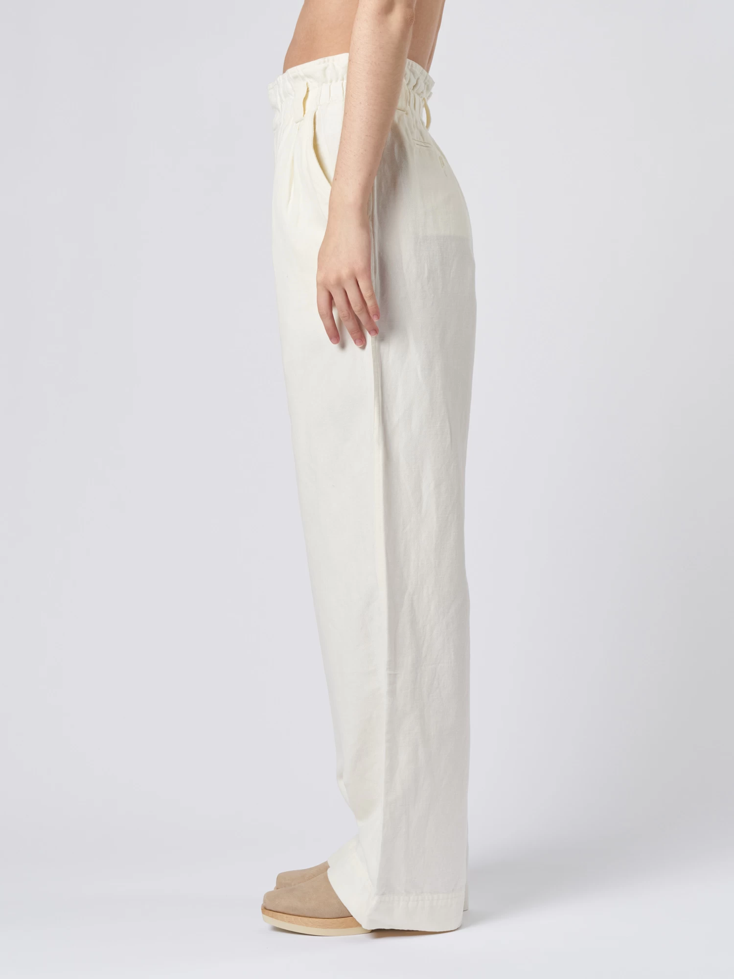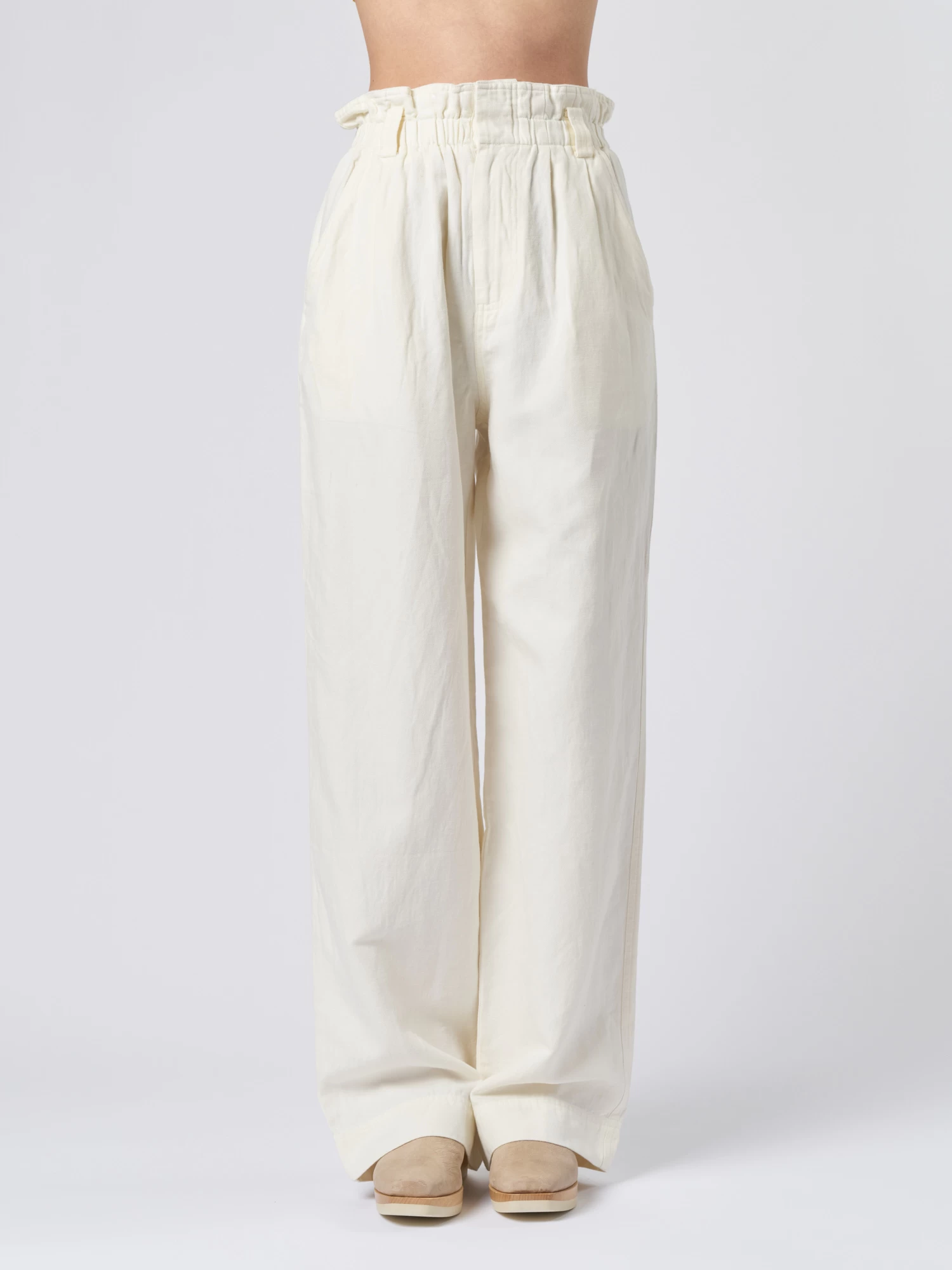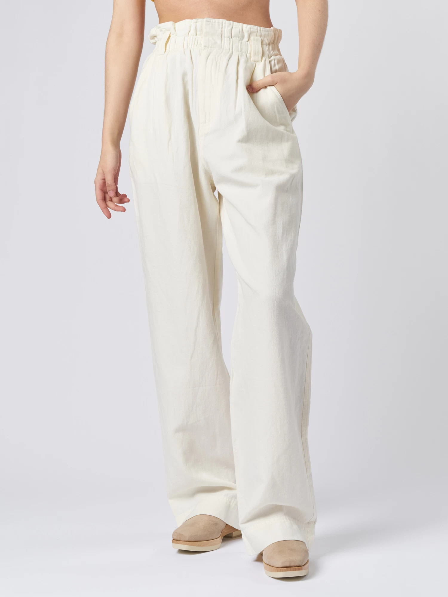 Easy fit with an elastic waist, side pockets, and a wide leg.