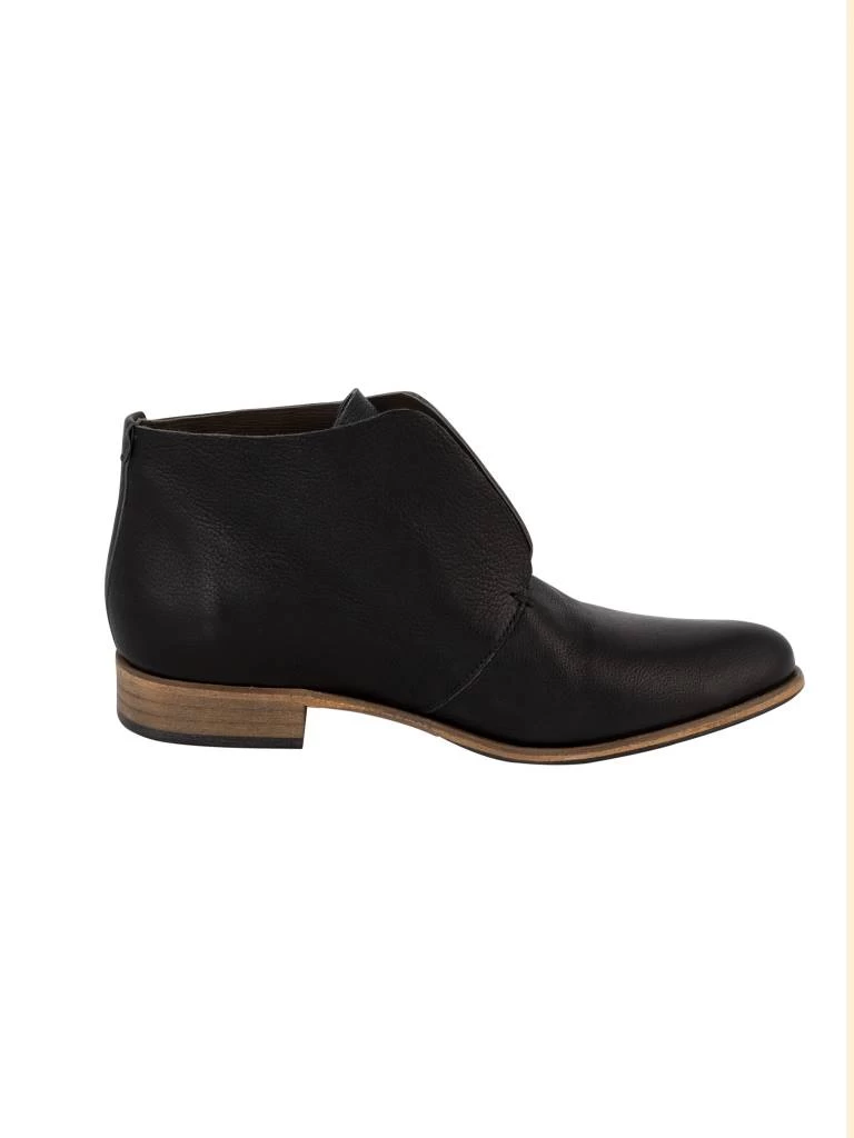A casual bootie with a raw edge detail and menswear aesthetic.
