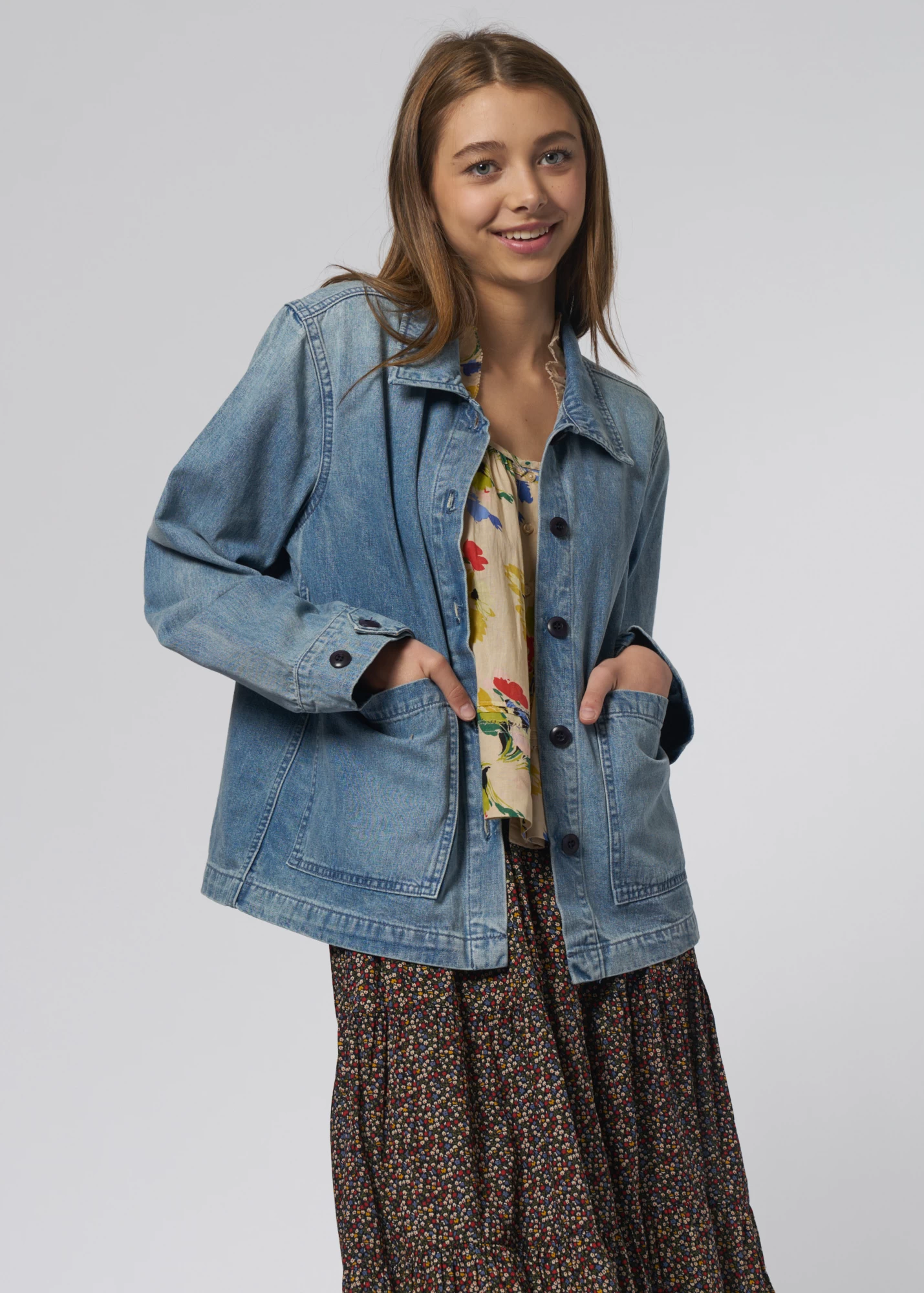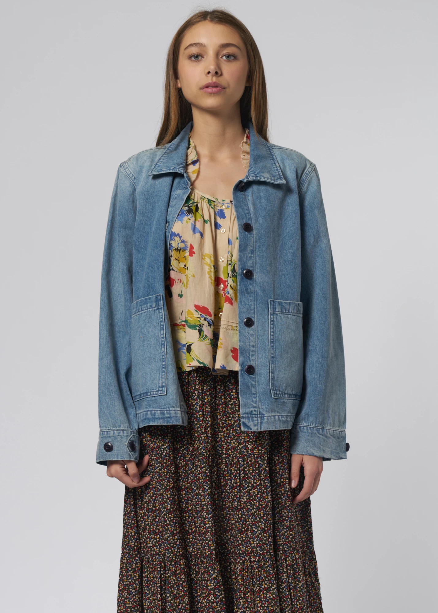 Vintage-inspired workwear details include oversized patch pockets, Corozo buttons, double-needle stitching, and the perfect vintage wash.