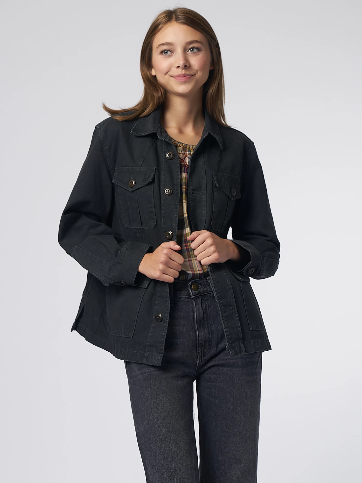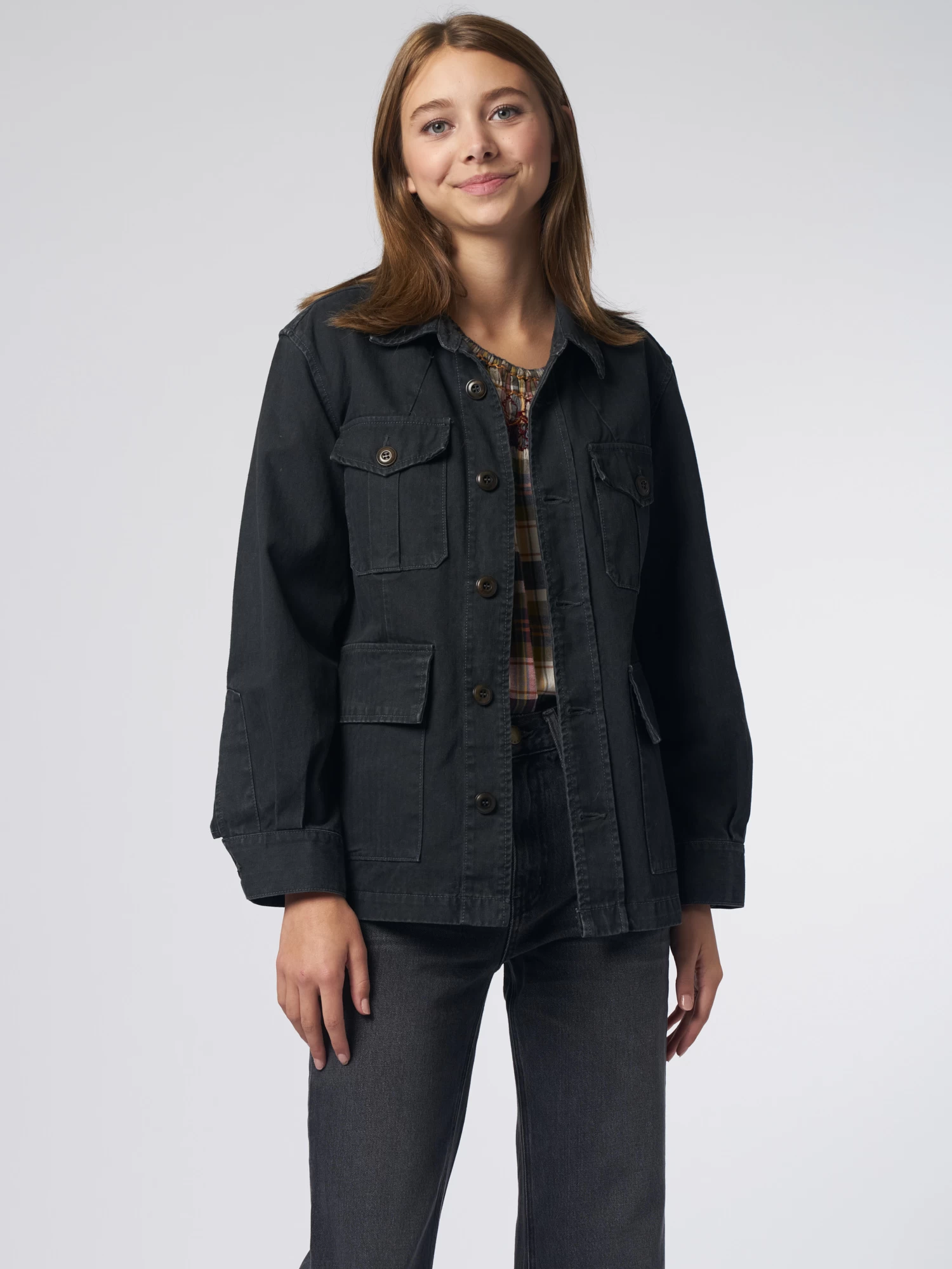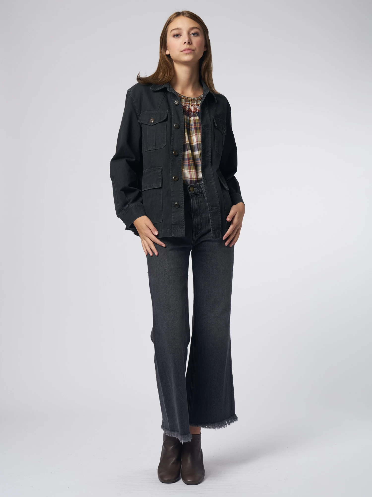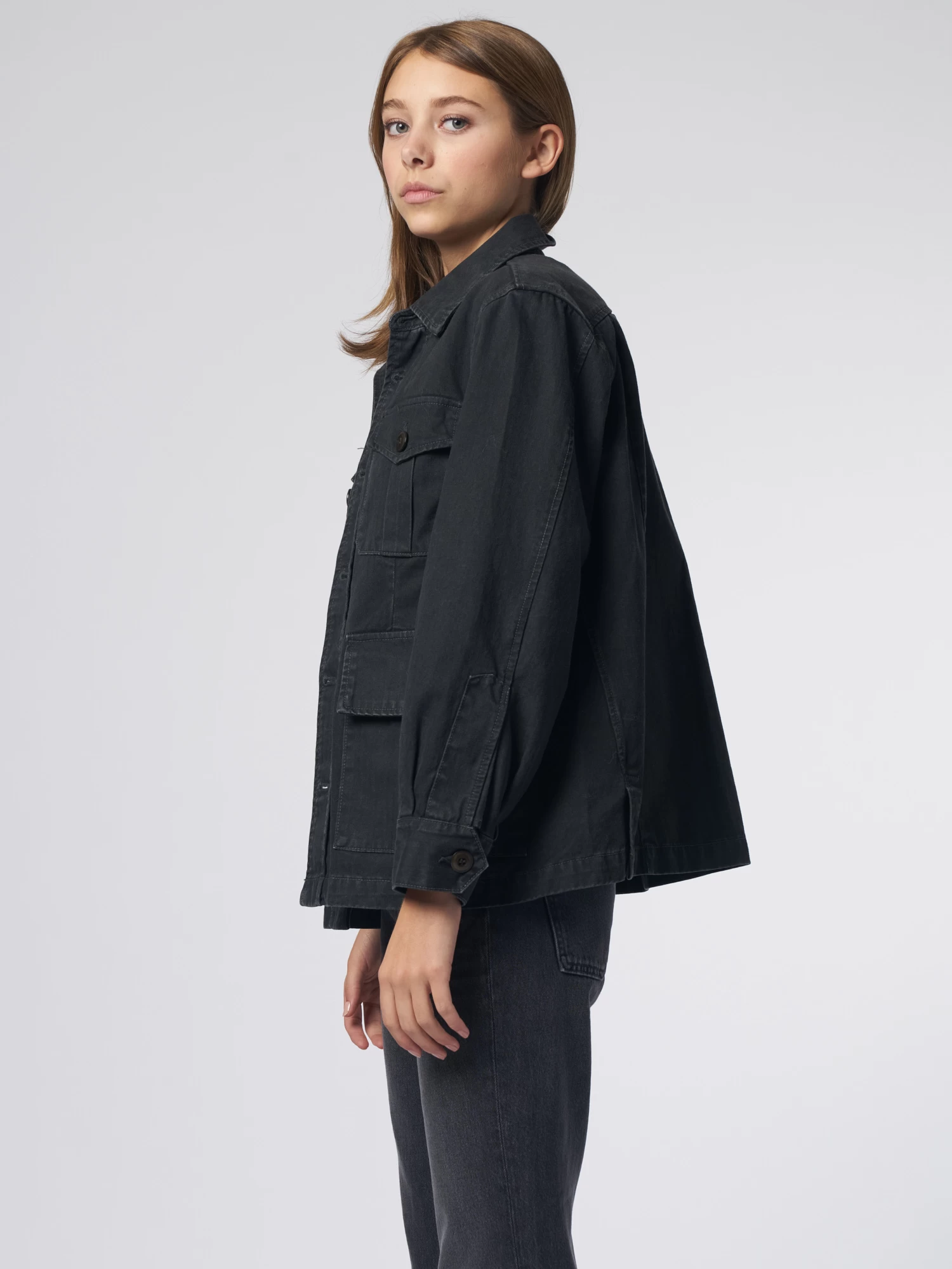 The easy and boxy jacket has darts at the front body, and crisp pleats at the back thoughtfully tie the staple piece together.