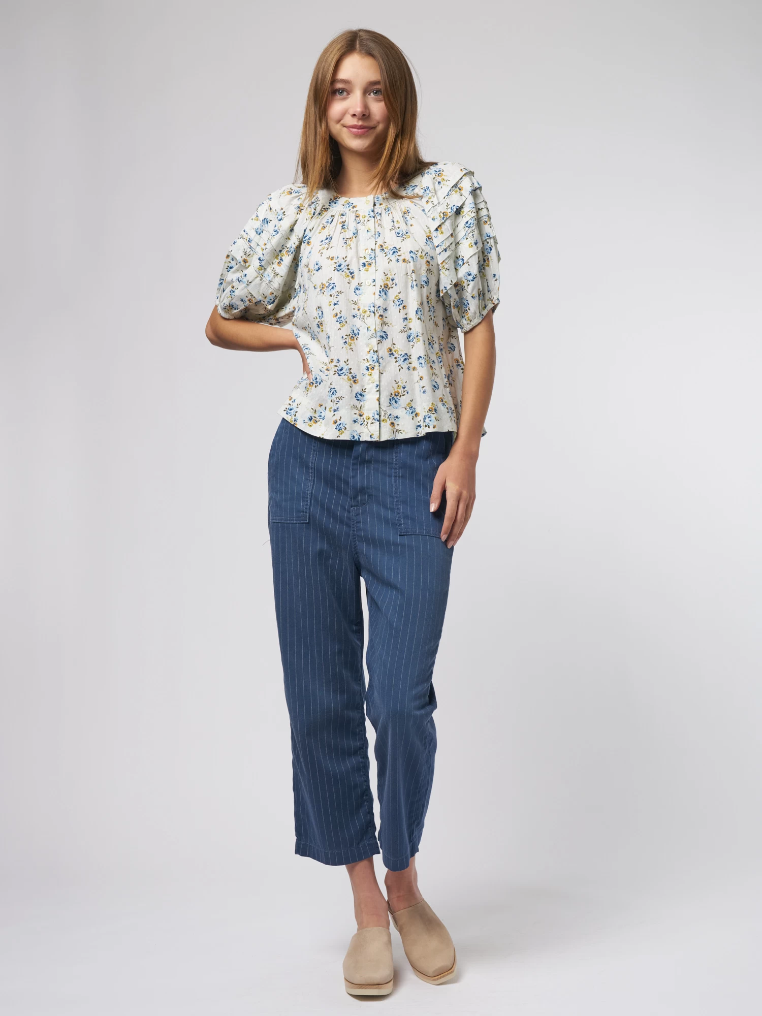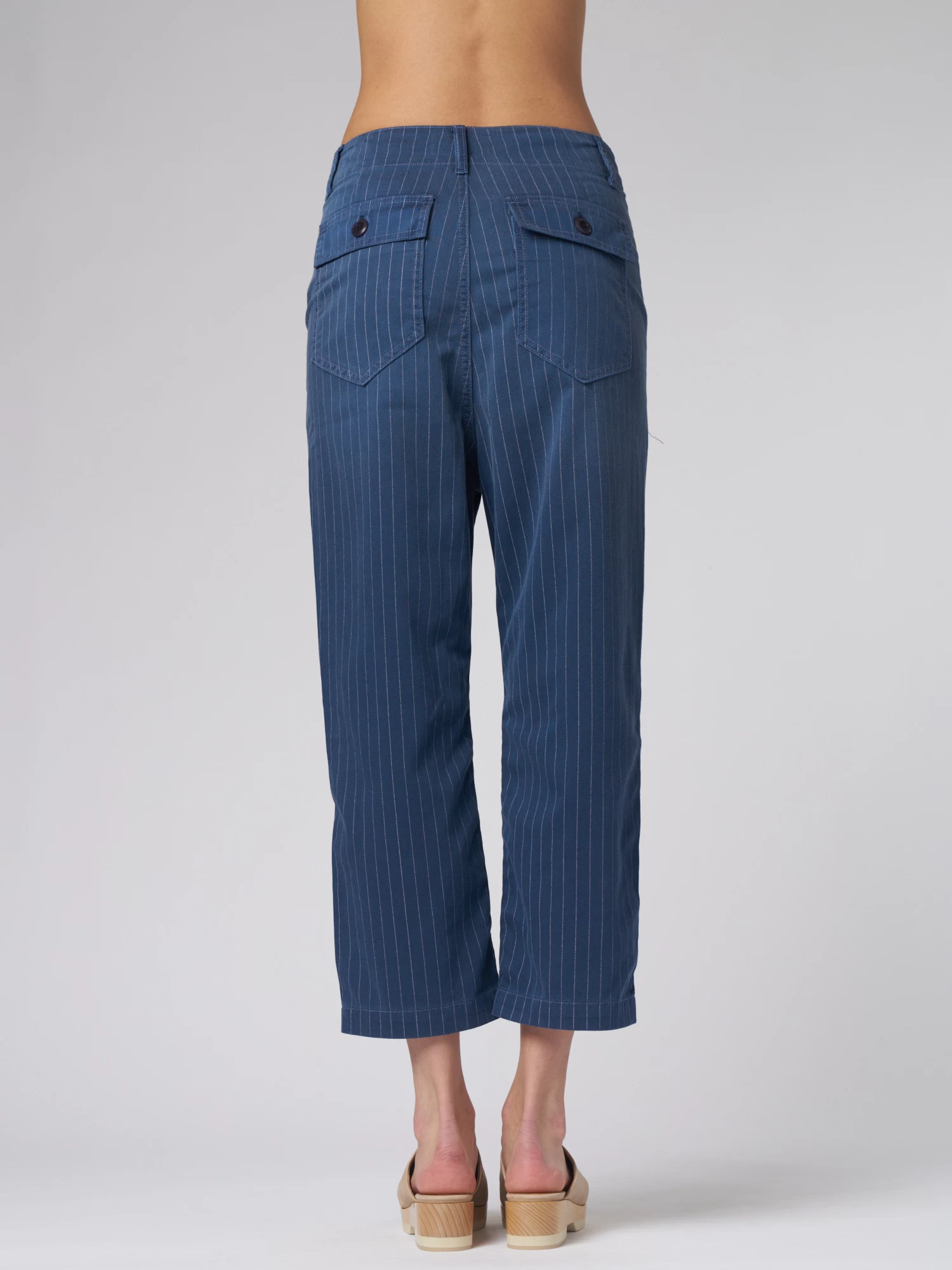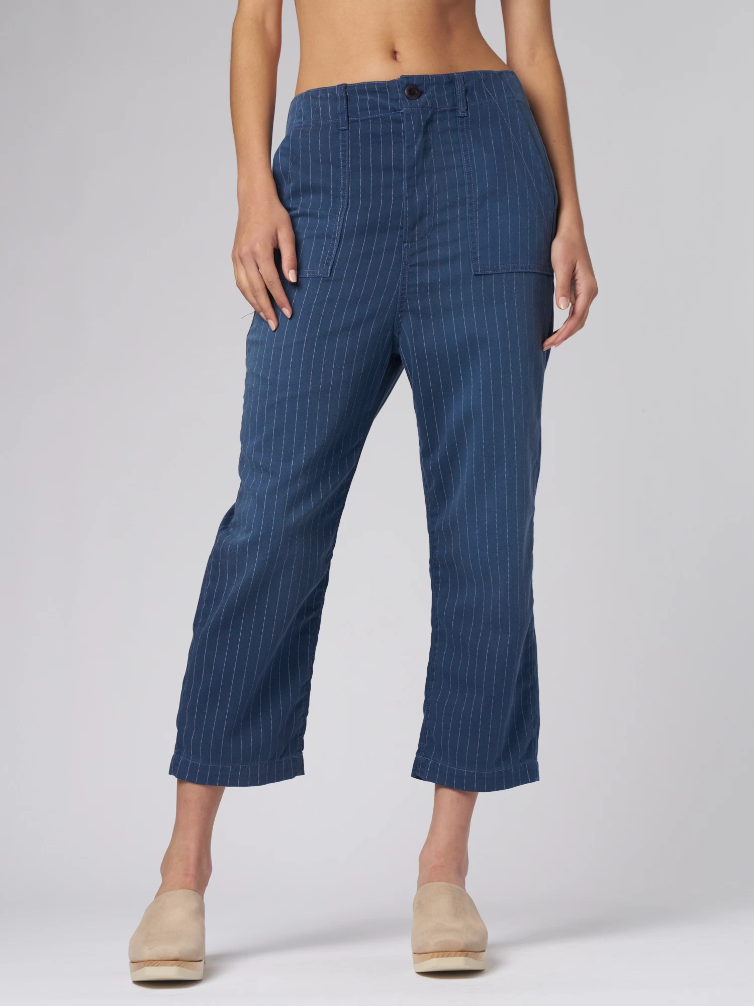 Very Soft Herringbone Pinstripe features army patch pockets, corozo buttons, and an intentionally dropped rise.