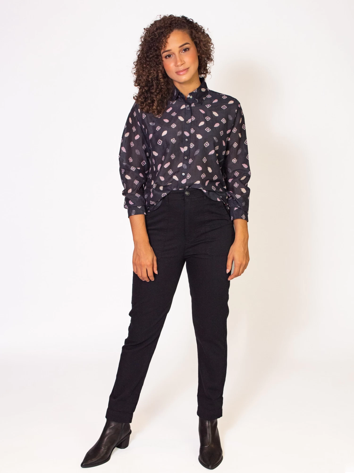 Cotton twill a more fitted trouser. Tucker is effortlessly cool with her vintage vibe,