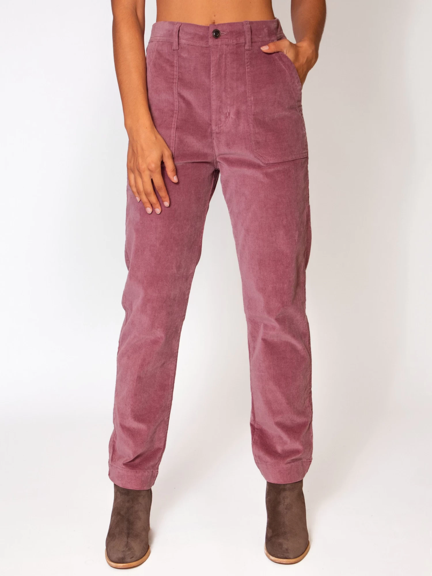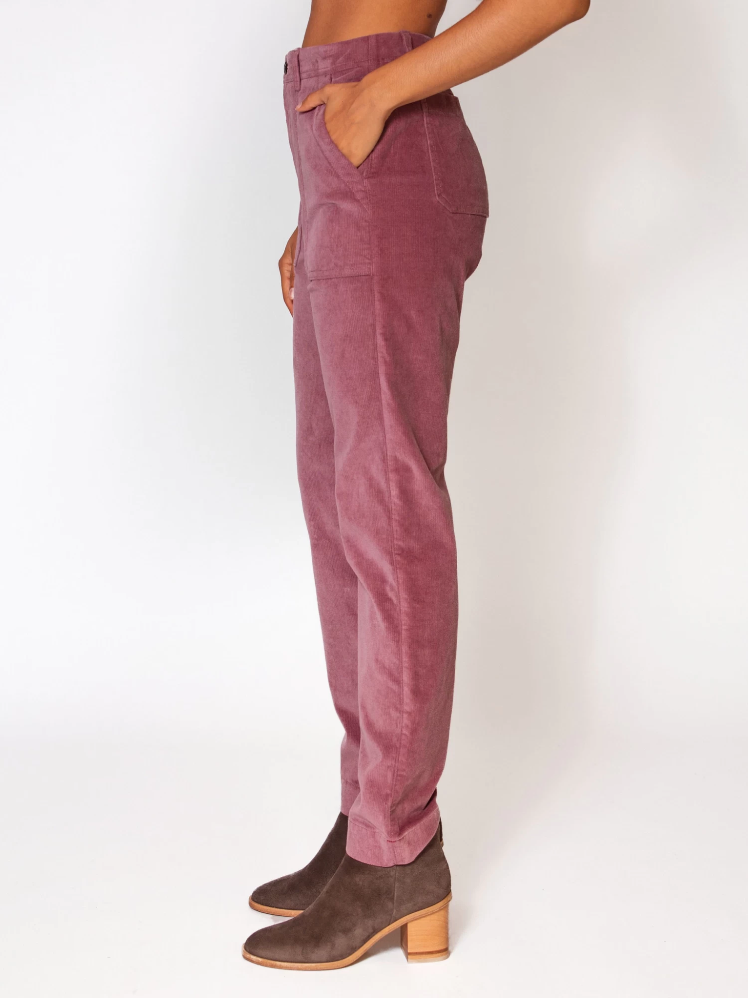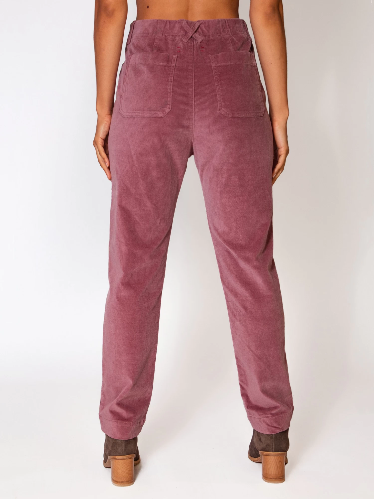 Brushed corduroy, fitted trousers with two front pockets and two back pockets.