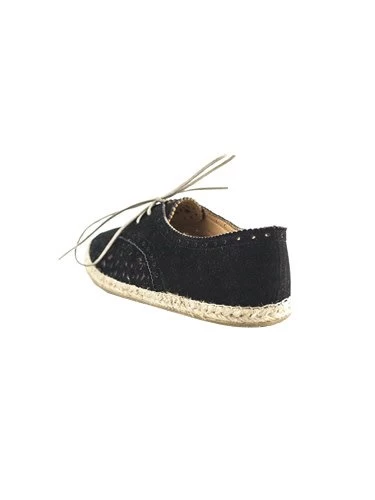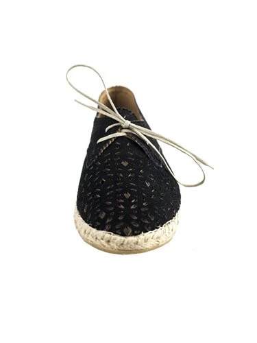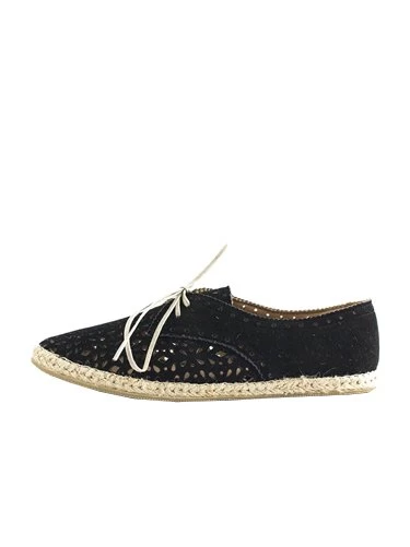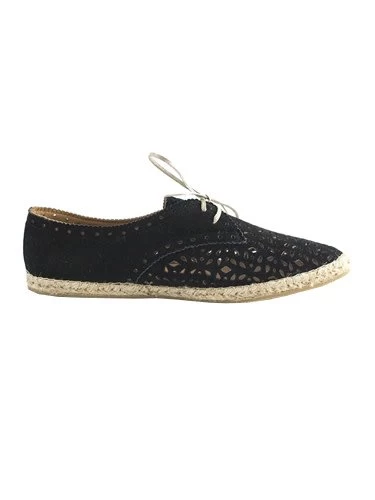 A laser cut suede lace-up espadrille oxfords with rubber soles.